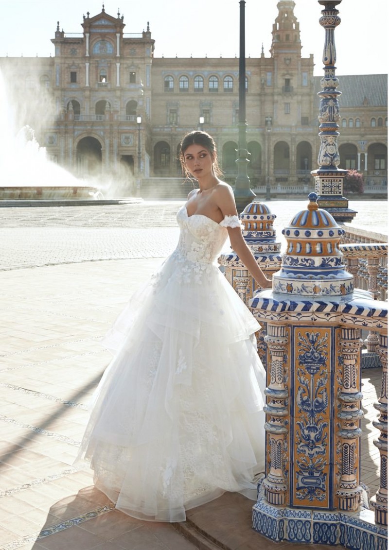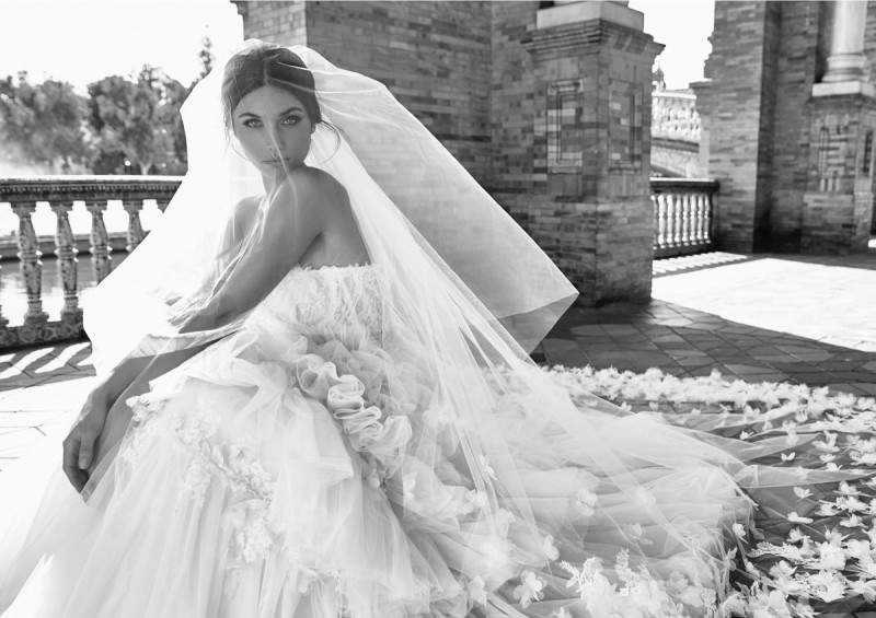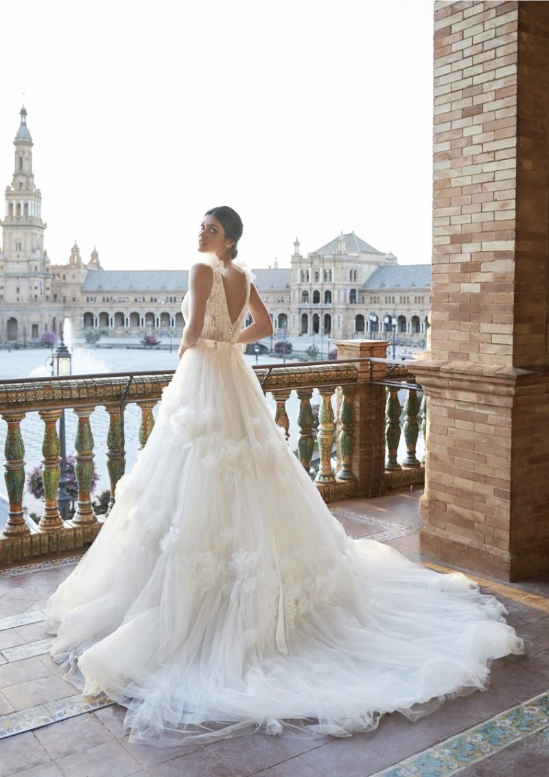 Inspiriert von der Schönheit Sevillas, verbindet die Kollektion „Marchesa for Pronovias“ das romantische Markenzeichen von Marchesa mit mediterraner Sinnlichkeit.
