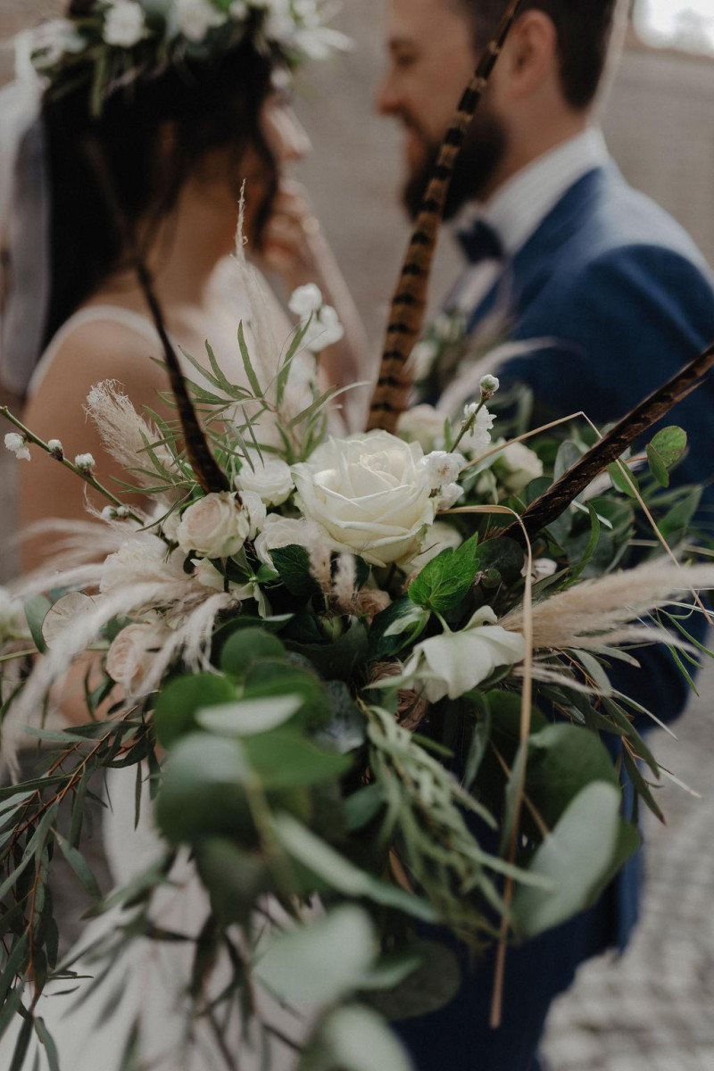 Mit Tamara & Julian erwartet euch ein frühlingshaftes Coupleshoot, voll von bohemian Vibes. Hochzeitsfotografin Marianne Bohn Fotografie hat dieses Shooting fotografiert und all die Funken, die das süße Brautpaar umgibt und natürlich all die feinen Details des Tages, für uns festgehalten. Organisiert wurde es von Floristin Marion Gastl, die auch den wunderschönen Brautstrauß, den Blumenanstecker und die tolle Flowercrown kreiert hat. Eukalyptus, Federn und Pampasgras treffen dabei auf zarte Weiß- und Cremetöne. Das wundervolle Brautkleid von Tamara ist von Emma the bride, in deren bezauberndem Concept Store auch das Getting Ready stattfand. Dort kreierte Pebbles pinselt Visagistikdas feine Hair and Makeup der Braut. Die kleine Inspiration der Save the Date Karten ist von marygoesaround. Eine kleine Hochzeitsinspiration mit großen Gefühlen und ganz viel Detailliebe! Begleitet die Braut durch ihr getting Ready und folgt Tamara & Julian durch die hübschen Gassen! Ganz viel Freude euch beim Entdecken!