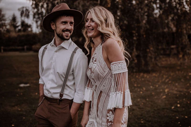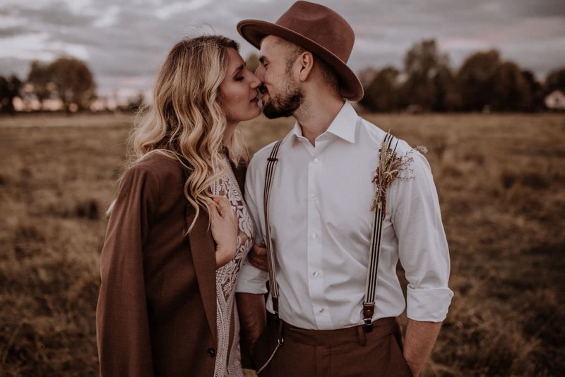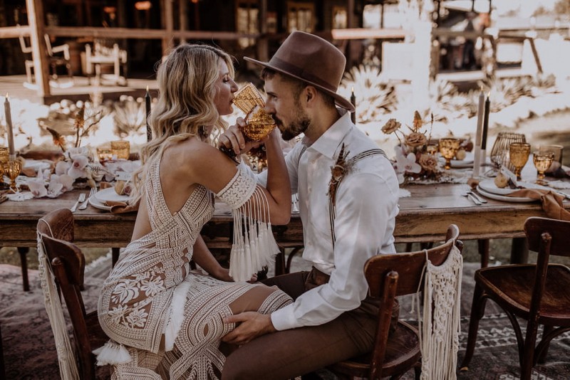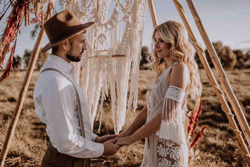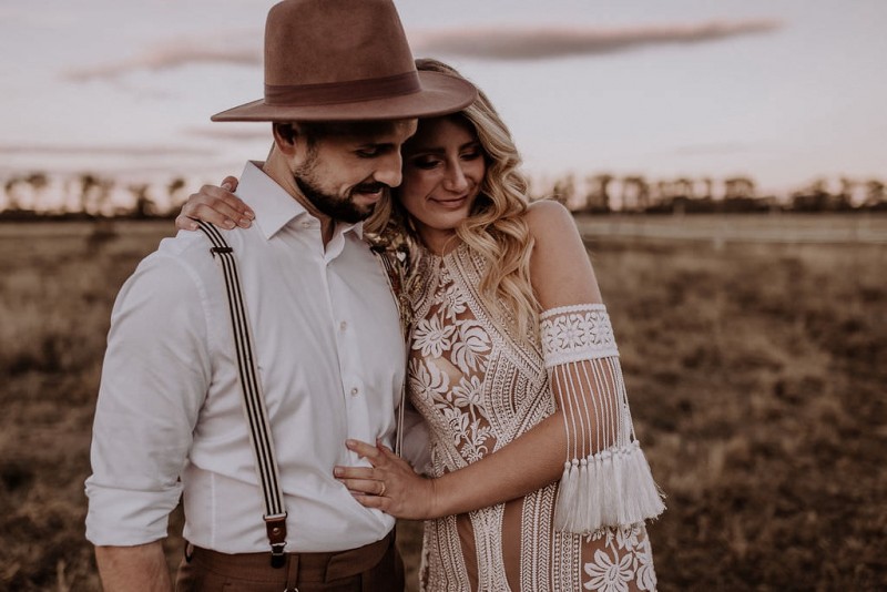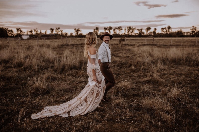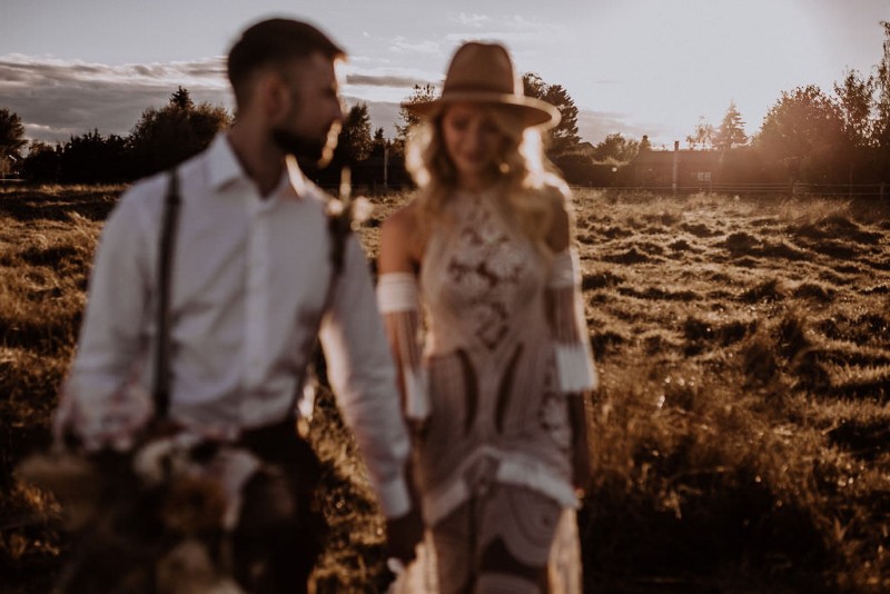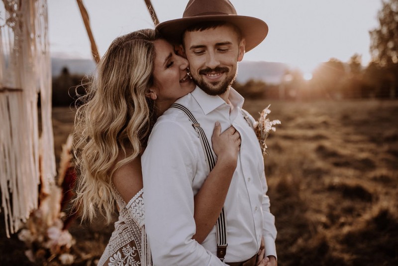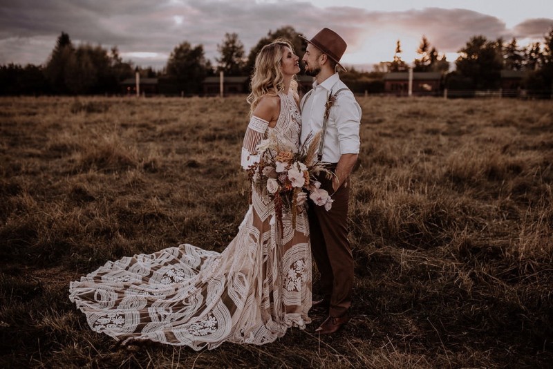 Diesen beiden, auf die Felder der großen Ranch zu folgen ist einfach zu schön um wahr zu sein. Und genau das dürft ihr jetzt tun! Genießt die atemberaubende Szenerie dieser Bohohochzeit im Western Style!