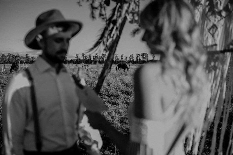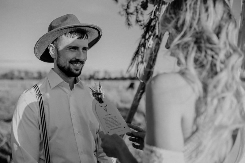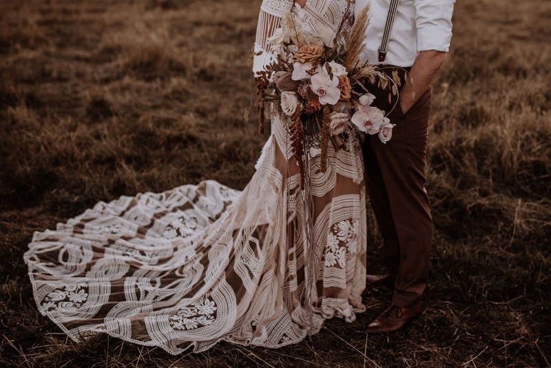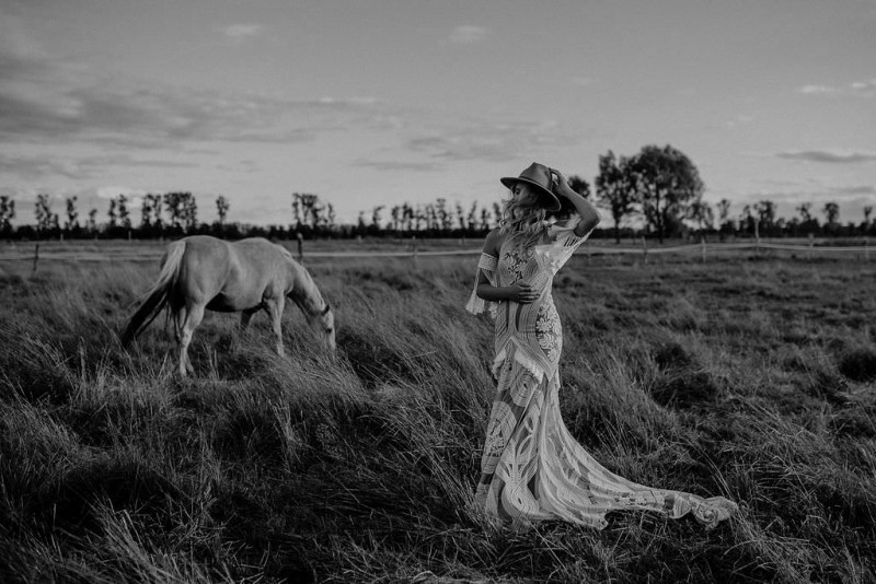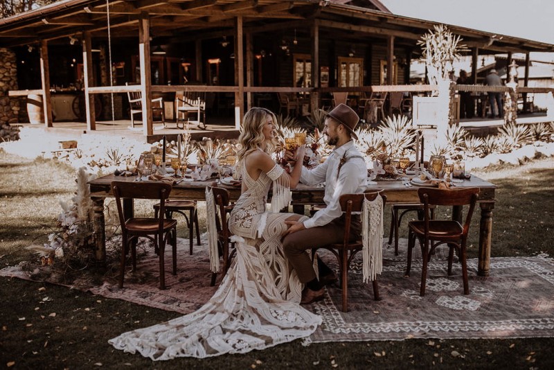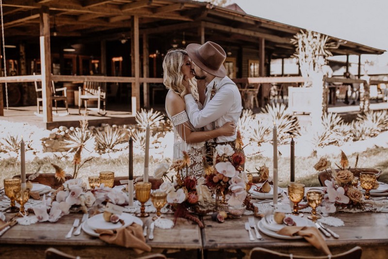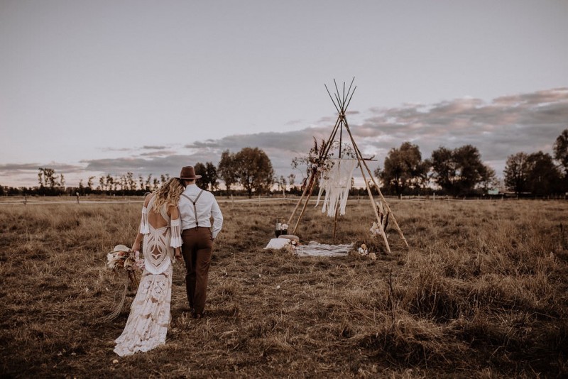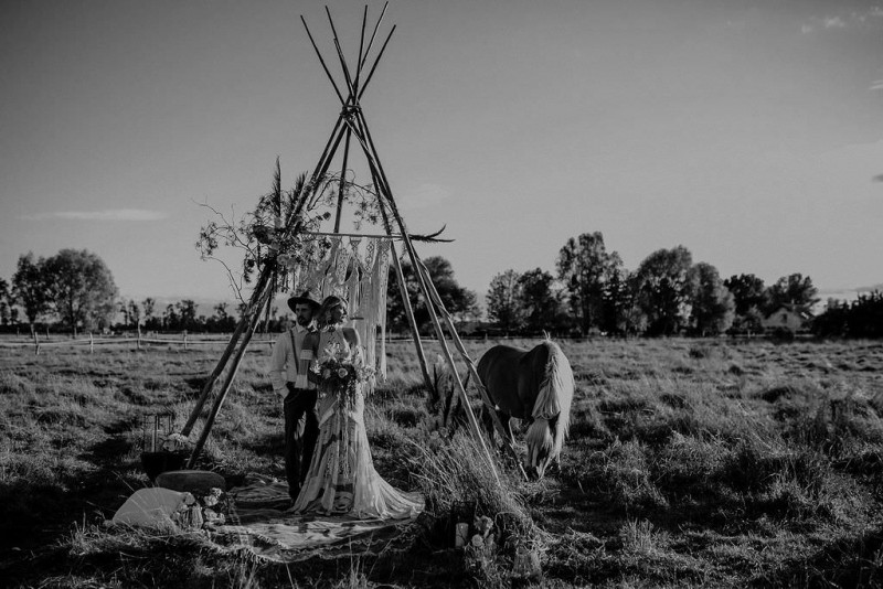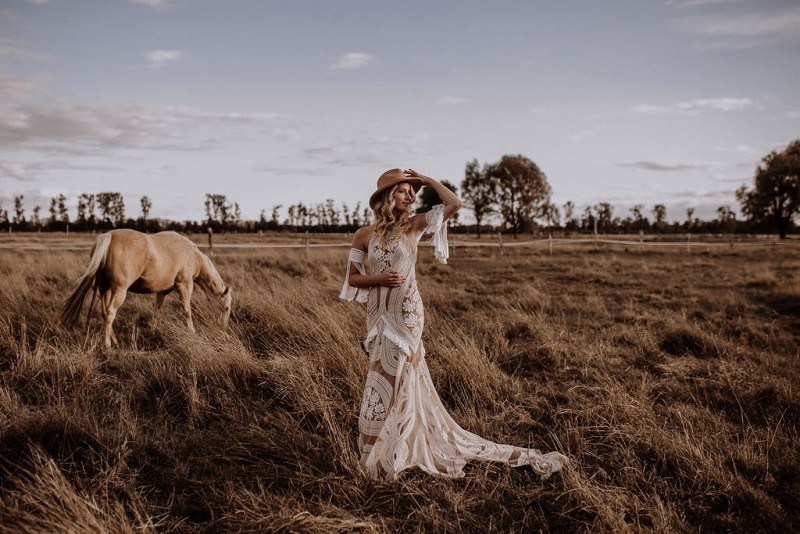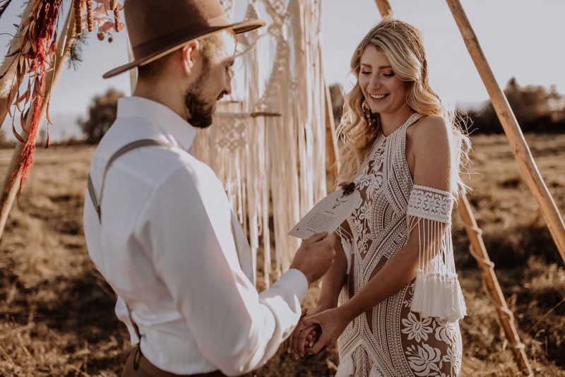 Diesen beiden, auf die Felder der großen Ranch zu folgen ist einfach zu schön um wahr zu sein. Und genau das dürft ihr jetzt tun! Genießt die atemberaubende Szenerie dieser Bohohochzeit im Western Style!