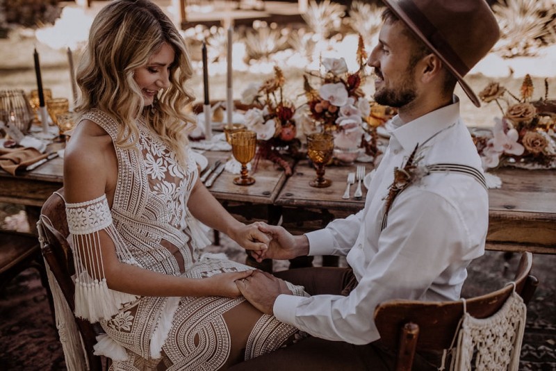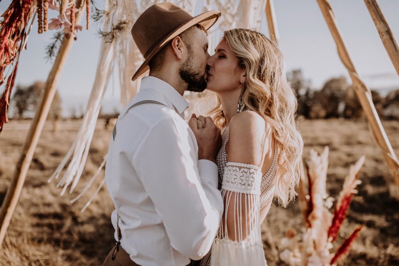 Diese wunderschöne Inspiration einer Bohohochzeit im Western Style wird euch umhauen! Warme, herbstliche Farben wie Orange und Rostrot spielen mit kontrastreichen Farben wie Rosé und Blush. Ein Hauch von Indian Summer Vibes umgibt diese außergewöhnliche Inspiration, die garantiert bei jeder Jahreszeit unter die Haut gehen dürfte. Wild sollte es werden, festlich und im berauschenden Bohostil. Doch vor allem stand Authentizität, Einklang und Ursprung im Vordergrund. Hochzeitsplaner Marco Fuß von Ihr Hochzeitsplaner, hat in dieser Hochzeitsinspiration, wunderschön fotografiert von Hochzeitsfotografin Shelly, bekannt unter wild lights photography, eine ganz natürliche und naturverbundene Bohohochzeit kreiert. Umgeben von den Feldern und den Quaterback Horses der MQ Ranch, inszenierte er einen Outdoor Hochzeitstraum, der eine wirklich grandiose Hommage an den rauen, oder sagen wir besser echten, Western Country Stil ist.
