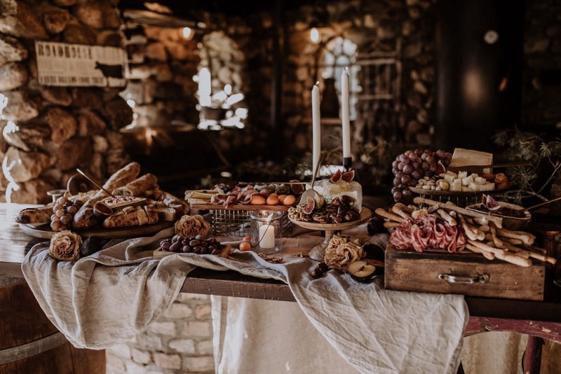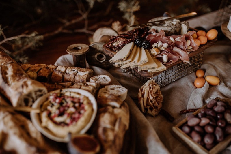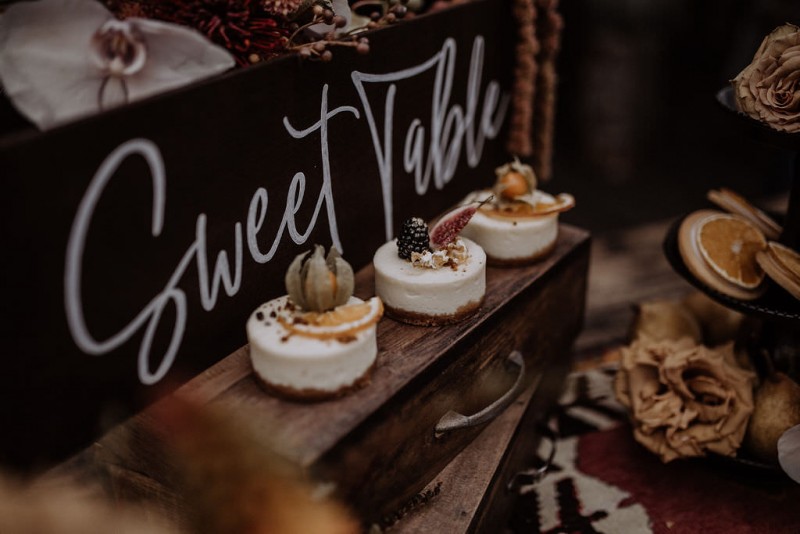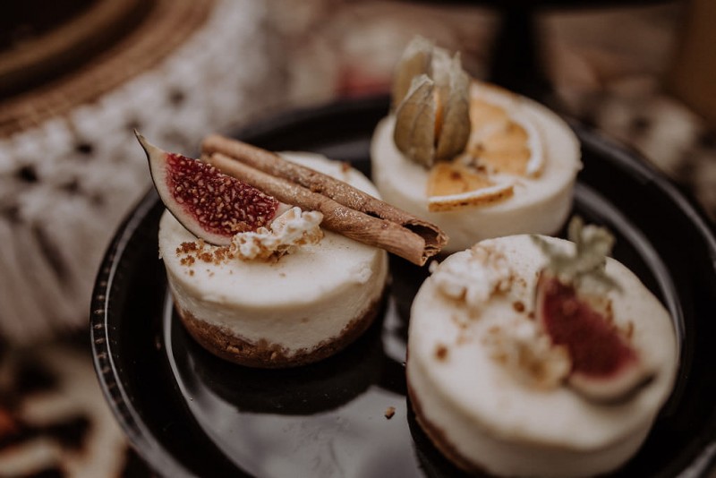 Natürlich und bodenständig, dennoch nicht weniger festlich! Im Gegenteil! Diesem Leitgedanken folgt auch der mehr als reichhaltige Grazing Table von Feasts of Eden, der mit schier unendlich vielen herzhaften Köstlichkeiten aufwartet. Was bin ich dankbar für diesen Hochzeitstrend! Allein der Anblick der fein arrangierten Käse- und Schinkenplatten, der backfrischen Brotvielfalt und der Käseleckereien lassen wohl jedem das Wasser im Mund zusammenlaufen. Und auch der Sweet Table steht diesem in nichts nach! Ihr dürft euch auf einen absoluten Hochzeitstortentraum von Lottas Torten freuen, dessen drei Etagen in weißer und brauner Creme strahlen. Dann gibt es noch köstliche Donuts, sowie kandierte Äpfel und Birnen, die auf echte Ästchen gespießt wurden. Zum Anbeißen! Dass die Holzplatte der Hochzeitstorte ebenfalls ein Makrameedekor bekam, ist noch einem weiteren Highlight zu verdanken. Der Braut!