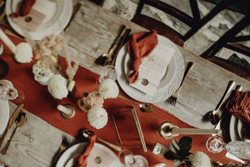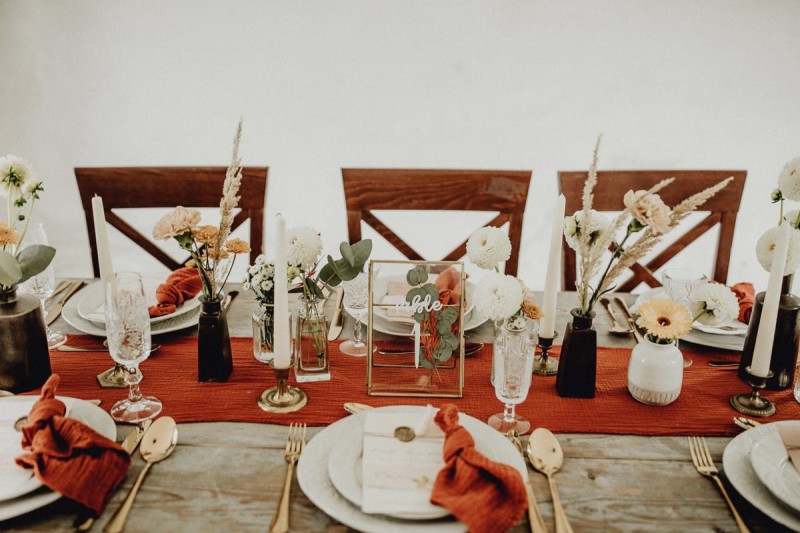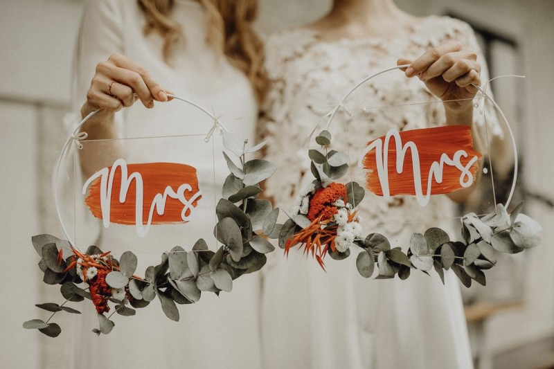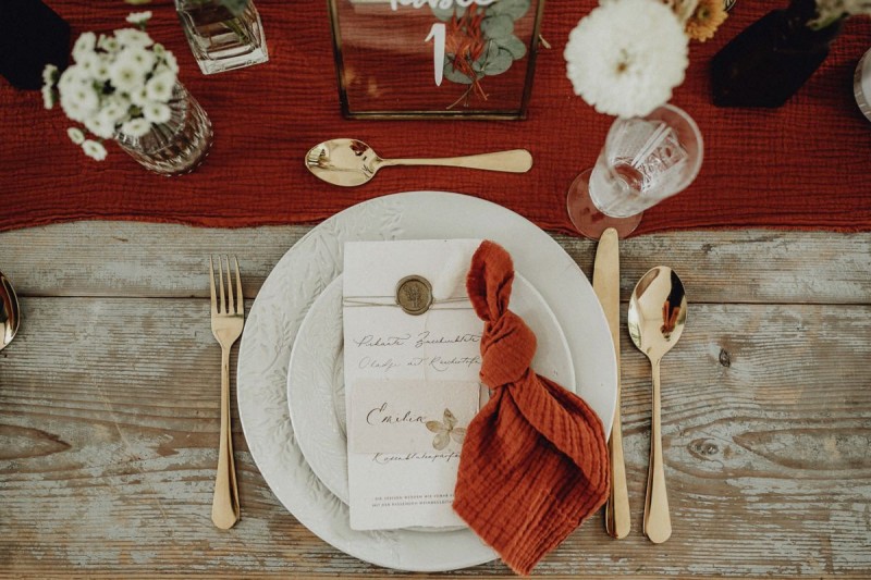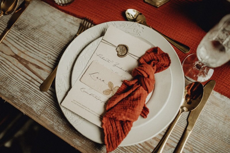 Die liebe Julia von Deko Denk nutze für die wirklich gelungene Hochzeitsdekoration und Floristik saisonale Blumen sowie Trockenblumen, die sie in Teilen in ihrem Verleih anbietet. Auch die gewählten Vasen, Kerzenständer, Möbel, Teppiche, Stoffe und sogar der große ovale Traubogen sind in ihrem Verleih zu finden. Leihen statt kaufen war hier die leitende Devise. Unterstützt wurde sie für die feine Auswahl einiger Vasen und Keramikteller von formfrei.at, in deren Werkstatt mit Liebe und Verantwortung alles handgearbeitet ist. Die schönen Mrs. Schilder sowie das Willkommensschild wurden aus 100% recyceltem Acrylglas kreiert und von Deko Denk handbemalt und beschriftet.