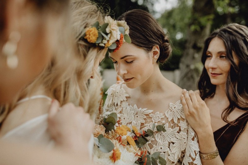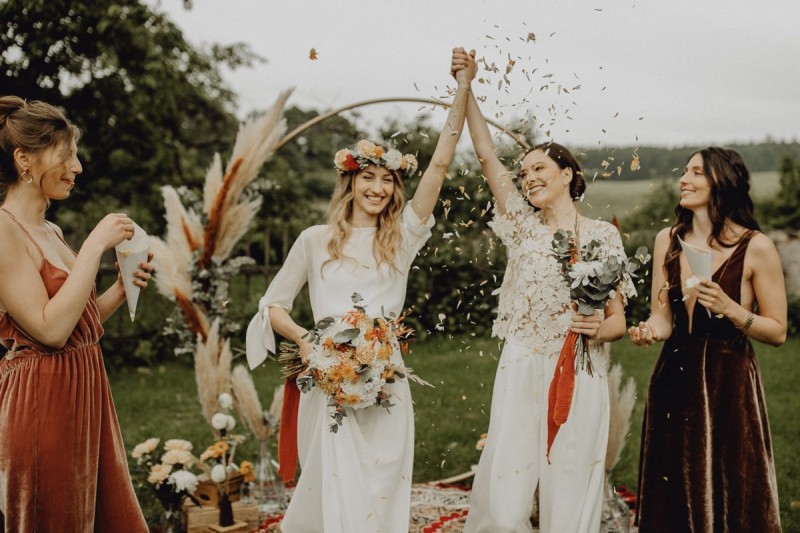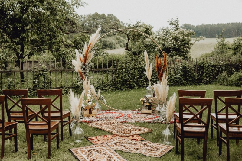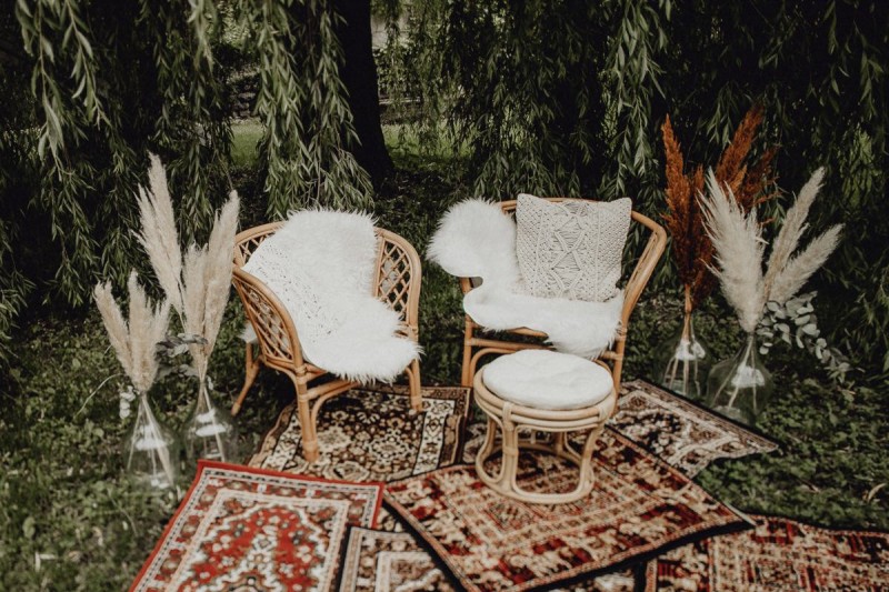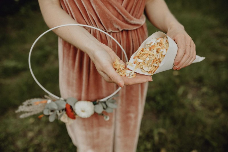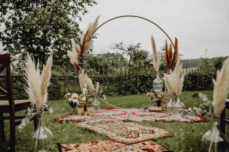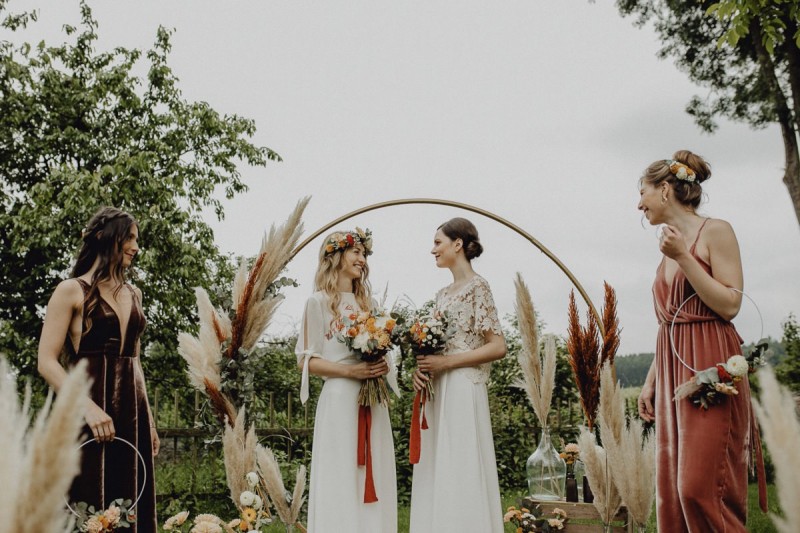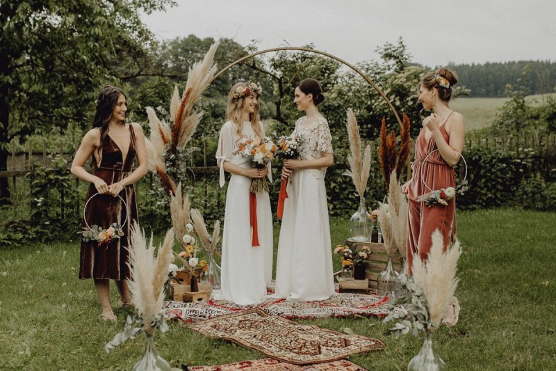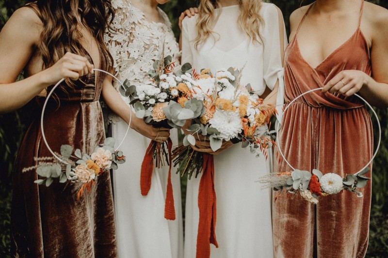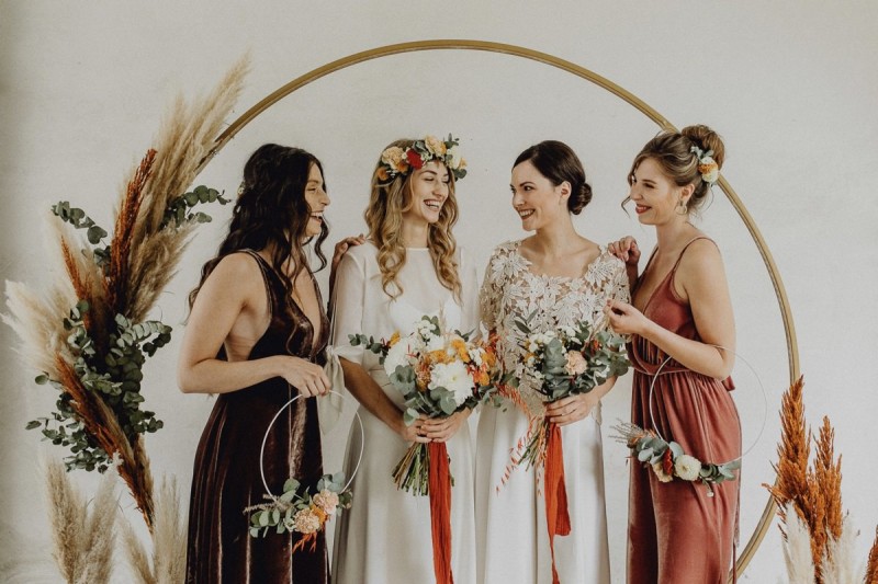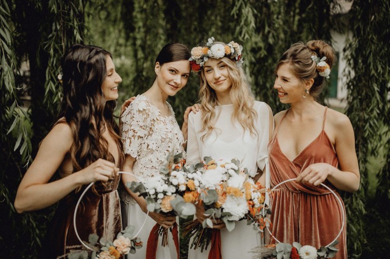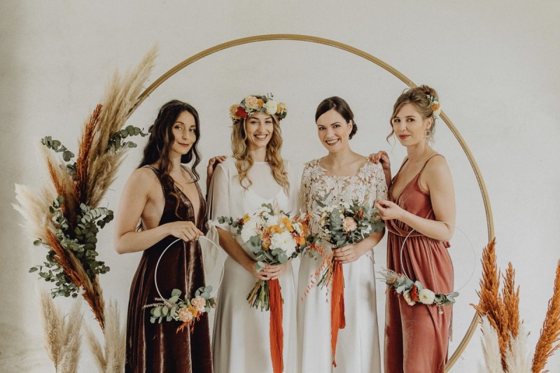 Na dann fangen wir mal an! Fotografiert und konzeptionalisiert wurde diese tolle Hochzeitsinspiration von den beiden Hochzeitsfotografinnen Polly & Sophie von Ivory Rose Photography. Hochzeitsplanerin Ines Rasinger von lovelicious life übernahm dabei die Planung dieses besondere Konzepts einer Outdoor Boho Chic Hochzeit. Von saftigem Grün umgeben, finden sich hier sowohl in der Dekoration als auch in der Floristik wundervolle Braun-, Rost- und Orangetöne. Elegantes Gold und feine Naturmaterialien runden dieses schöne Setting ab, das sowohl als Inspiration für Sommer- als auch für Herbsthochzeiten brilliert.