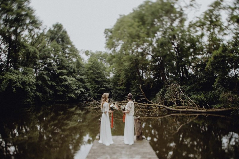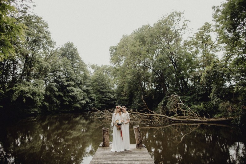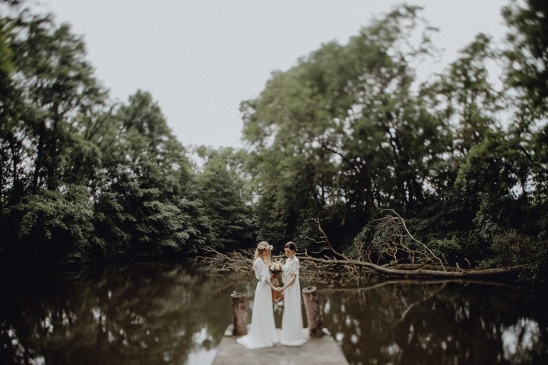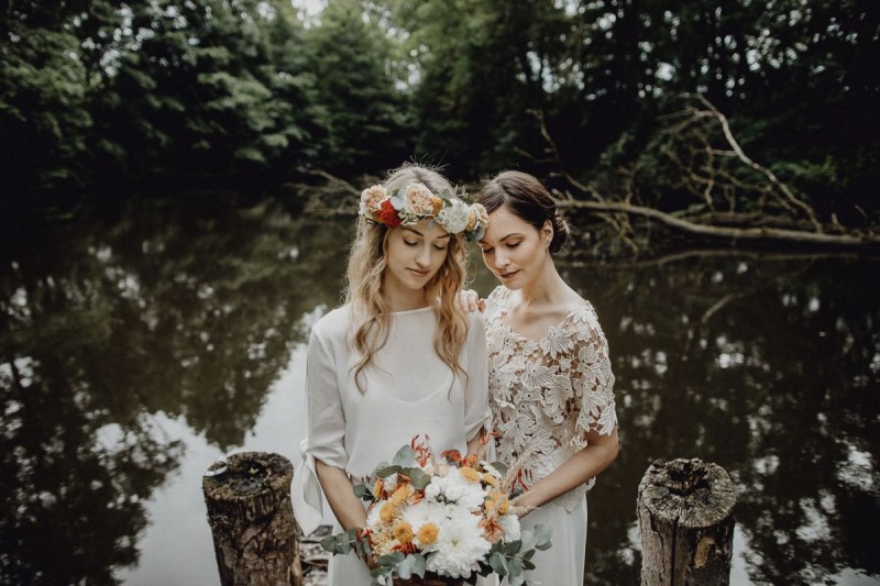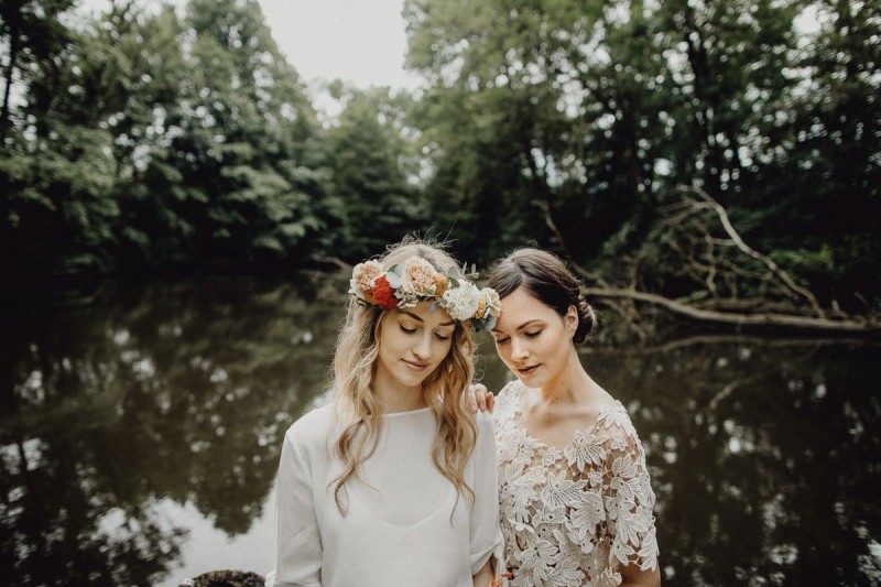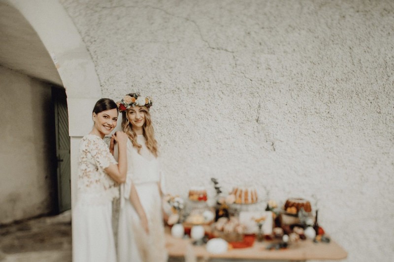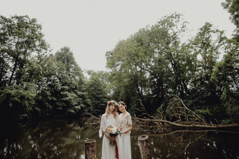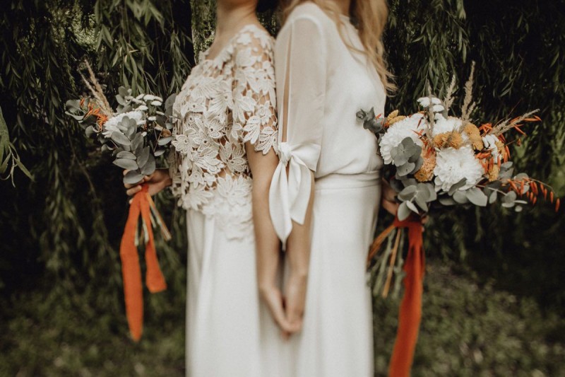 Fehlen nur noch die schönen Looks der beiden Bräute und ihrer Brautjungfern. Das Brautmodenlabel Yoora Studio ist eine junge slowakische Modemarke, die von der Modedesignerin Zuzana Kedronová gegründet wurde. Die feinen, modernen Designs werden ausschließlich unter Verwendung von natürlichen, zertifizierten Materialen wie Bioseide, Spitze aus Bio- Baumwolle und Futter der Kleider aus satinierter Bambus – Viskose – Faser hergestellt. Die Kleider sind leicht und feminin, modern und elegant, verspielt und simpel zu gleich.
