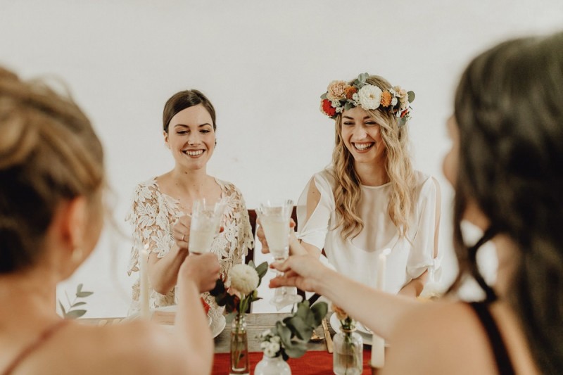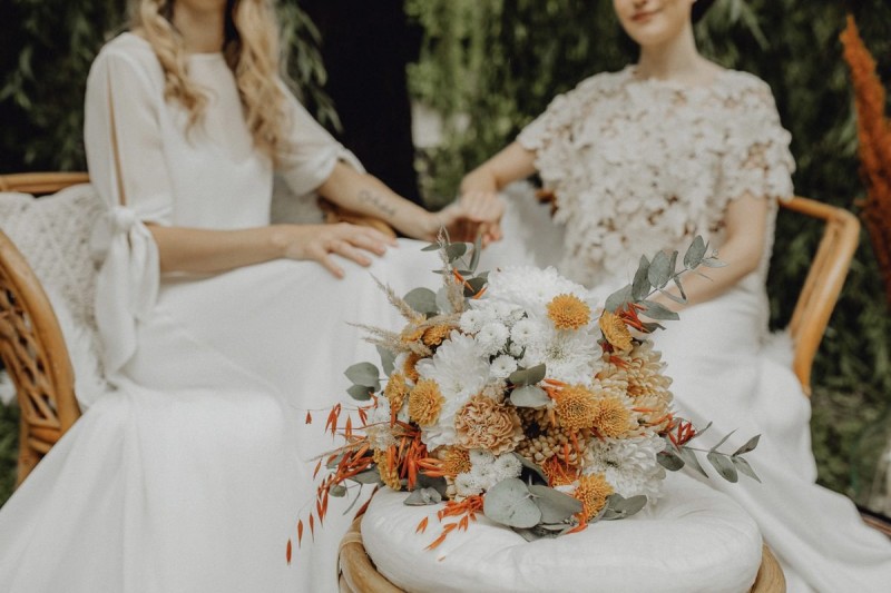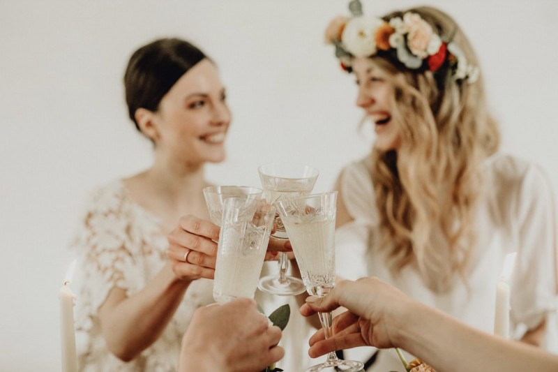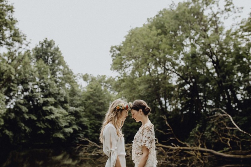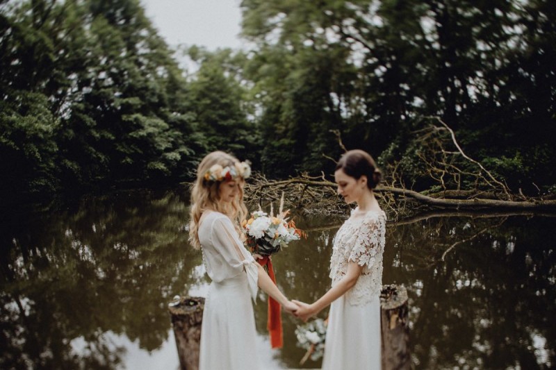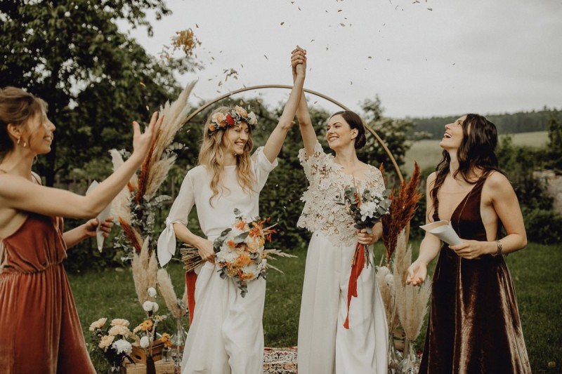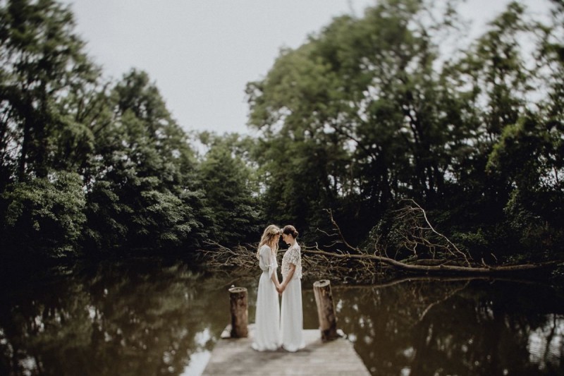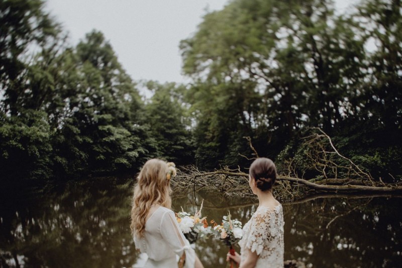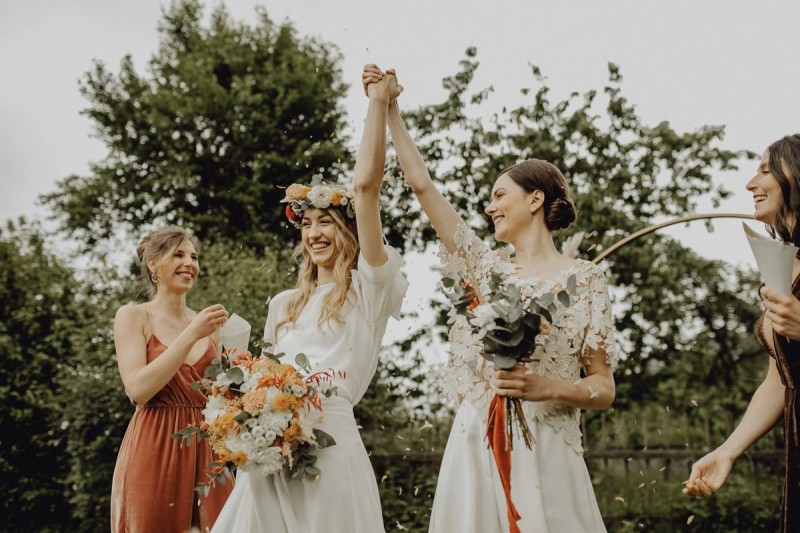 Fehlen nur noch die schönen Looks der beiden Bräute und ihrer Brautjungfern. Das Brautmodenlabel Yoora Studio ist eine junge slowakische Modemarke, die von der Modedesignerin Zuzana Kedronová gegründet wurde. Die feinen, modernen Designs werden ausschließlich unter Verwendung von natürlichen, zertifizierten Materialen wie Bioseide, Spitze aus Bio- Baumwolle und Futter der Kleider aus satinierter Bambus – Viskose – Faser hergestellt. Die Kleider sind leicht und feminin, modern und elegant, verspielt und simpel zu gleich.