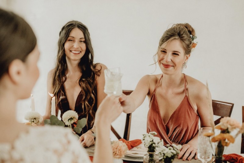 Die Brautjungfernkleider stammen aus dem kleinen feinen Atelier EVE Bridal von Isabella Kossina. Die Brautjungfern Outfits sind aus traumhaft fließendem Samt in zwei wunderbaren Farben gefertigt. Ob lange Ärmel, kurze Ärmel oder Spaghetti Träger – mit Hose als Jumpsuit oder einem Wickelrock – sie sind in verschiedensten Ausführungen erhältlich. So findet jede Brautjungfer ihren ganz eigenen Schnitt.
