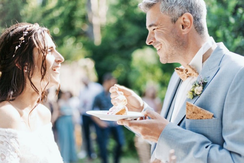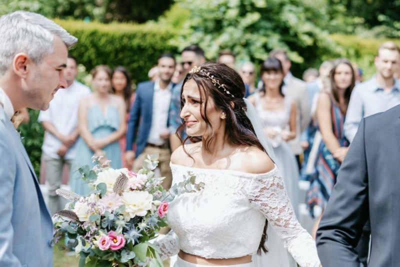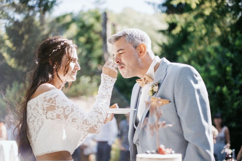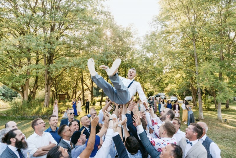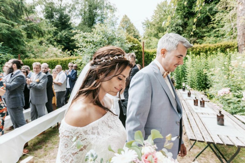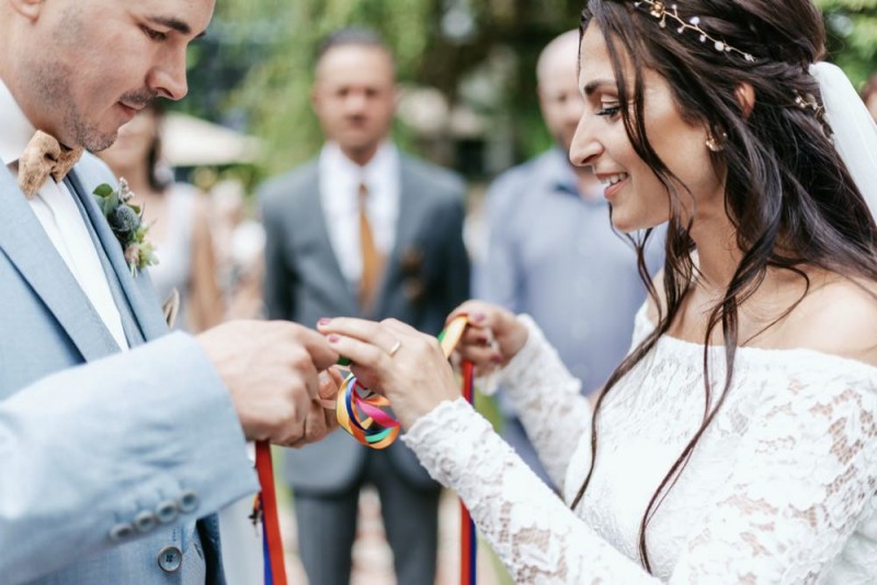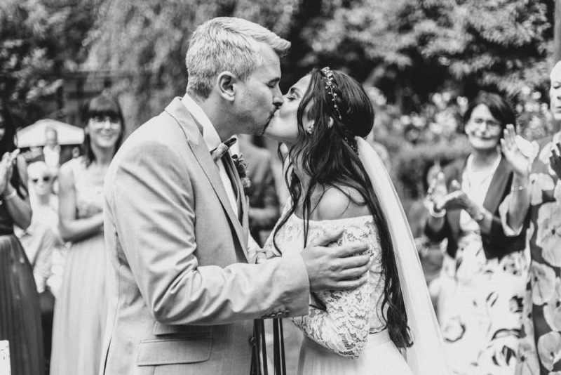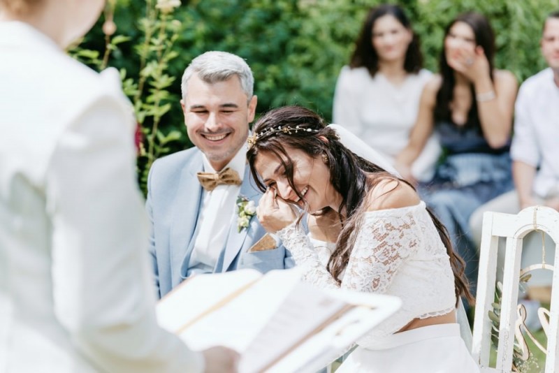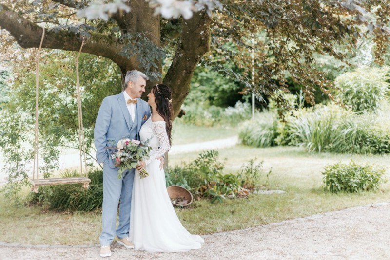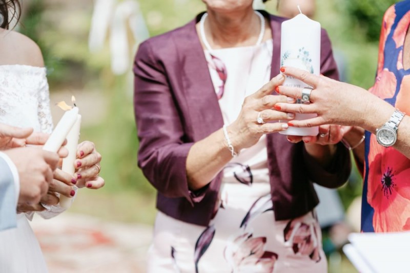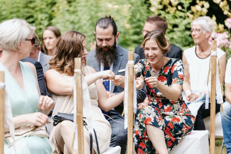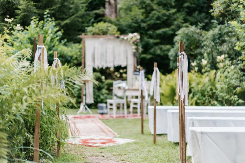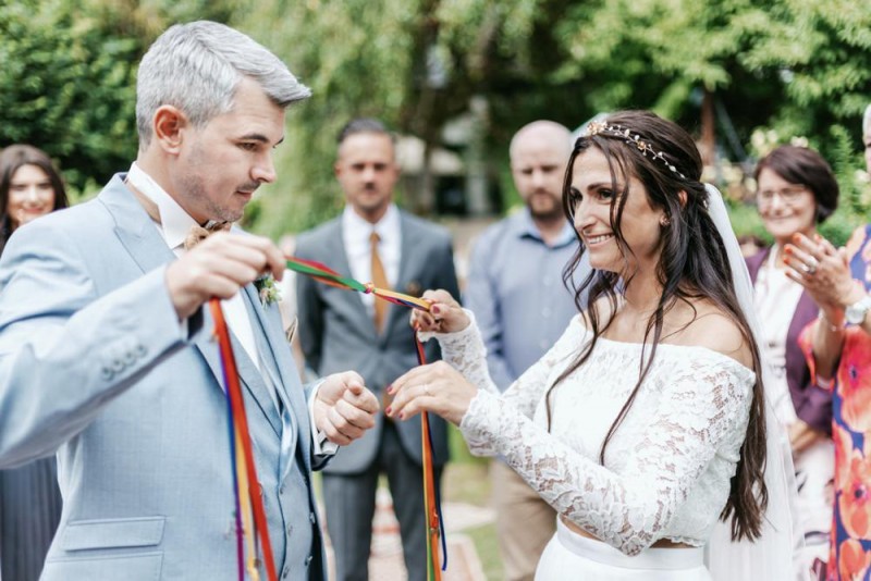 Oh ich freu mich sehr, dass ich euch heute die wunderschöne Sommerhochzeit von Janine & Oliver zeigen darf. Es ist eine zauberhafte Bohohochzeit, die am 5. Juli letztens Jahres, umgeben von Grün, mit einer romantischen freien Trauung im Der Garten in Wissen stattgefunden hat. Bei schönstem Sonnenschein feierte das süße Brautpaar eine so wunderschöne Bohohochzeit unter freiem Himmel, die der Hochzeitsfotograf Frank Herzmann für die beiden festgehalten hat. Janine war eine so bezaubernde Braut in ihrem Zweiteiler von Brautkleid mit einem langärmeligen Spitzenoberteil mit Carmen-Ausschnitt, dem fließenden Rock und ihrem langen Schleier. Dieser wurde kombiniert zu einem Headpiece von Refined Bohemia, das auf die leicht nach hinten geflochtenen Haare gesetzt wurde. Ihr langes dunkles Haar trug sie ansonsten offen. Dieses schöne Brautstyling hat Lydia Gerzen kreiert. Zu ihrem Brautkleid von Brautmoden Hartmann trug sie feine Brautschuhe von Magosisters. Aber auch Oliver strahlte in einem sommerlichen Anzug in Hellblau mit beigen Details im Korklook vom Herrenausstatter Iserlohe. Und so schritten sie zu ihrer wunderschönen freien Trauung mit Traurednerin Anja von Goldröschen. Vor dem tollen Traubogen aus Holz, der mit einem großen Makramee geschmückt wurde, nahmen sie auf geschmückten weißen Stühlen Platz. Der Traubogen, sowie das Mobiliar, war von NIMMPLATZ. Die wilde Floristik am Traubogen war ebenso, wie der grandiose Brautstrauß und die gesamte florale Dekoration, von der Hochzeitslocation selbst. Neben dieser schönen Traulocation gab es auch so viele Highlights während der Trauung der beiden. Zu Beginn schritten die Mütter des Paares nach Vorne und zündeten die Traukerze an. Ein liebevolles Ritual, das leider(!) oft als altmodisch verschien ist. Von Hochzeitssängerin Mona Babberger begleitet, gab es während der Trauzeremonie ein besonderes Ring Warming. Die Gäste selbst knoteten die Schnüre dafür zusammen. Die engsten Herzmenschen des Paares legten ihnen jeweils ein Band über die Hände für das rituelle Hand Fasting. Und zum Ende hin gab es als Überraschung einen Singmob, bei dem alle Gäste für das Brautpaar die Stimme erhoben. Kein Wunder, dass bei dieser Trauung so viele Freudentränen flossen. Nach dieser zauberhaften Trauung erwartete das Brautpaar und ihre Gäste draußen sowie drinnen eine so schön dekorierte Feierlocation. Dazu gab es eine mega Candy Bar und natürlich den Anschnitt der Hochzeitstorte. Diese kreierte Netti’s Tortenschätze und sie passte einfach perfekt zu diesem Traum einer Sommerhochzeit. Ein Semi Naked Drip Cake, dessen drei Etagen mit frischen Beeren dekoriert wurde. Bei diesen schönen Bildern lässt es sich so wunderbar vom Sommer träumen. Genießt die tollen Bohovibes und all die schönen Eindrücke dieses besonderen Tages im Leben von Janine & Oliver!