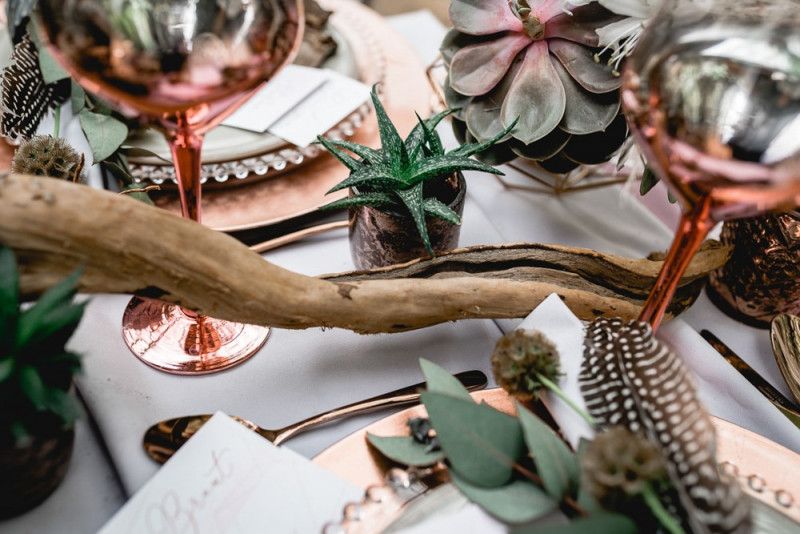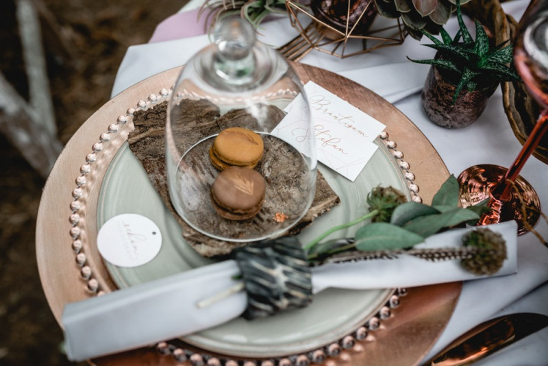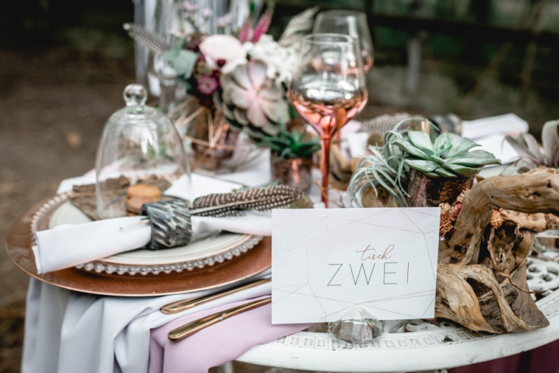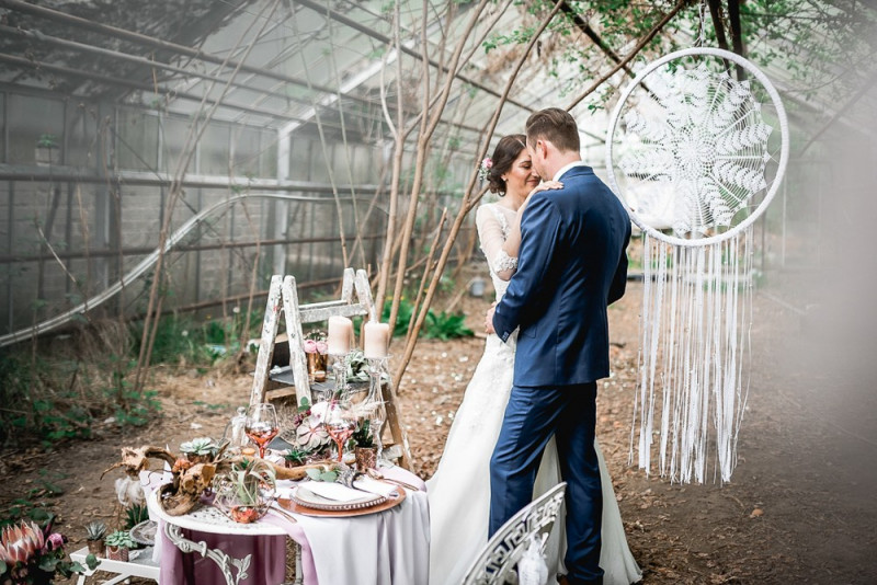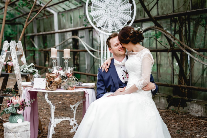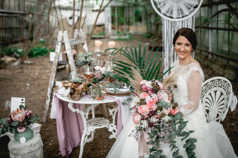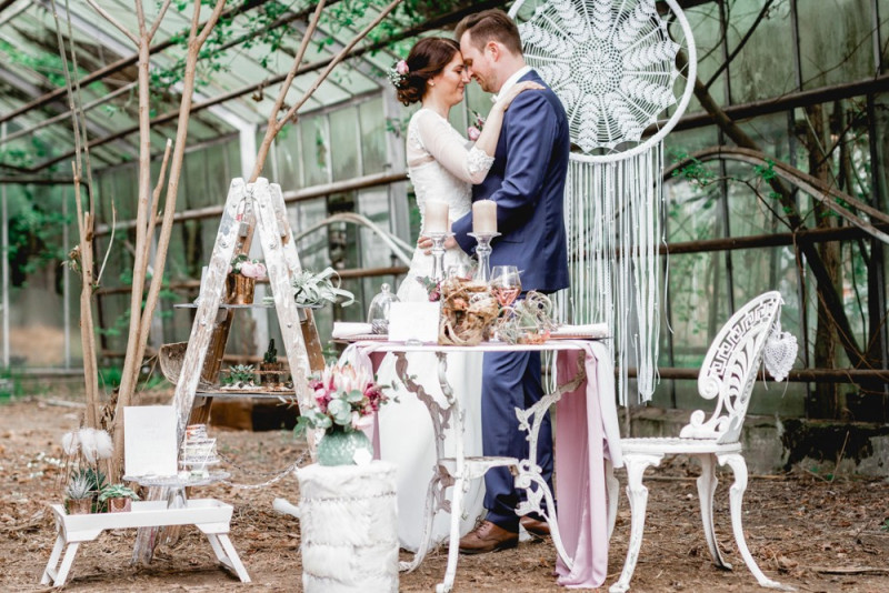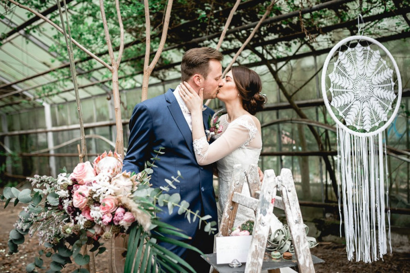 Dieses hübsche Styled Shoot in einem verträumten Gewächshausmacht nicht nur gute Laune! Es ist auch eine wahre Dekoinspiration! Braun, Grün, Mint und Kupfer treffen auf Rosa und Pink. Stimmig, zart und ein Hingucker! Viele kleine Details wie Sukkulenten, Protea, Holzstücke und Federn, lassen den naturnahen Look aufregend wirken, während das Kupfer die edlen Akzente setzt. Fotografiert wurde diese wundervolle Hochzeitsinspiration von Ronja Gerstendorf Fotografie & Cathy Kohlenberg Fotografie. Sie haben den Zauber des Paares inmitten der detailverliebten Dekoration, umgeben von Blumen & Traumfängern, eingefangen. Die Dekoration und die Floristik entwarf 4YourWedding Hochzeitsplanerin, während Marry Paper Hochzeitspapeterie die passende Papeterie zauberte. Die hübschen Macarons in den passenden Farben, ebenfalls mit zarten Kupferakzenten dekoriert, kommt von Mein Backwerk. Und zu guter Letzt, sorgte Kathrin Kania mit dem passenden Brautstyling für eine strahlende Braut. Ganz viel Freude mit dieser tollen Inspiration! Genießt es!