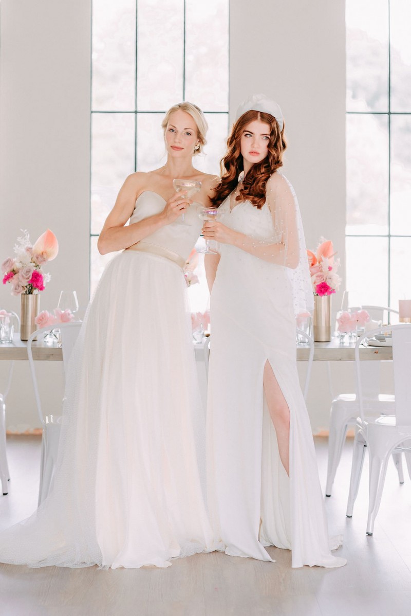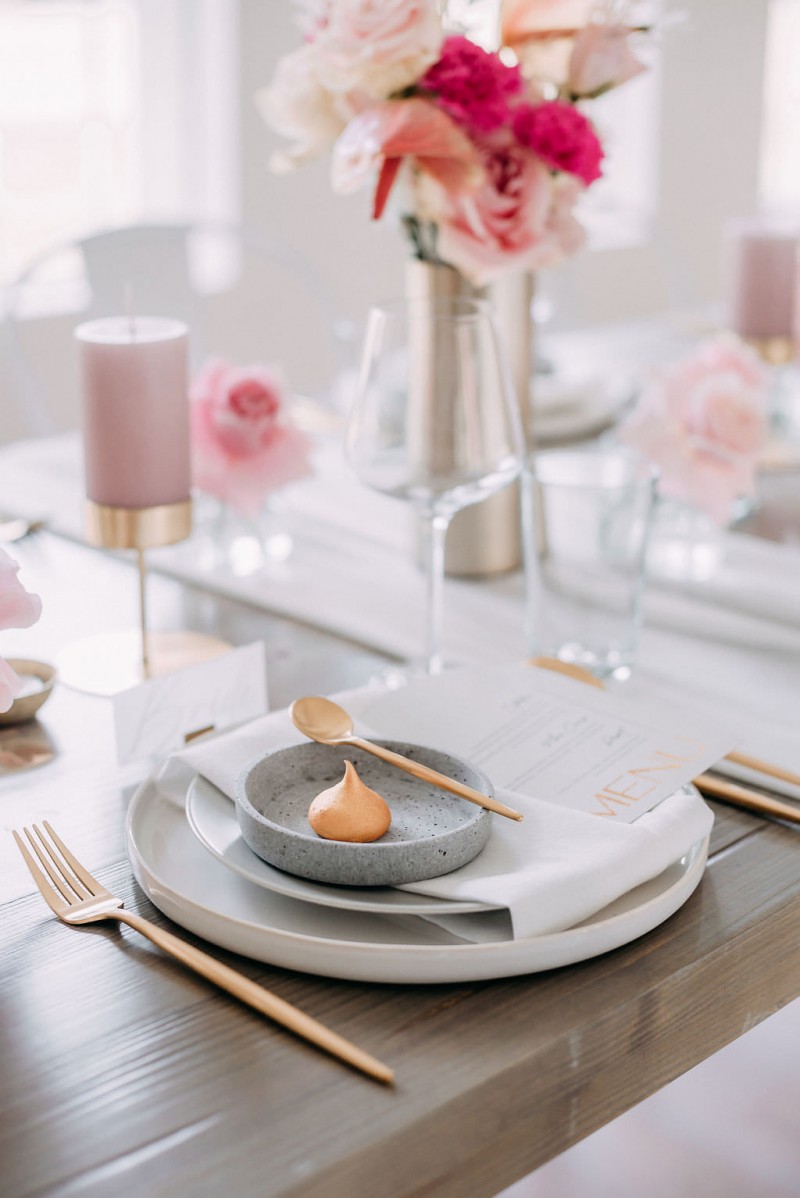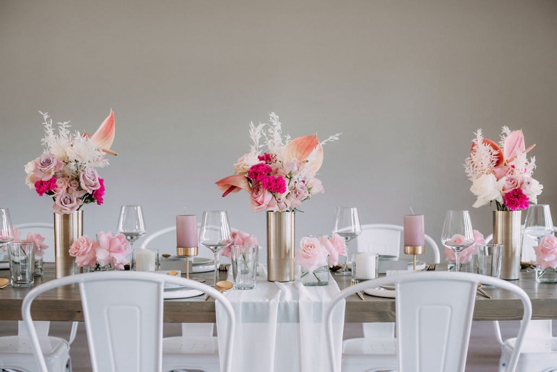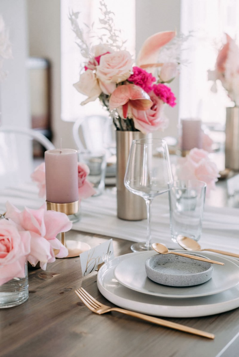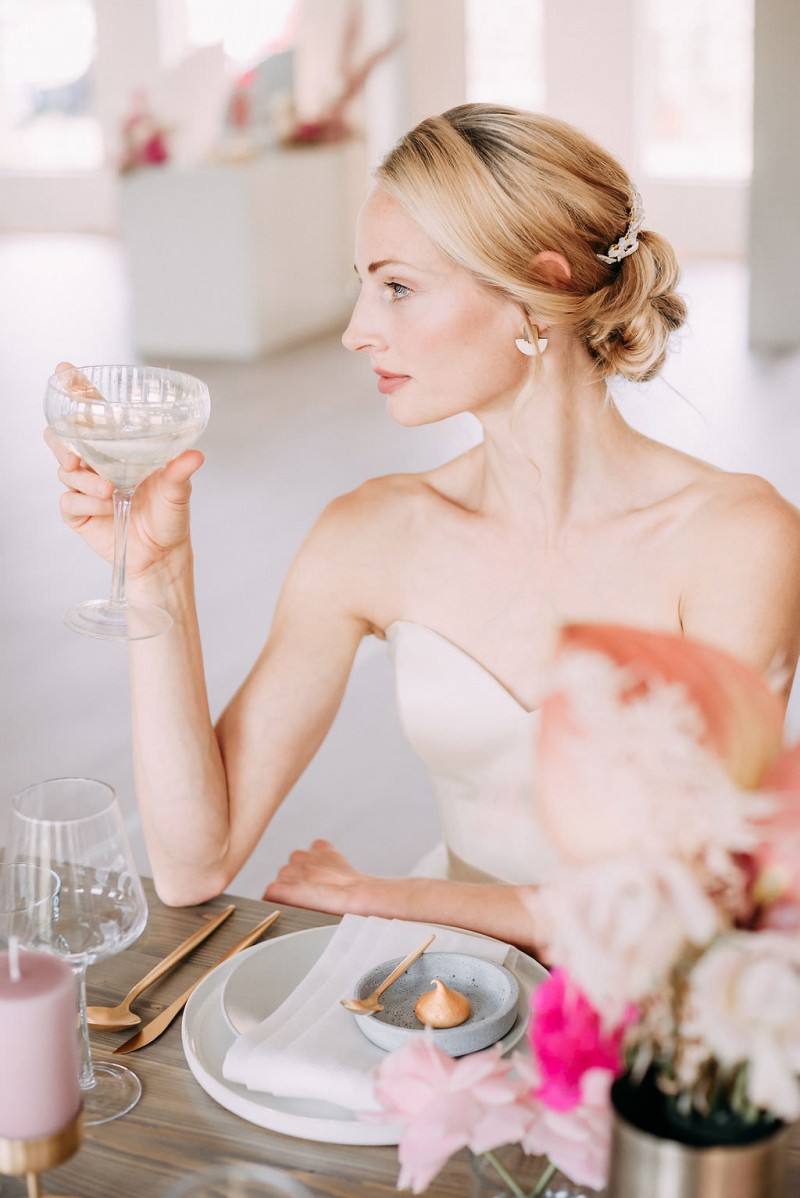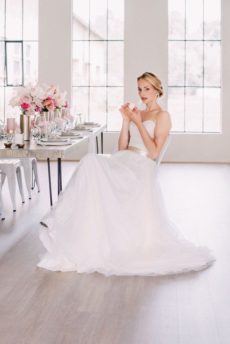 Candy Colors – wer liebt sie nicht! Gerade im Sommer wollen wir Farbe! In dieser tollen Inspiration für moderne Hochzeiten finden sich sowohl feine Pastellnuancen, als auch kräftige Farbakzente. Neben Dekoration und Floristik in den schönsten Candy Farben in Pink, Blush und Rosa, gibt es natürlich auch echte Sweets zu bestaunen. Doch fangen wir von Vorn an. Fotografiert wurde diese elegante als auch moderne Hochzeitsinspiration von Hochzeitsfotografin Julie Schönewolf. Sie hat die wunderschöne Szenerie im Kloster Altzella fotografisch für uns festgehalten, die von Hochzeitsplanerin Raissa von marrylight wedding & event für uns organisiert wurde. Das Konzept, die Dekoration und die Floristik kreierte Bash Design Concepts. Bekannt für zeitlose sowie stilvolle Designs, setzen sie hier auf kühle Details aus Beton, Akzente in warmem Gold und natürlich die spritzigen Candy Colors. Die harmonische Kombination aus Grau und Rosa wird durch leichtes Weiß ergänzt und durch knalliges Pink zum absoluten Hingucker! Elegant durch edle Rosen und aufgelockert durch gebleichten Ruscus, pinke Edelnelken, Amaranthus und Anthurien, pulsiert dieses elegante und klare Setting. Perfekt auf das klare Konzept abgestimmt, wurde auch die moderne Hochzeitspapeterie von Liebe-ist-Heiraten. Besonders die transparenten Details und die Kombination aus schwarzer und weißer Schrift komplementieren die Grau- und Rosatöne durch ihr minimalistisches Design. Der Sweet Table mit auffälliger Hochzeitstorte, feinen Törtchen, Macarons und Baiser, von MY Cakes & Sweets, steht dem Candy Crush Konzept in nichts nach. Ein weiteres Highlight dieser Hochzeitsinspiration sind die Bräute! Ihr habt richtig gehört, hier erwarten euch gleich zwei tolle Brautlooks, die elegant und modern begeistern. Junika Wedding Concept Store kleidete die hübschen Bräute Lisa & Theresa für diese Inspiration in zwei zauberhafte Brautkleider und kreierte zudem das elegante Hair & Makeup. Euch erwarten herrlich fließende Stoffe, tiefe Rückenausschnitte, feine Perlendetails sowie besondere Accessoires. Der auffällige Schmuck und die coolen Gürtel der beiden sind von Mia&Martha & Stefanscaro, deren Produkte ihr ebenfalls bei Junika Wedding Concept Store finden könnt. Die variablen Brautschuhe, die mit austauschbare Absätzen geliefert werden, sind von Mime et moi. Und jetzt darf ich euch ganz viel Freude mit dieser tollen Hochzeitsinspiration wünschen! Genießt die grandiosen Candy Vibes!