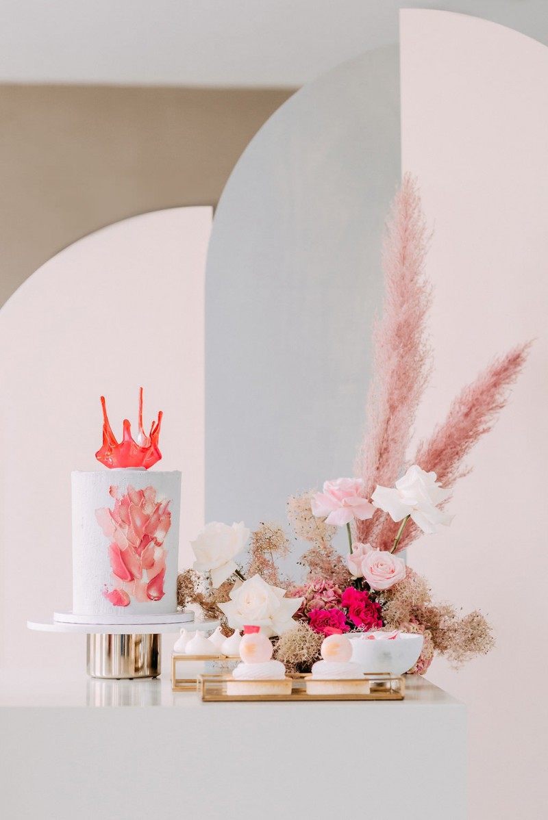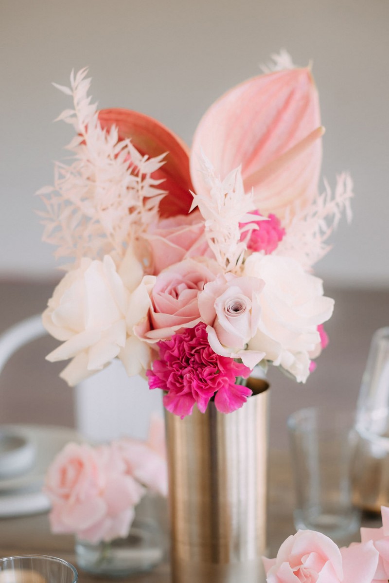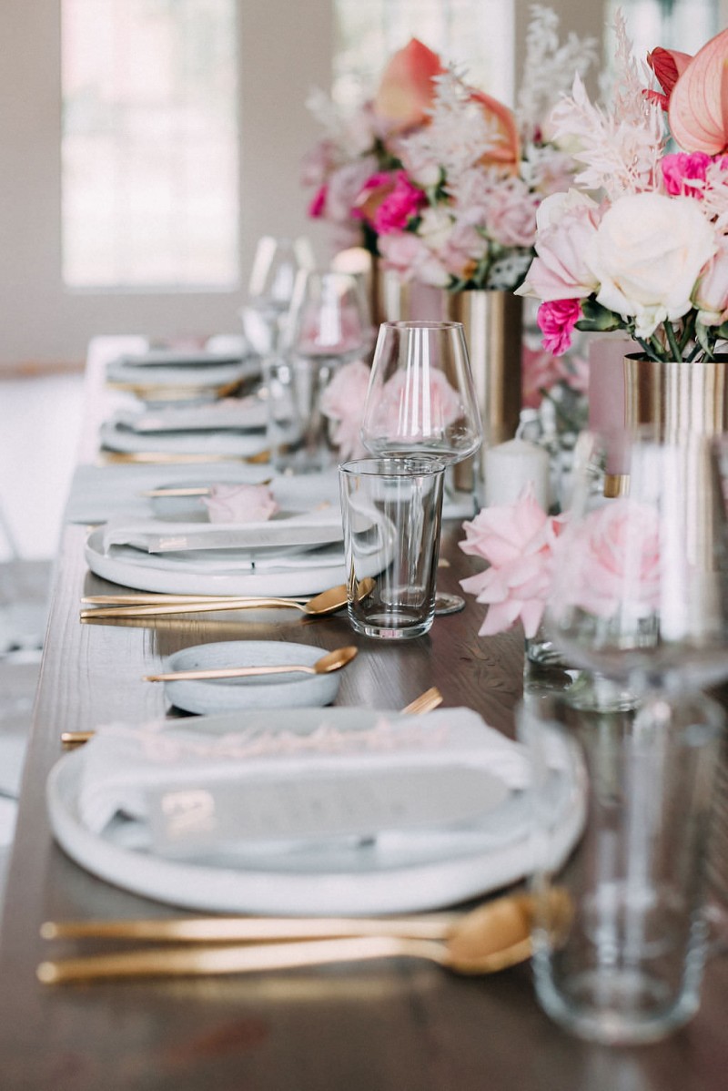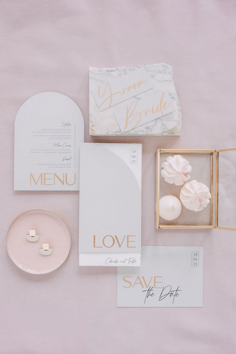 Candy Colors – wer liebt sie nicht! Gerade im Sommer wollen wir Farbe! In dieser tollen Inspiration für moderne Hochzeiten finden sich sowohl feine Pastellnuancen, als auch kräftige Farbakzente. Neben Dekoration und Floristik in den schönsten Candy Farben in Pink, Blush und Rosa, gibt es natürlich auch echte Sweets zu bestaunen. Doch fangen wir von Vorn an. Fotografiert wurde diese elegante als auch moderne Hochzeitsinspiration von Hochzeitsfotografin Julie Schönewolf. Sie hat die wunderschöne Szenerie im Kloster Altzella fotografisch für uns festgehalten, die von Hochzeitsplanerin Raissa von marrylight wedding & event für uns organisiert wurde. Das Konzept, die Dekoration und die Floristik kreierte Bash Design Concepts. Bekannt für zeitlose sowie stilvolle Designs, setzen sie hier auf kühle Details aus Beton, Akzente in warmem Gold und natürlich die spritzigen Candy Colors. Die harmonische Kombination aus Grau und Rosa wird durch leichtes Weiß ergänzt und durch knalliges Pink zum absoluten Hingucker! Elegant durch edle Rosen und aufgelockert durch gebleichten Ruscus, pinke Edelnelken, Amaranthus und Anthurien, pulsiert dieses elegante und klare Setting. Perfekt auf das klare Konzept abgestimmt, wurde auch die moderne Hochzeitspapeterie von Liebe-ist-Heiraten. Besonders die transparenten Details und die Kombination aus schwarzer und weißer Schrift komplementieren die Grau- und Rosatöne durch ihr minimalistisches Design. Der Sweet Table mit auffälliger Hochzeitstorte, feinen Törtchen, Macarons und Baiser, von MY Cakes & Sweets, steht dem Candy Crush Konzept in nichts nach. Ein weiteres Highlight dieser Hochzeitsinspiration sind die Bräute! Ihr habt richtig gehört, hier erwarten euch gleich zwei tolle Brautlooks, die elegant und modern begeistern. Junika Wedding Concept Store kleidete die hübschen Bräute Lisa & Theresa für diese Inspiration in zwei zauberhafte Brautkleider und kreierte zudem das elegante Hair & Makeup. Euch erwarten herrlich fließende Stoffe, tiefe Rückenausschnitte, feine Perlendetails sowie besondere Accessoires. Der auffällige Schmuck und die coolen Gürtel der beiden sind von Mia&Martha & Stefanscaro, deren Produkte ihr ebenfalls bei Junika Wedding Concept Store finden könnt. Die variablen Brautschuhe, die mit austauschbare Absätzen geliefert werden, sind von Mime et moi. Und jetzt darf ich euch ganz viel Freude mit dieser tollen Hochzeitsinspiration wünschen! Genießt die grandiosen Candy Vibes!