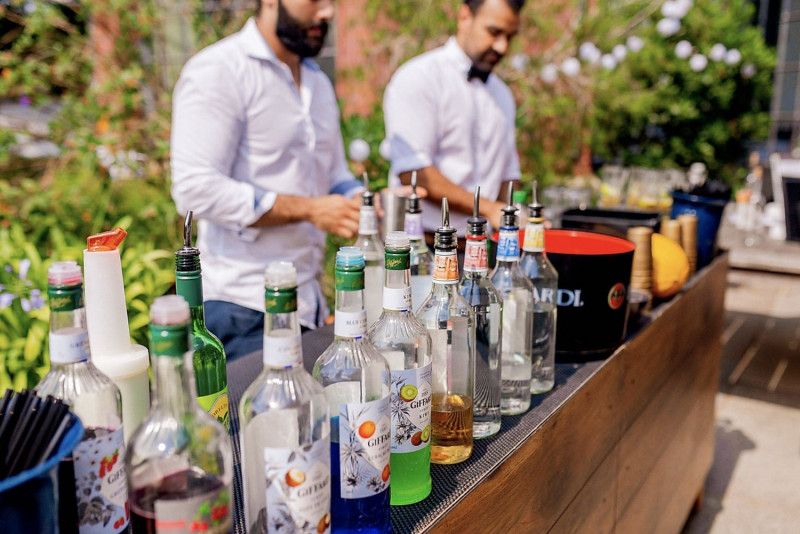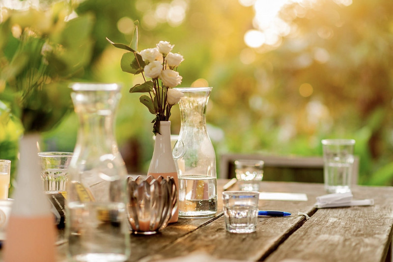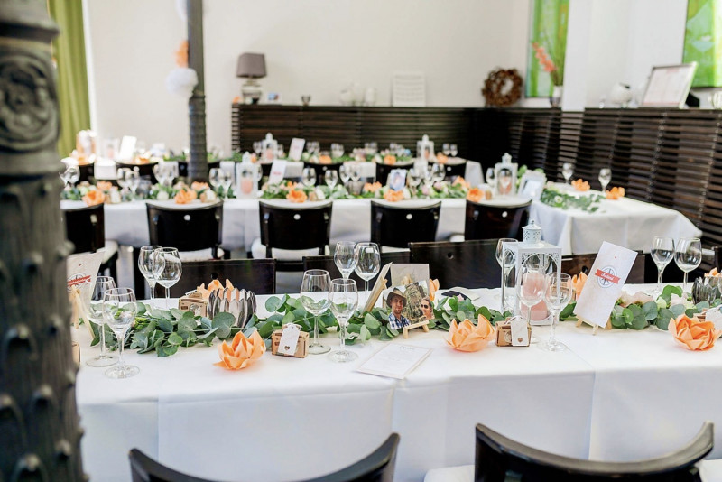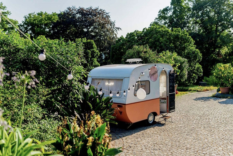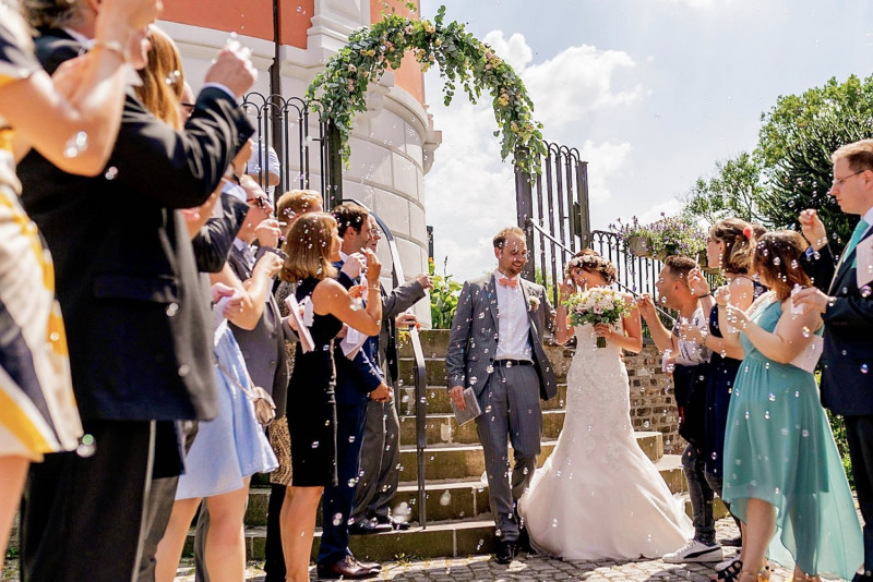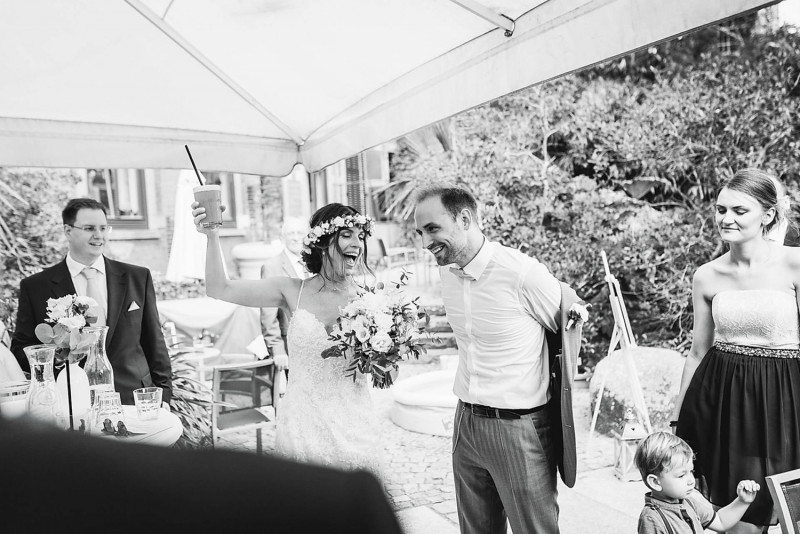 Nach der emotionalen Trauung, mit Gesang von Hochzeitssängerin Sara, ging es für alle zur Party in die Orangerie der Hochzeitslocation. Neben einer Cocktailbar und einem fruchtigen Tortentraum von Konditorei Metropol wartete dort die fahrende Fotobox Clementine The Tiny Camper.