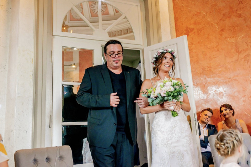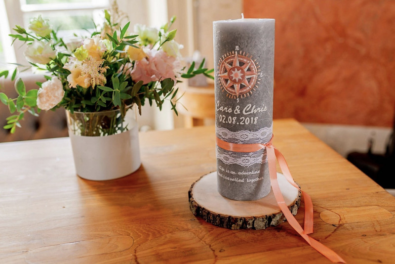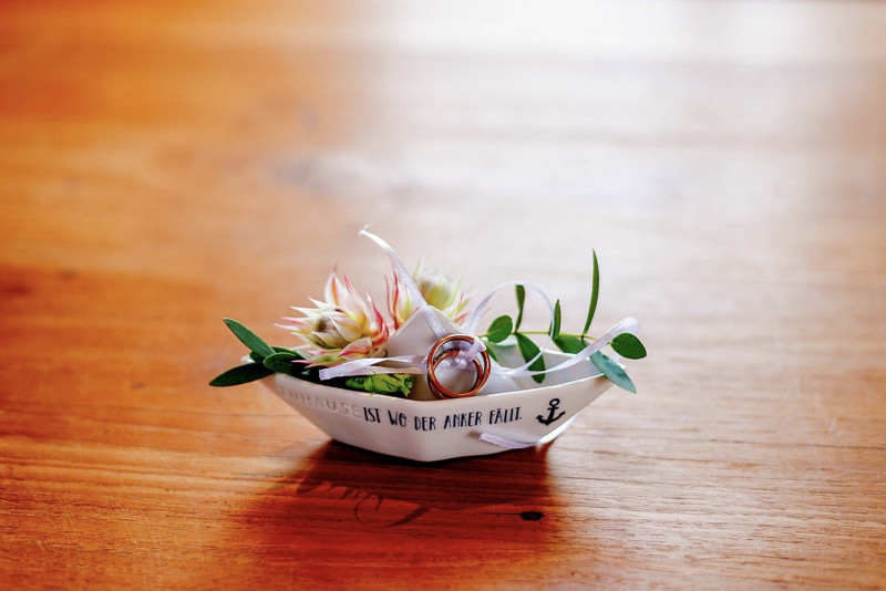 Tim & Dana von Grubenglück haben diesen besonderen Tag für die beiden fotografisch festgehalten, der natürlich mit dem Getting Ready began. Gestylt wurde die Carolin von Raphaela Makeup Artist & Hair Stylist. In einem Träumchen in Blush eines Brautkleides von Hochzeitsmode Dresden und einem Brautstrauß von Wild Daisy lief die Braut hinter der kleinen Nichte von Christian ins Standesamt ein. Auch im Trausaal finden sich überall Details zum Thema Reisen, wie zum Beispiel dem Ringkästchen im Schiffsdesign oder der, mit einem Kompassverzierten, Traukerze von KerzenExpress. Die Ringe von Goldschmiede Quickels tragen die Gravur der Koordinaten ihrer Verlobung auf Bali.