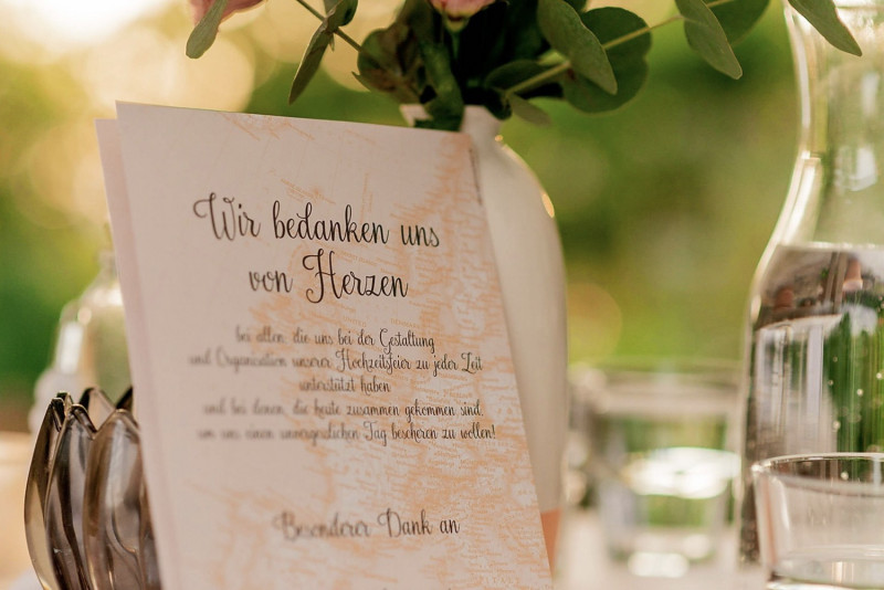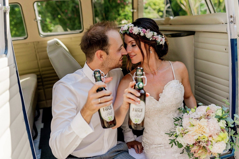 Das Geheimnis der beiden, das eigentlich keines sein sollte? „Wir müssen es dabei niemandem – außer uns selbst – recht machen.“ Und genau so ist es! Und so wurde dieser Tag zum absoluten Highlight für die beiden und sicher auch für die Gäste. „Jeder Gast freute sich aus ganzem Herzen mit uns, ließ unsere Liebe hochleben und machte unseren Tag zu einem herzlichen, unvergesslichen Start in ein neues, gemeinsames Abenteuer. Es war ein ungezwungenes, farbenfrohes und unwahrscheinlich liebevolles Fest, voller Überraschungen, bis in die frühen Morgenstunden.” Und jetzt wünsche ich euch ganz viel Freude mit dieser wundervollen Sommerhochzeit!