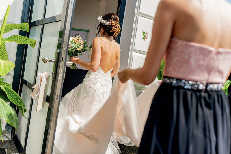 Am 02. August 2018 gaben sich Carolin & Christian das standesamtliche Ja-Wort bei ihrer Sommerhochzeit im Travellook! Genau ein Jahr zuvor stellte Christian die Frage aller Fragen, an einem traumhaften Sandstrand auf Bali. Sollten wir dort heiraten? Auch diese Frage stellte sich das Brautpaar. Doch ohne unsere Liebsten? Auf keinen Fall! Mit den 40 engsten Freunden und der Familie ging es dann in den Botanischen Garten der Elisenhöhe Wuppertal. Im Fokus stand vor allem dass sich an diesem Tag alles um das einzig wichtige drehen sollte! Die Liebe! „Wir konzentrierten uns nach vielen Gesprächen zu zweit auf das, was wirklich wichtig ist – auf Zeit miteinander. Auf unsere Liebe füreinander. Die gemeinsame Liebe zu unseren Freunden. Die Liebe zur Leichtigkeit und Freude am Leben. Die gemeinsame Liebe zum Reisen. Die Liebe zur Natur. Kein unnötiger Schnickschnack und ohne viel Tamtam. So planten wir eine kleine, gemütliche Ambiente-Trauung im Kreise unserer 40 engsten Freunde und Familien und vereinbarten dies mit Elementen im Travel-Look, im wunderschönen Botanischen Garten, in Wuppertal.” In jedem Details der liebevollen Dekoration und der tollen Papeterie von Kartenmacherei wird diese Liebe zum Reisen sichtbar.