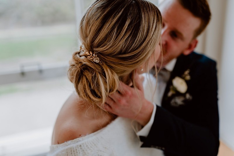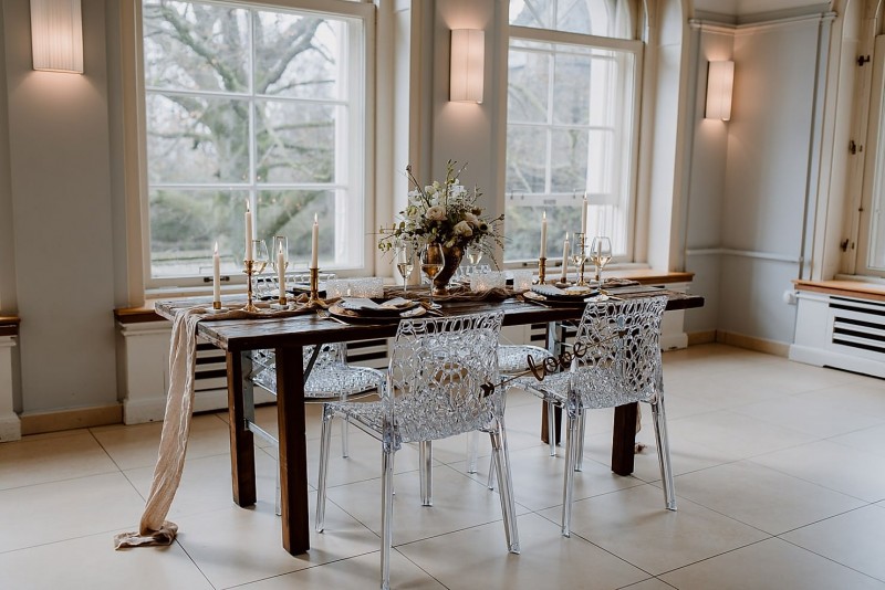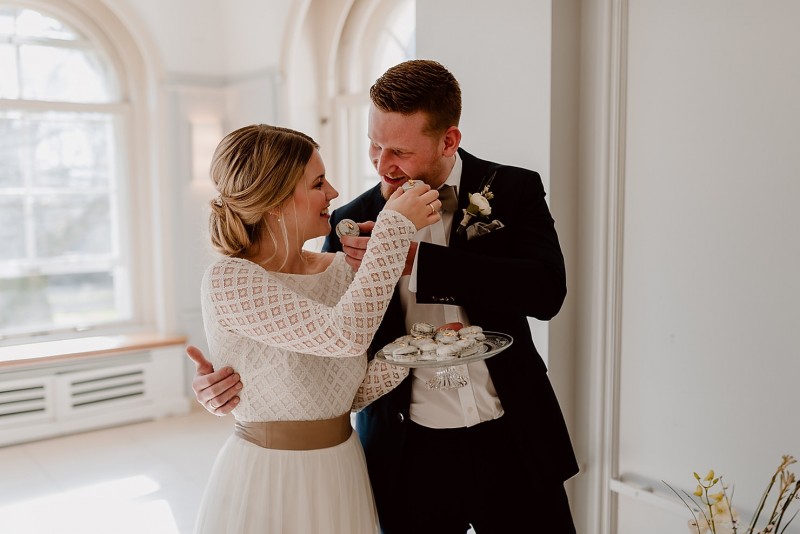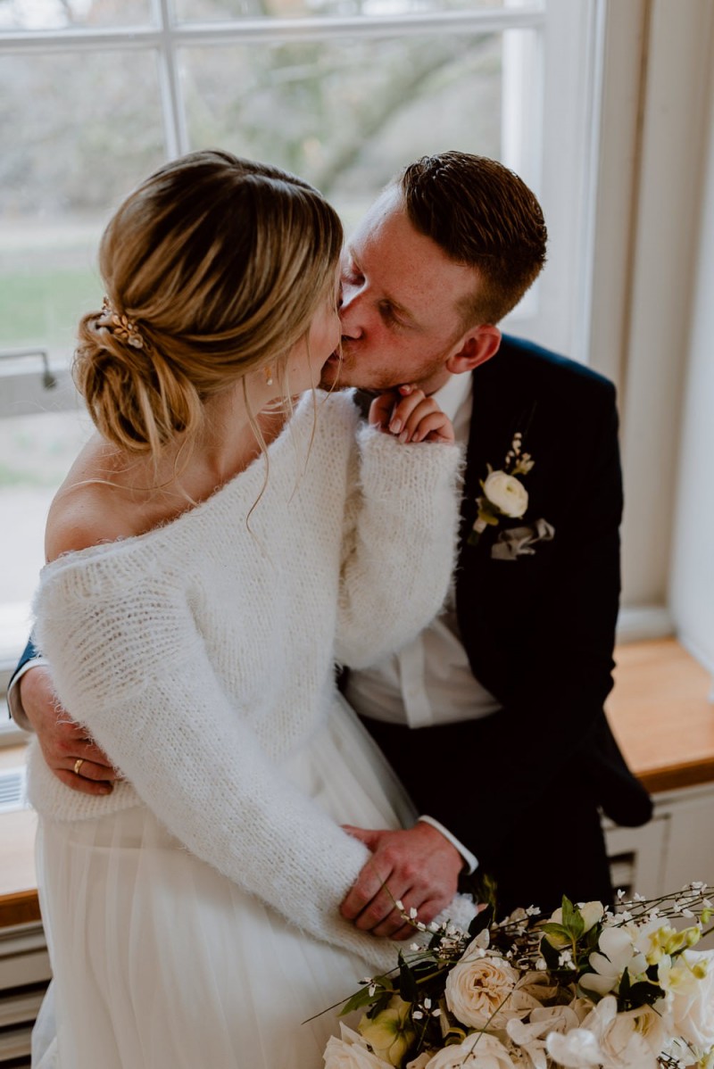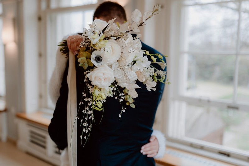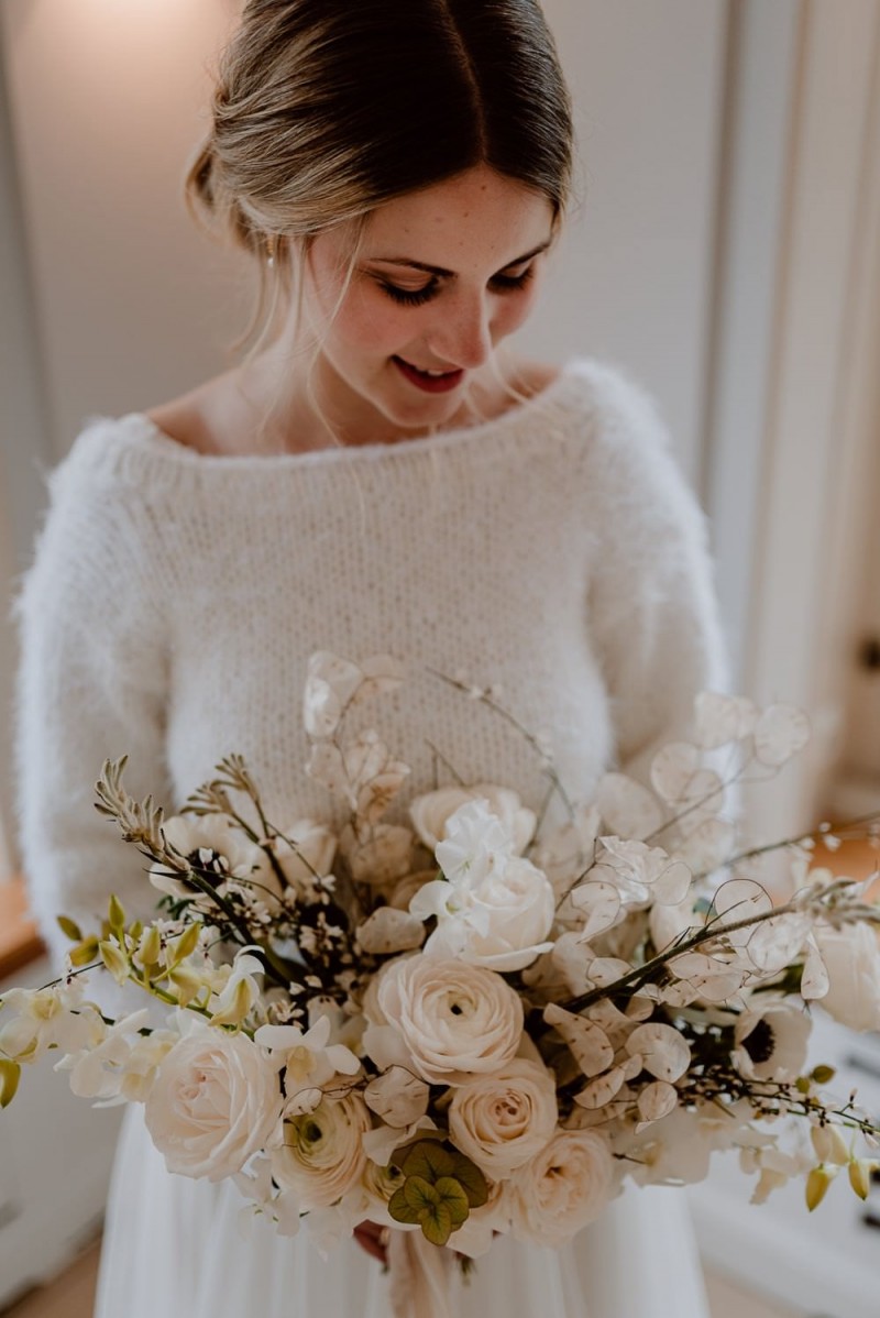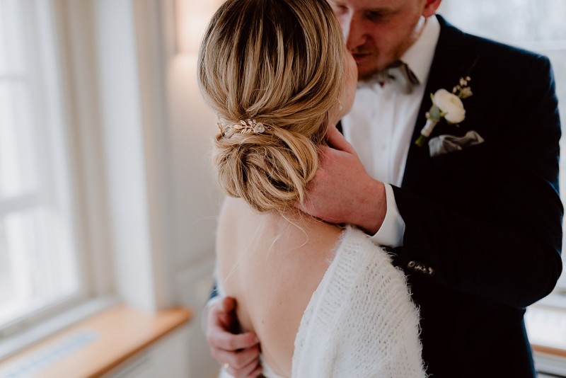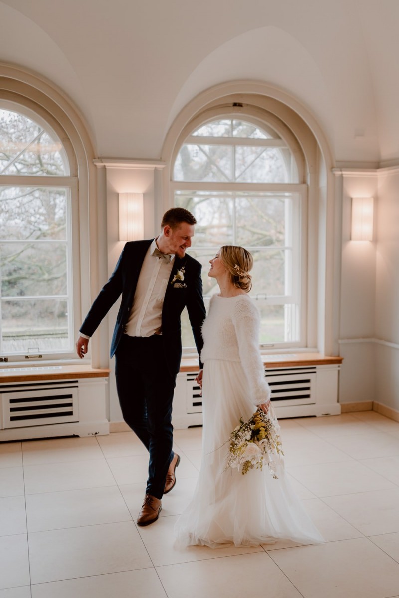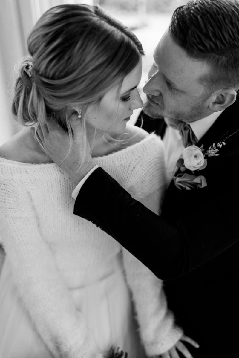In dieser Inspiration einer Hochzeit ganz im Motto Gold meets Marble, warten ein zuckersüßes Brautpaar und ganz viele feine Details auf euch! Romantisch wird es ebenfalls, nicht zuletzt, weil diese Hochzeitsinspiration im hübschen Schloss Styrum entstanden ist. Vor allem aber dominieren die klassischen und festlichen Vibes. Hochzeitsfotografin Nicole Otto Photographie hat diese Inspiration für uns fotografiert, bei der sie auch die zarte Hochzeitspapeterie entworfen hat. Schon hier trifft Klassik auf Romantik durch die Verwendung von weißem Papier mit gerissenen Kanten, schwarzer geschwungener Schrift, goldenen Siegeln und zarte Seidenbändern von Oh so preppy. Perfekt dazu wählte Anna von Miet me at the wedding die Dekoration. Fließende Stoffe, goldene Details, die auf zarte Blumen und schwarze Akzente treffen. Die Floristik übernahm Runo Blumen und setzte mit weißen Details und einem Hauch Farbe auf die klassische Schönheit mit einem wilden Touch. Während die große dunkle Tafel klassisch wirkt, sind die durchsichtigen Stühle ein toller und moderner Hingucker, den der Möbelverleih Sitzplätzchen hier für uns durch die gesamte Möbelwahl inszeniert. Natürlich ist auch das Brautpaar ein absoluter Hingucker. Auch hier dominieren klassische Züge. Das Brautkleid ist ein Zweiteiler von Noni Mode, dessen Oberteil durch einen hochgeschlossenen Schnitt und lange Ärmel begeistert. Dazu kombiniert, ein zarter und fließender Tüllrock, der den klassischen Look um eine Portion Romantik erweitert. Dank des farblich abgesetzten Gürtels und einem kuscheligen Pullover passt die Braut perfekt in die festliche Szenerie und setzt weiche Akzente an der Seite ihres Bräutigams im schwarzen Anzug mit Fliege. Auch das Brautstyling wurde eher klassisch gehalten und von Hair & Makeup Artist Lisa Knape kreiert. Perfekt ergänzt um die kleinen Ohrstecker und das zarte Headpiece von La Chia Headpieces. Natürlich wurde an diesem Tag auch an das leibliche Wohl gedacht. Die wunderschöne Hochzeitstorte teils in weißem Fondant, teils in Marmoroptik und mit zarten Blüten aus Fondant verziert, kreierte The Baker’s Wife. So wie auch die besonderen Macarons im Marmorlook mit feinem Blattgold. Klassisch muss eben nicht starr sein. Im Gegenteil! Durch die Wahl moderner Akzente und Materialen entsteht Leichtigkeit, die den klassischen Look neu interpretiert. Ganz viel Freude euch mit dieser feinen Inspiration in Gold und Marble!