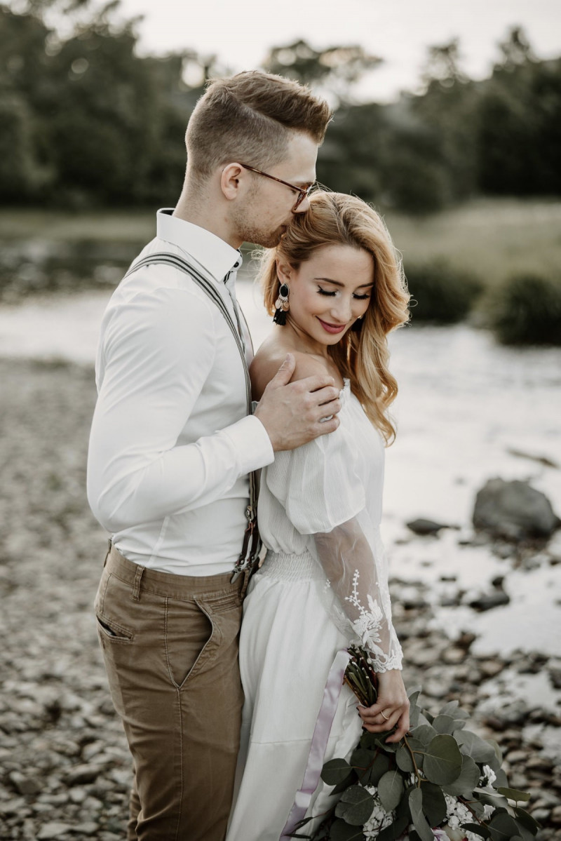 Dies ist wohl eines der besondersten Shootings, die unter die Kategorie Couple Shooting fallen. Nach der ganzen Aufregung und Planung der Hochzeit, ganz allein und völlig frei noch einmal als Ehepaar vor die Kamera zu treten, kommt glatt einem Elopement gleich. Ich muss zugeben, nach all den Jahren mit meinem Schatz (11 Jahre um genau zu sein) gibt es immer weniger Bilder von uns beiden. In wundervollen Situation genieße ich den Moment meist so intensiv mit ihm, dass ich schlicht vergesse, mein Handy für ein Foto von uns beiden zu zücken. Wir müssen schon Gast auf einer Hochzeit sein, um Fotos von uns für den Kühlschrank zu bekommen. Umso schöner, wenn man rund um die Hochzeit jede Gelegenheit wahrnimmt. Und es gibt so viele! Ob Couple Shooting, Engagement Shooting oder After Wedding Shooting. Giulia & Nico zeigen bei diesem Couple Shooting so wundervoll, was Grandioses dabei herauskommt! Die liebe Brigitte Foysi zauberte, in den Abendstunden eines warmen Sommertages, an einem kleinen Flußbett, Erinnerungen, die zusätzlich zu den wunderschönen Aufnahmen, ein Leben lang halten werden!