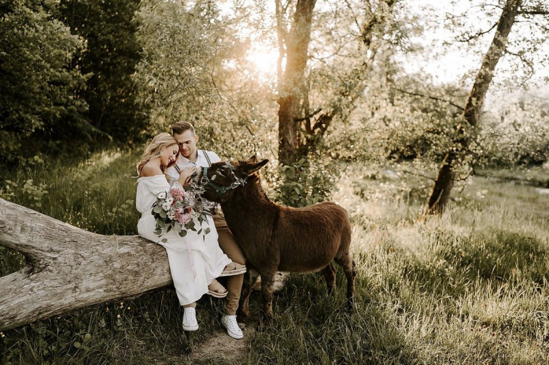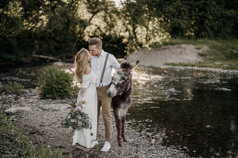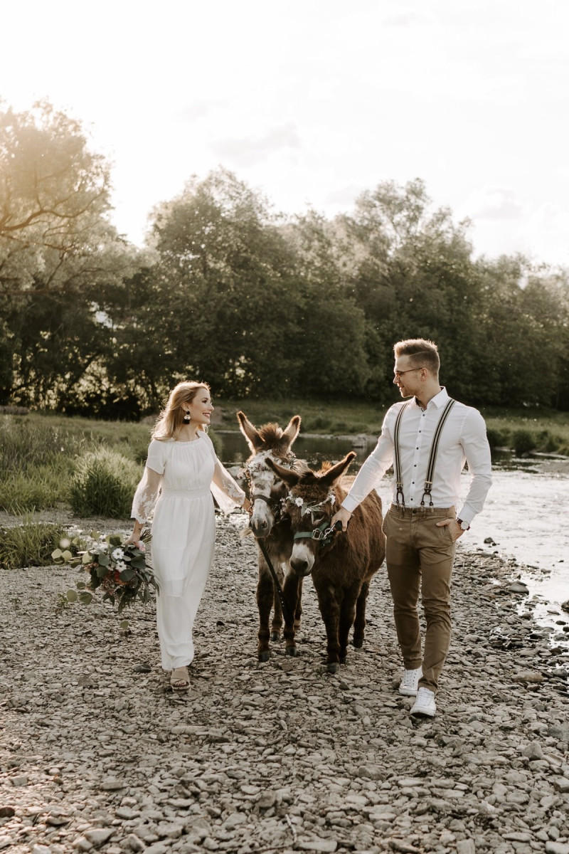 Ein weiteres Highlight dieses Shootings sind ganz klar Piet & Pepe, zwei Blumen und Eukalyptus liebende Esel. Und da das Fotografieren mit Tieren nicht ganz leicht ist, teilt Brigitte ihre Tipps und Erfahrungen mit uns! Ganz viel Freude mit diesen atemberaubenden Bildern!!