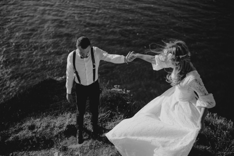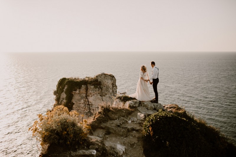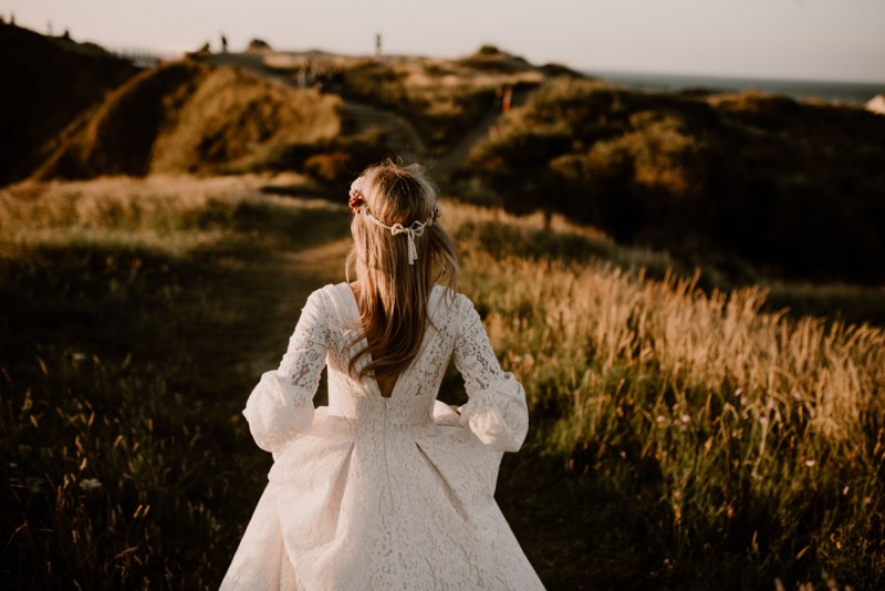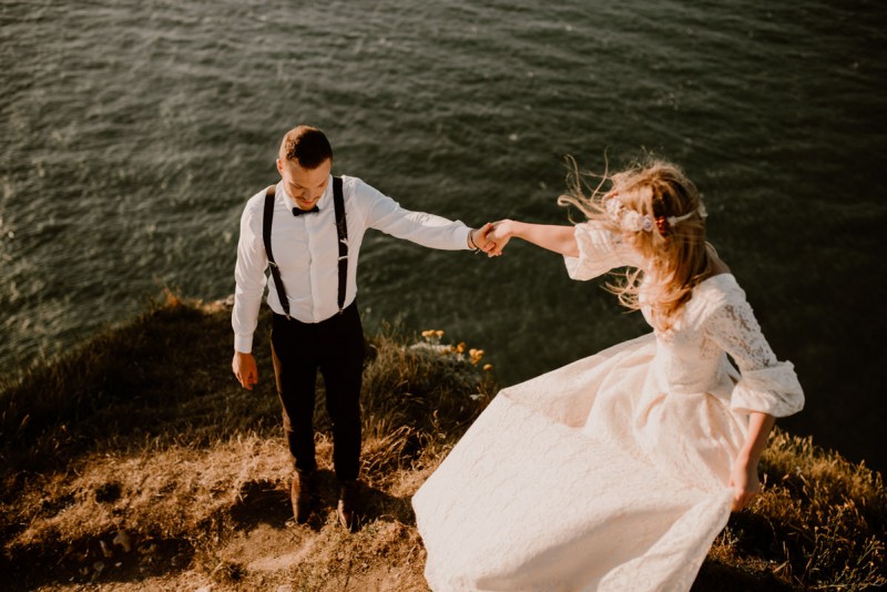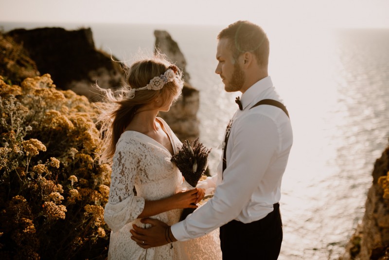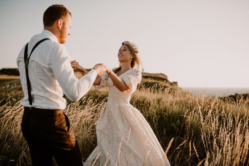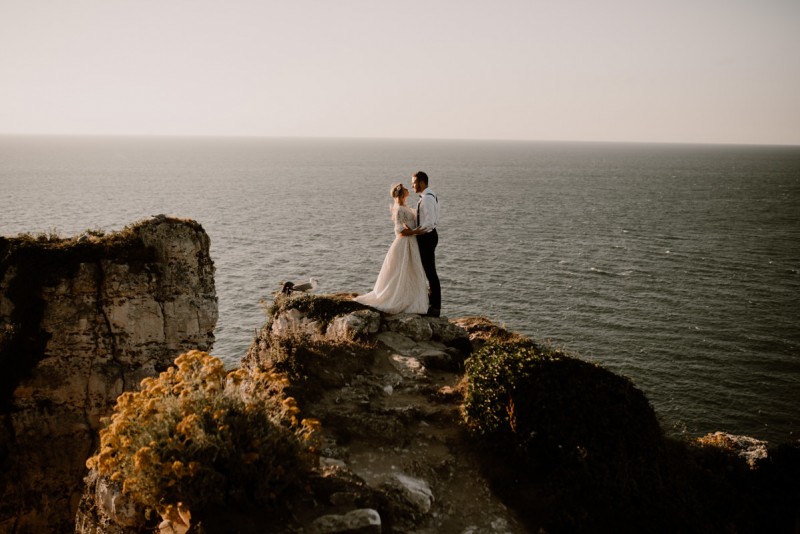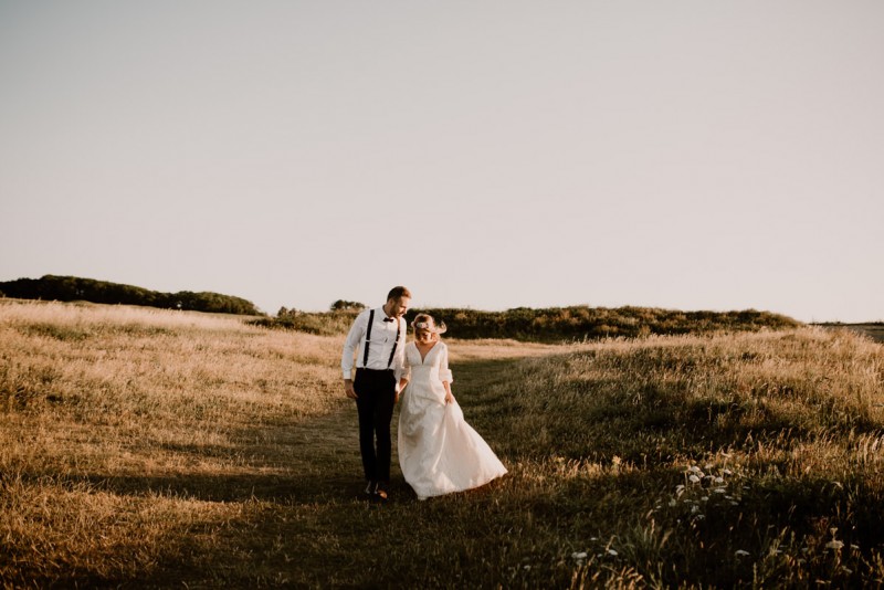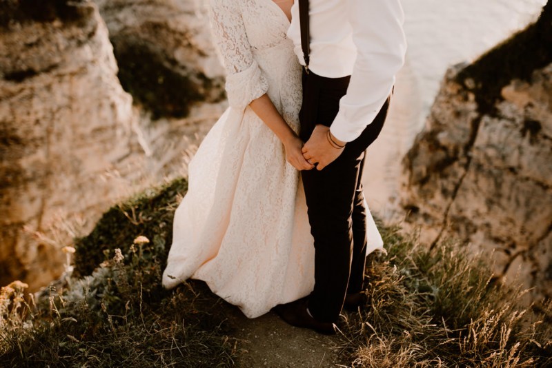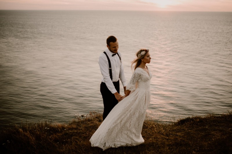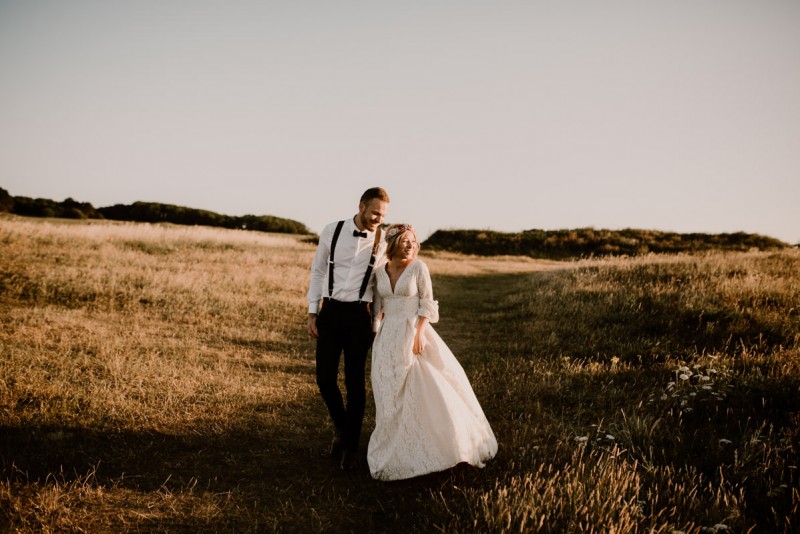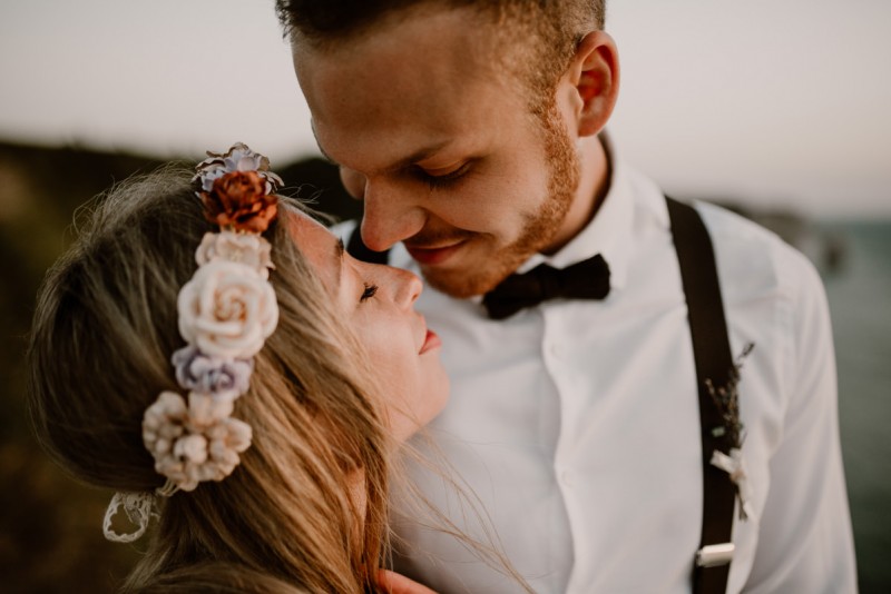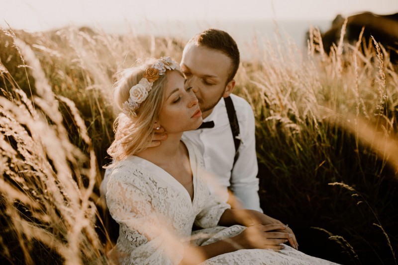 An einem sonnigen Julinachmittag ging es für Hochzeitsfotografin Anne Letournel Photography und das Brautpaar Ksenia & Damien ins schöne Etretat der Normandie. Hier, umgeben vom Geruch des Salzwassers und mit Blick auf die steilen Felsklippen und ihre außergewöhnlichen Felsformationen, fand ihr romantisches After Wedding Shooting statt. Nur einen Tag zuvor feierten sie ihre französisch-russische Hochzeit. Um möglichst viele wunderschöne Erinnerungen an ihre Hochzeit und diesen besonderen Ort zu schaffen, nutzten sie den sonnigen Nachmittag und schritten gemeinsam durch wilde Felder hindurch zur Steilküste. Beide trugen natürlich ihr Hochzeitsoutfit vom vorherigen Tag. Ksenia trug ihr in Russland gekauftes Brautkleid von Salon Love Forever, das alles vereinte, was sie selbst ausmacht. Simple, elegant und modern. Dazu trug sie ihre feine Flowercrown und ihren, von der La Boutique De Fleurs kreierten, Brautstrauß, der ausschließlich aus Lavendel und einigen wenigen Ehrenpreis bestand. Damien, in seinem lockeren Outfit samt Hosenträgern und Fliege von Maison Artling, führte sie unglaublich romantisch durch diese einmalige Kulisse. Da mich die Magie der beiden an diesem Ort völlig berauscht hat, dürft ihr euch auf sehr viele Bilder freuen. Lasst euch verzaubern vom Knistern der beiden frisch Verheirateten, vom französischen Wind, der zart durch das Haar der Braut weht, und vom einmaligen Ausblick!