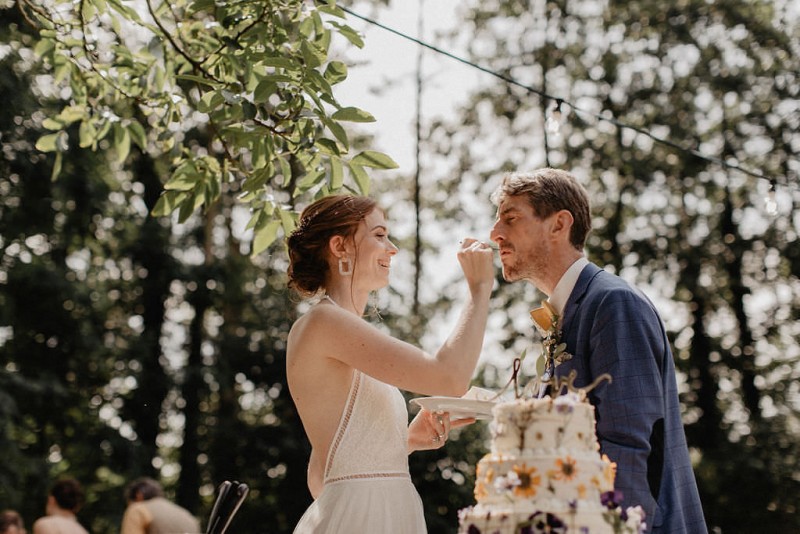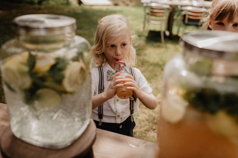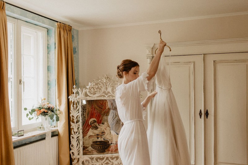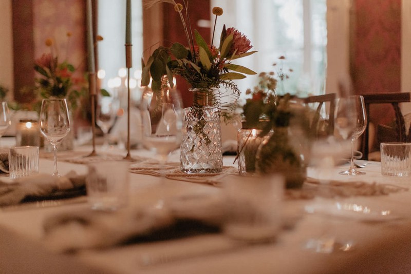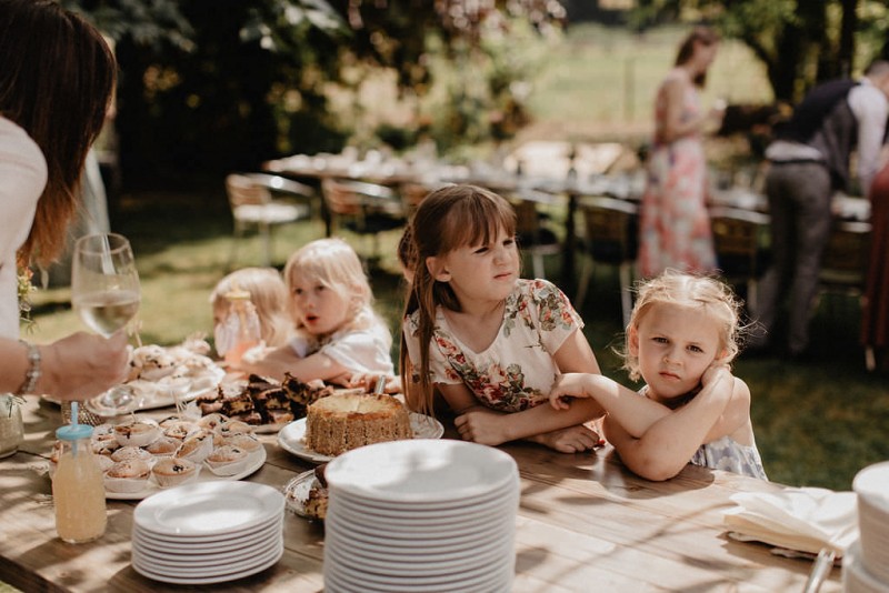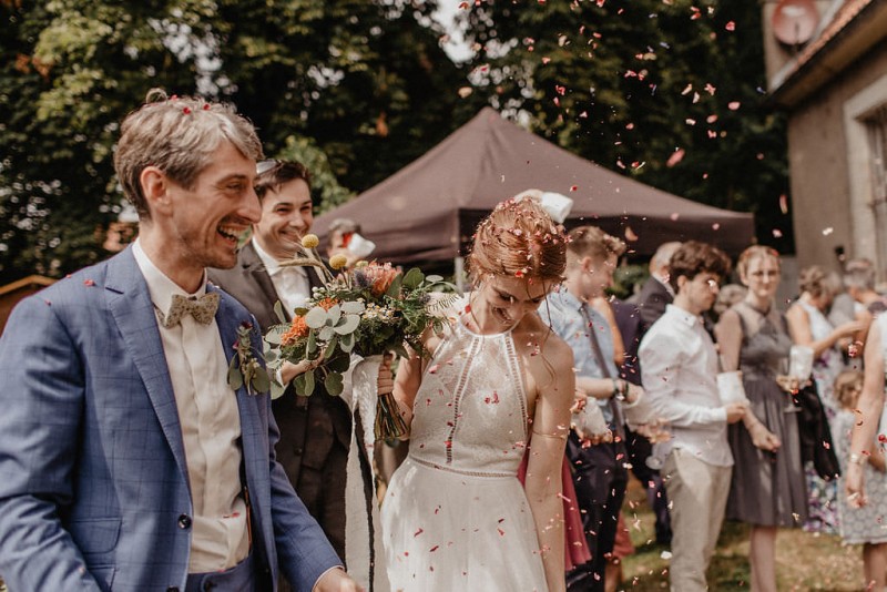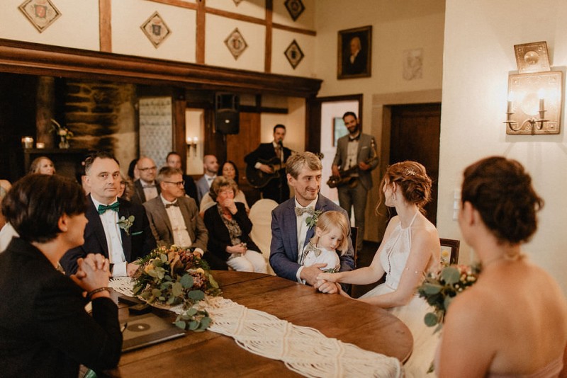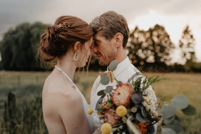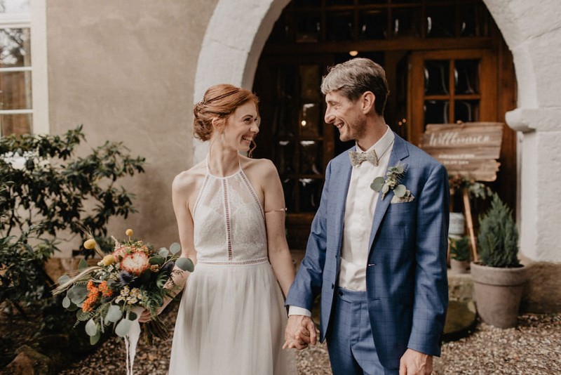 Am 20. Juli diesen Jahres feierten Dominique und Sven ihre zauberhafte standesamtliche Hochzeit in der Nähe der Grenze zu den Niederlanden. Eine bohoinspirierte Sommerhochzeit mit einer zauberhaften Hochzeitsfeier im Garten und einer emotionalen standesamtlichen Trauung erwarten euch. Begleitet wurde das Brautpaar von Hochzeitsfotografin Leonie Rosendahl, die diesen besonderen Tag fotografisch so schön festgehalten hat. Die Braut selbst hat ihn geplant und die Dekoration und die Floristik im Bohostil gezaubert. Und so begann er, bei strahlendem Sonnenschein, mit dem Getting Ready der Braut. Gestylt wurde Dominique von Lisa Knape, die ihr einen lockeren Updo und ein natürliches Makeup kreierte. In einem zarten Brautkleid mit tiefem Rückenausschnitt und mit ihrem feinen Brautstrauß samt beschriftetem Seidenband, machte sie sich auf zu ihrem Bräutigam. Dieser wartete bereits auf sie in einem Outfit von monsieur agnes und einer Fliege von Der Feine Herr, vor der Tür des Gebäudes. Hier fand der emotionale First Look der beiden statt. Von dort aus ging es gemeinsam mit den Kindern zum Standesamt, wo die beiden sich, umgeben von ihren Liebsten, ihr Ja-Wort gaben. Musikalisch begleitet wurde dieser besondere Moment von she said yes music, die auch auf der anschließenden Gartenfeier für Stimmung sorgten. Und diese ist wirklich ein Traum! Eine lange, wunderschön dekorierte, Tafel erwartete die Gäste, sowie eine zauberhafte Limobar. Zudem gab es einige tolle Spiele, die sowohl bei den Kindern als auch bei den Erwachsenen für Spaß sorgten. Auch die Hochzeitstorte wurde von der Braut kreiert. Sie sammelte diese essbaren Blüten über ein Jahr hinweg und trocknete sie. So entstand diese wunderschöne Hochzeitstorte. Mit dem Anschnitt der Hochzeitstorte endete leider das schöne Wetter. Regen zog auf und die Hochzeitsgesellschaft zog ins Innere des Gebäudes, wo ebenfalls ein wunderschön dekorierter Raum auf sie wartete. Der Wolkenbruch konnte der Stimmung keinen Abbruch tun und so ging die Hochzeitsfeier drinnen weiter. Da es zum Abend hin aufhörte zu regnen, erwartet euch, neben all diesen feinen Details auch ein romantisches Brautpaarshooting. Ganz viel Freude euch mit all diesen einmaligen Eindrücken und Inspirationen!