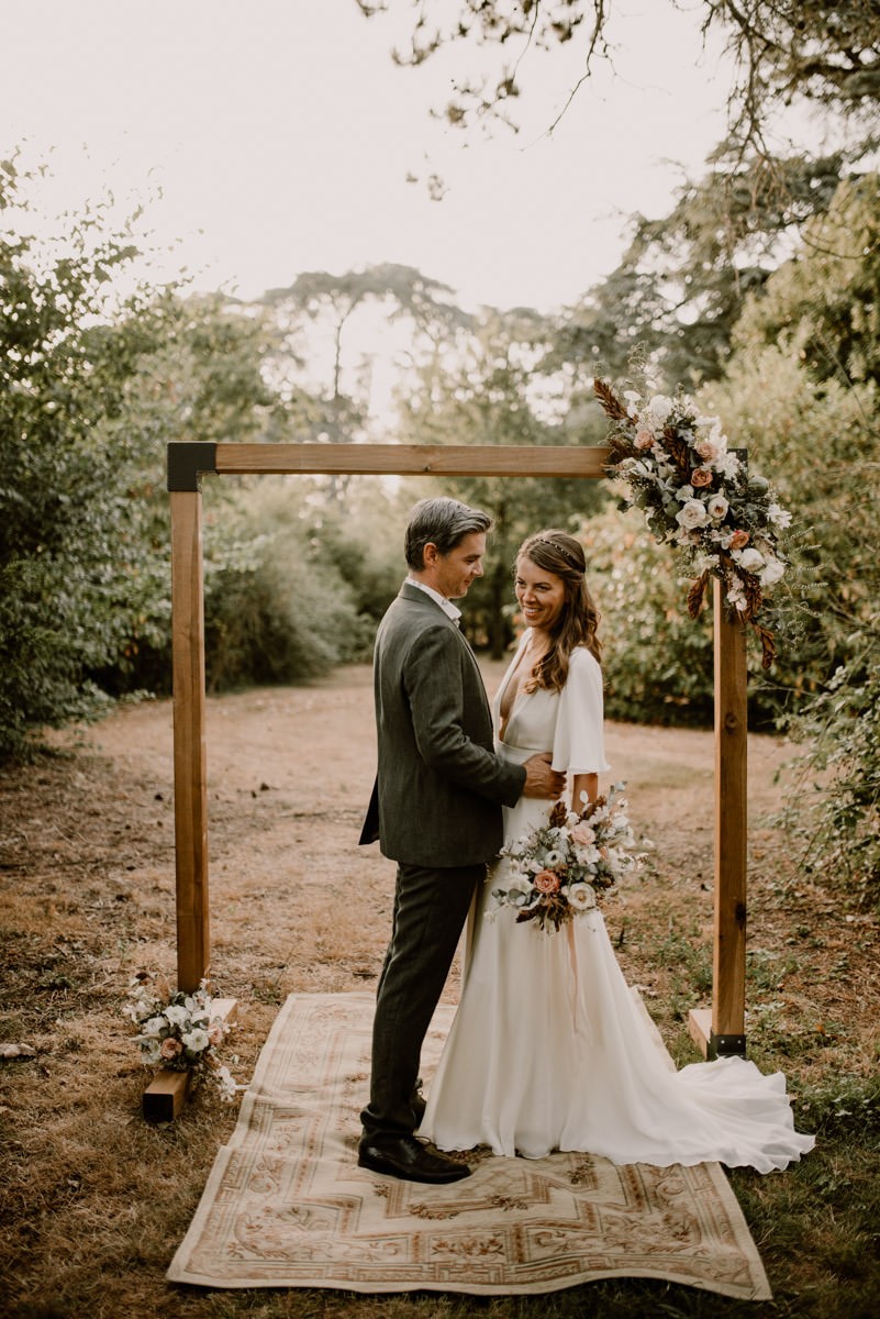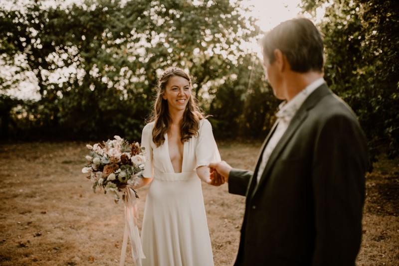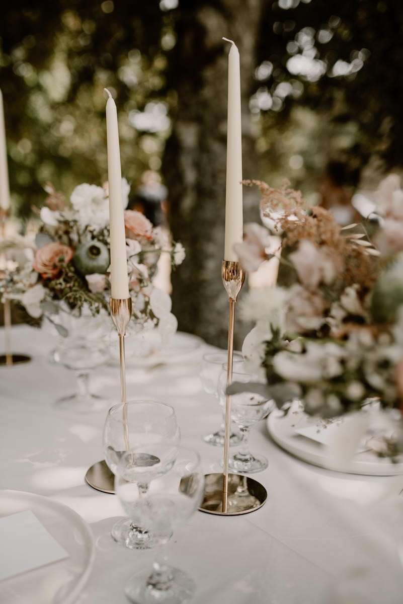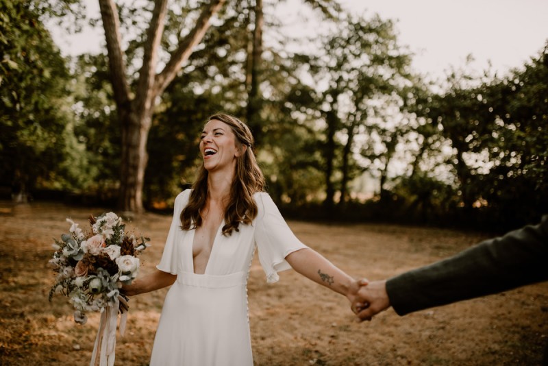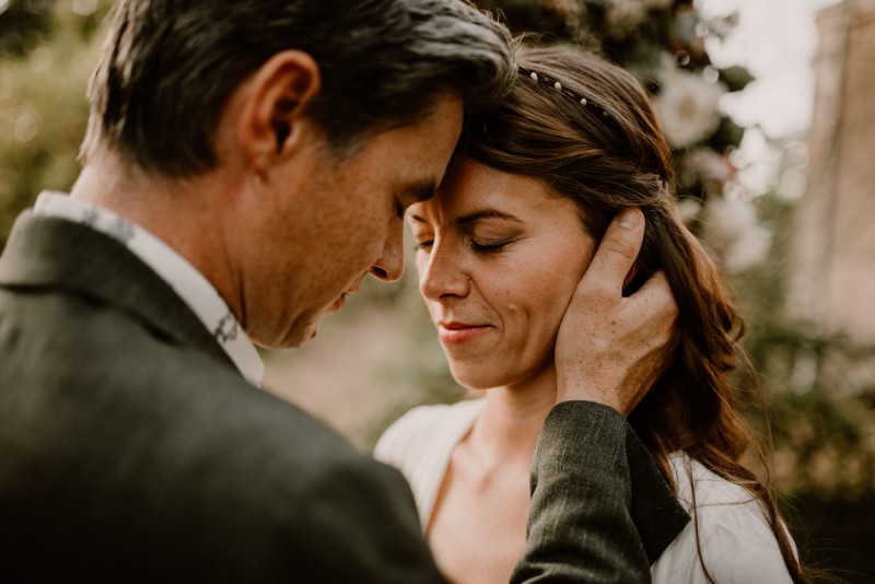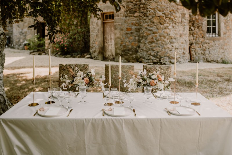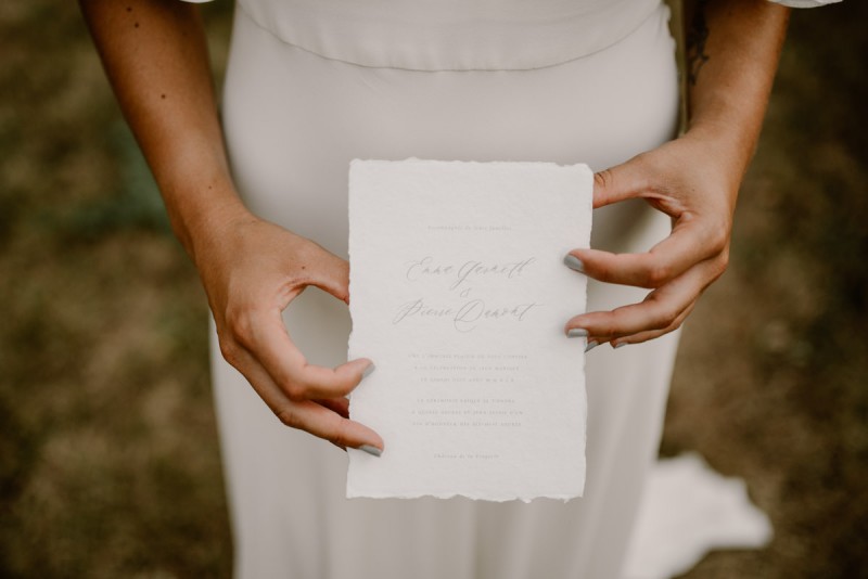 Ich darf euch heute ein weiteres Mal in der schönen Bretagne begrüßen. Genauer gesagt, im schönen Loire Atlantique, wo das Chateau de la frogerie steht. Und dieses öffnet für uns heute seine Tore und lässt uns in seinem zauberhaften Garten eine romantische Inspiration für Sommerhochzeiten genießen. Fotografiert wurde diese ganz zauberhaft von Hochzeitsfotografin Anne Letournel. Der Fokus dieser Hochzeitsinspiration, die von Hochzeitsplanerin Morgane von Morgane Positive Events geplant wurde, liegt auf der Liebe zu neutralen Farben. Durch die feine Floristik, kreiert von Nuances florales, entsteht zusätzlich ein besonders schöner Hauch von Romantik, der dieser zeitlosen Szenerie eingehaucht wurde. Und auch die natürlichen und zarten Farben der Hochzeitspapeterie, kreiert von MYNE, versprüht so herrlich die Leichtigkeit des Sommers. Neben dieser schönen Szenerie erwartet euch auch noch ein tolles Brautpaar, das durch diese hindurch tanzt und sich vor einem wunderschönen Traubogen wiederfindet. Sie in einem schlichten aber atemberaubenden Brautkleid der Marke Donatelle Godart Paris via Felicité , locker geflochtenem Haar dank des Stylings von Laëtitia Rivoal und einer zarten Keramikkrone auf diesem von Rachel Suhubiette. Ein zarter und fließender Brautlook, der durch den wilden Brautstrauß perfekt abgerundet wird. Er trägt passend zu dieser wundervoll natürlichen Location einen Anzug von l’homme nantais in grün und ein weißes Hemd mit floraler Musterung in grau. Ein toller aber dennoch dezenter Hingucker! Die beiden passen einfach perfekt in diese naturbelassene Szenerie, die mit all ihren kleinen, magischen Feinheiten zum Träumen und Verweilen einlädt. Nehmt gerne auf einem der wunderschönen Stühle Platz und genießt es!