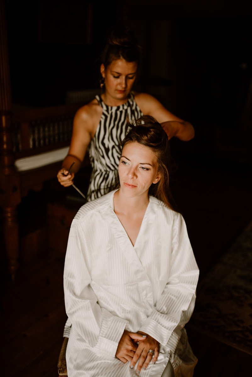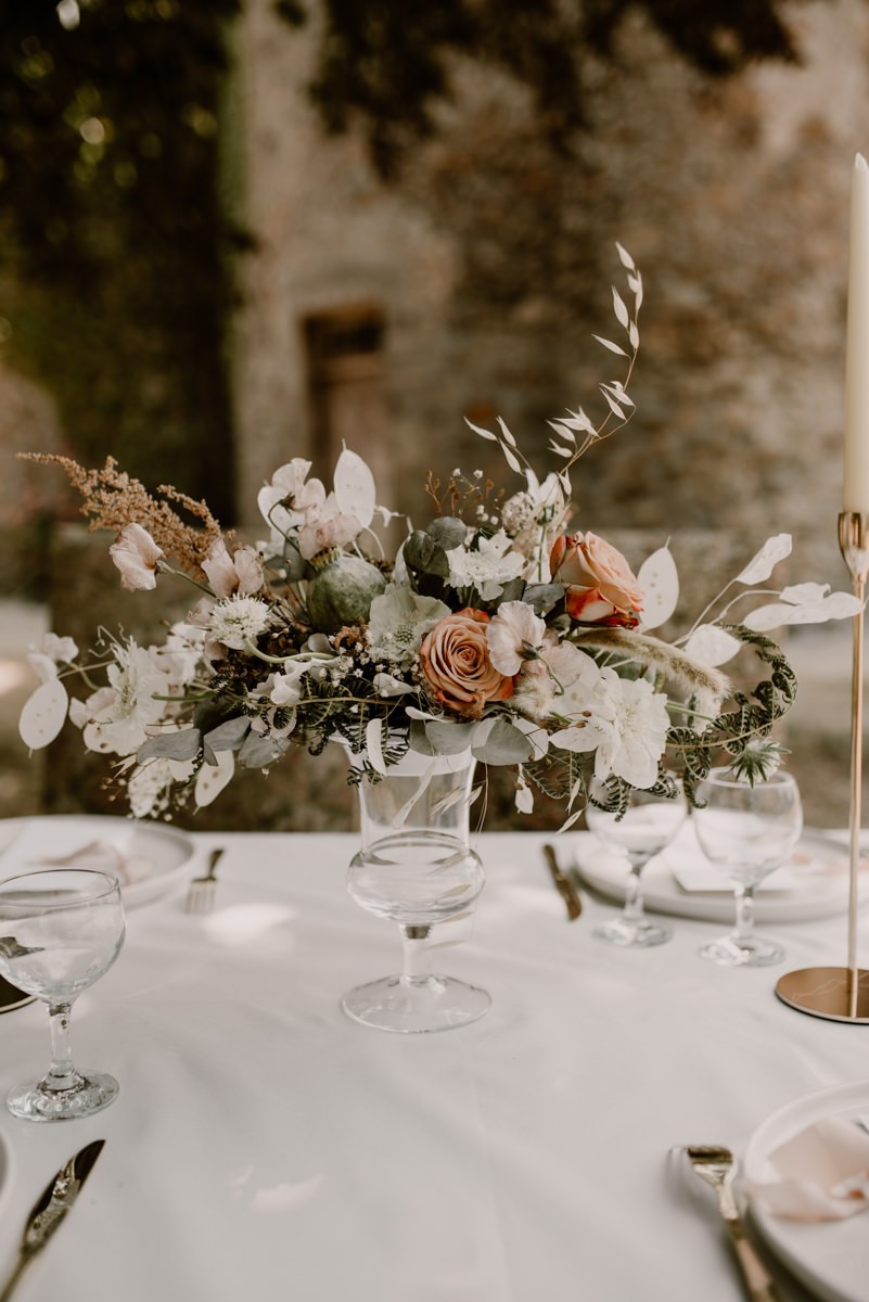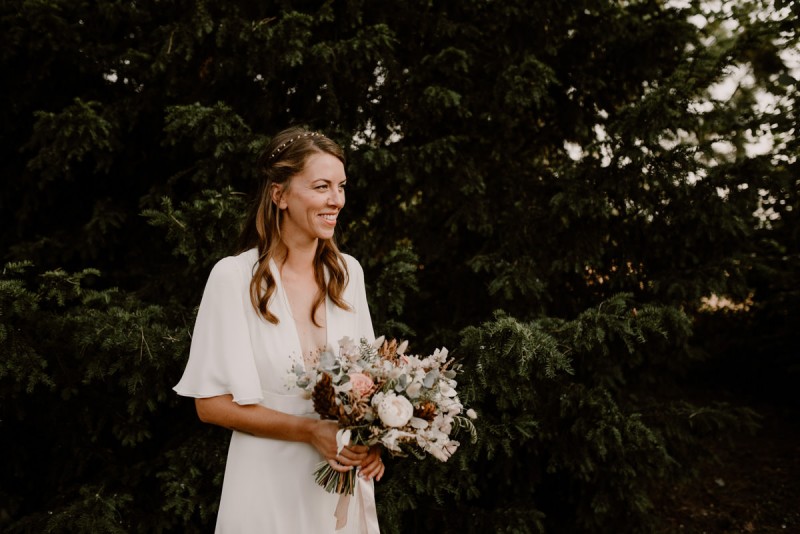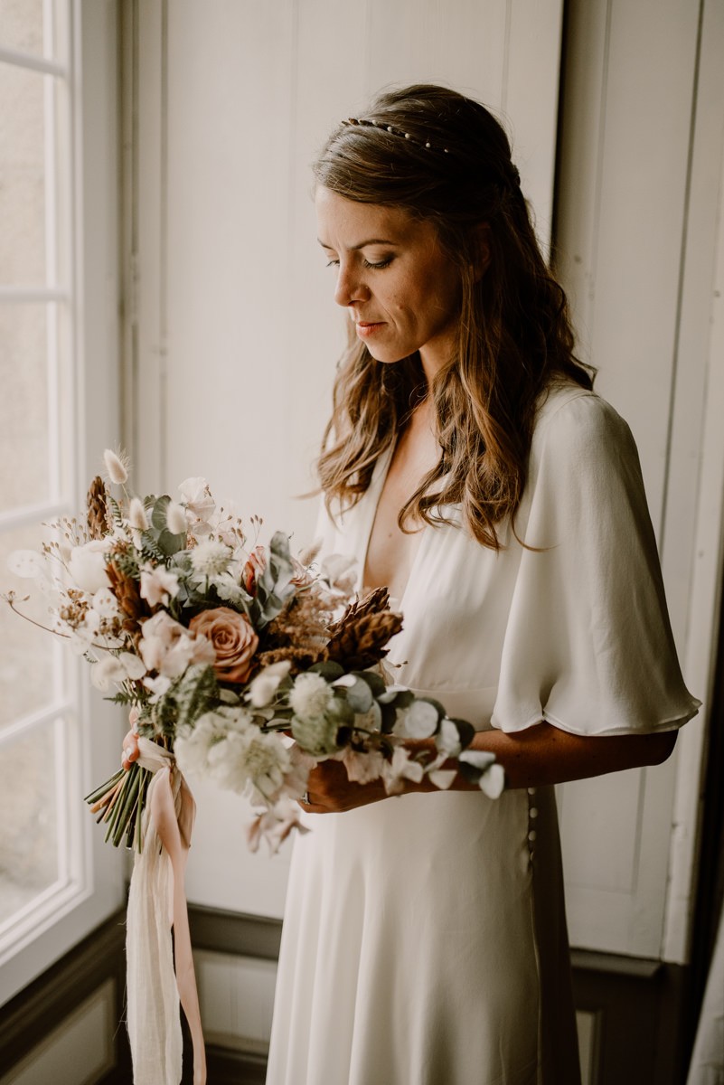 Ich darf euch heute ein weiteres Mal in der schönen Bretagne begrüßen. Genauer gesagt, im schönen Loire Atlantique, wo das Chateau de la frogerie steht. Und dieses öffnet für uns heute seine Tore und lässt uns in seinem zauberhaften Garten eine romantische Inspiration für Sommerhochzeiten genießen. Fotografiert wurde diese ganz zauberhaft von Hochzeitsfotografin Anne Letournel. Der Fokus dieser Hochzeitsinspiration, die von Hochzeitsplanerin Morgane von Morgane Positive Events geplant wurde, liegt auf der Liebe zu neutralen Farben. Durch die feine Floristik, kreiert von Nuances florales, entsteht zusätzlich ein besonders schöner Hauch von Romantik, der dieser zeitlosen Szenerie eingehaucht wurde. Und auch die natürlichen und zarten Farben der Hochzeitspapeterie, kreiert von MYNE, versprüht so herrlich die Leichtigkeit des Sommers. Neben dieser schönen Szenerie erwartet euch auch noch ein tolles Brautpaar, das durch diese hindurch tanzt und sich vor einem wunderschönen Traubogen wiederfindet. Sie in einem schlichten aber atemberaubenden Brautkleid der Marke Donatelle Godart Paris via Felicité , locker geflochtenem Haar dank des Stylings von Laëtitia Rivoal und einer zarten Keramikkrone auf diesem von Rachel Suhubiette. Ein zarter und fließender Brautlook, der durch den wilden Brautstrauß perfekt abgerundet wird. Er trägt passend zu dieser wundervoll natürlichen Location einen Anzug von l’homme nantais in grün und ein weißes Hemd mit floraler Musterung in grau. Ein toller aber dennoch dezenter Hingucker! Die beiden passen einfach perfekt in diese naturbelassene Szenerie, die mit all ihren kleinen, magischen Feinheiten zum Träumen und Verweilen einlädt. Nehmt gerne auf einem der wunderschönen Stühle Platz und genießt es!