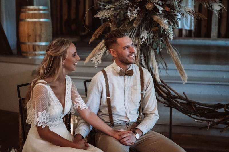 Für uns geht es heute ins schöne Gut Altona, wo uns in der rustikalen Scheune ein traumhaftes Setting für rustikale Bohohochzeiten erwartet! Trotz der rustikalen Atmosphäre ist alles sehr leicht und natürlich, durch die erdigen Farben von Creme bis Braun. Ein zarter Klecks Kupfer gibt dem Konzept aus gedeckten Naturtönen einen edlen Touch und rundet dieses sanfte Setting harmonisch ab. Auch heute gibt es wieder so viel zu entdecken! Wunderschöne Makramee-Dekoration, wilde Floristik aus Trockenblumen, ein großer Traubogen aus Ästen, ein bezauberndes Hochzeitspapeterie Set, inklusive eines sehr außergewöhnlichen Sitzplans, und natürlich auch ein wundervoller Bohobraut-Look.