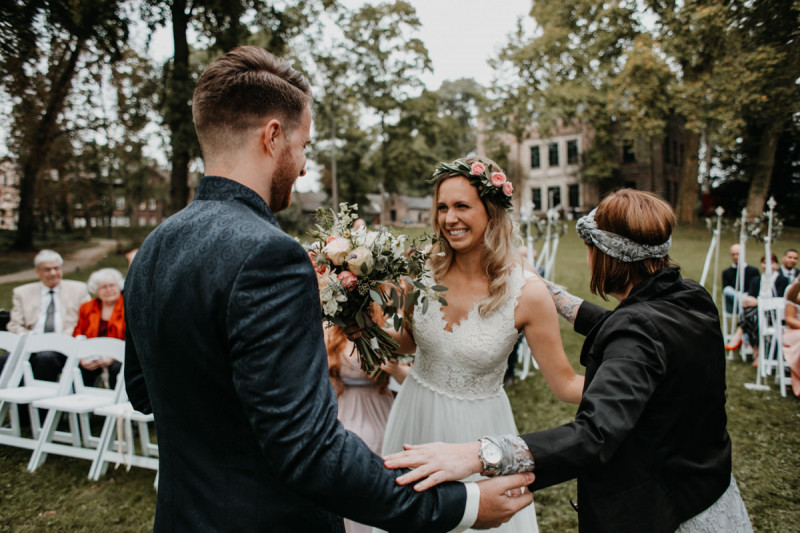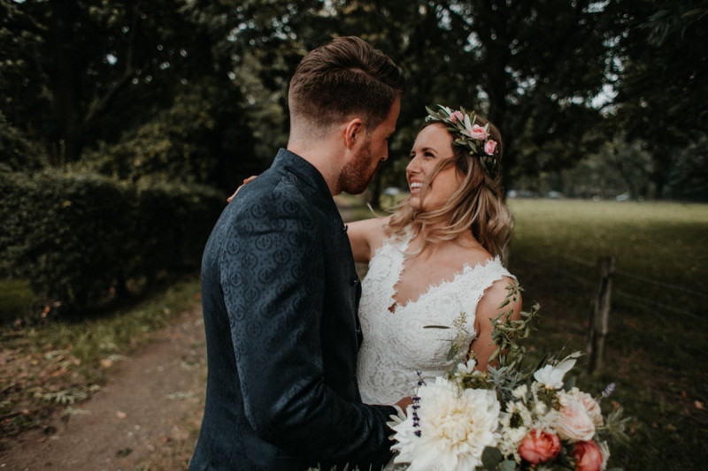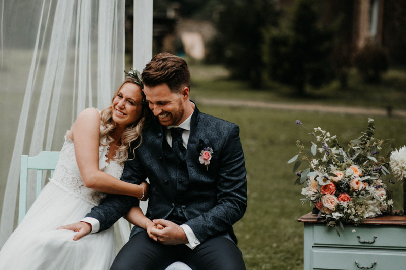 Die bohoinspirierte Freie Trauung von Eva & Matthias am 22. September 2017, gehalten von der lieben Glücksmarie, wurde von der Hochzeitsfotografin Vicky Baumann festgehalten. Eva & Matthias nehmen uns in diesem Artikel mit, vom Getting Ready über die Freie Trauung, bishin, zum Brautpaarshooting. An ihrer Seite, die wichtigsten Menschen in ihrem Leben. Und tolle Dienstleister, die ihren großen Tag, zum schönsten in ihrem Leben machten. Die Braut wurde von Mona von Langhaarmädchen gestylt und trägt einen Traum von Brautkleid von Victoria Rüsche. Die wunderschönen Blumen, die neben der Dekoration als Haarkranz und als Brautstrauß verarbeitet wurden, sind von Gutjahr Dekodesign. Ihre wundervollen Schuhe von Badgley Mischka (Achtung Schnappatmung!) hat sie bei I am Yours in Düsseldorf gefunden. Der Bräutigam strahl in einem Anzug von Kriesel an der Oper. Das hübsche Ringkästchen findet ihr bei Oh so pretty. Und zu guter Letzt: Die Hochzeitslocation, das Rittergut Orr, wurde von Nimmplatz bestückt und wartete nach der freien Trauung, mit einem Tortentraum von Madame Miammiam, auf das Brautpaar und ihre Gäste. Nun, da ihr alle wichtigen Informationen habt, ganz viel Freude beim Staunen!