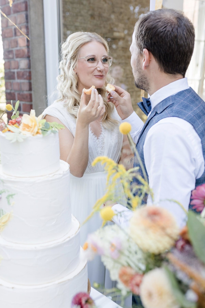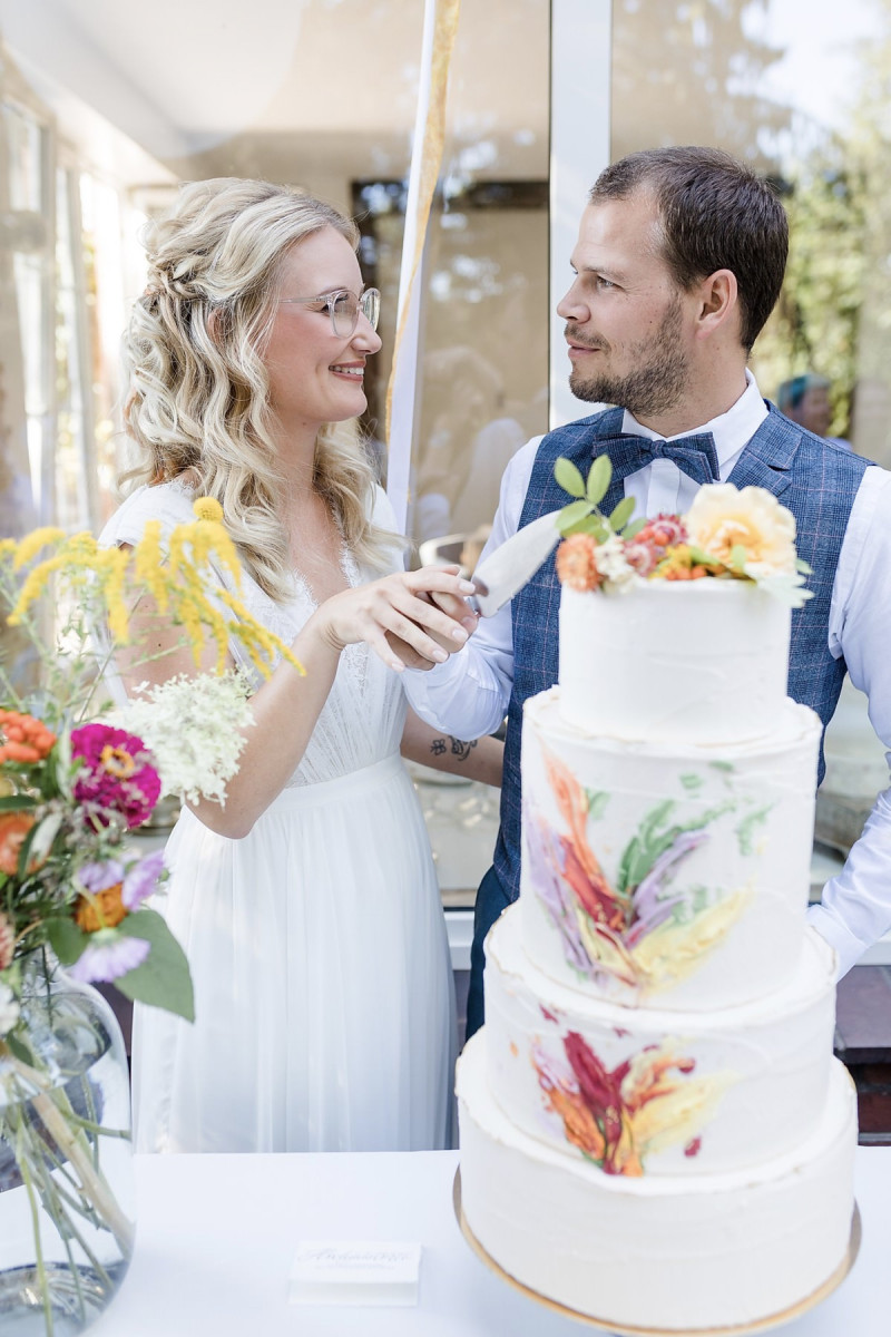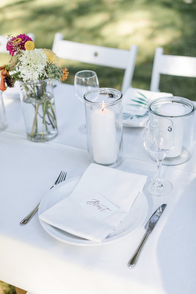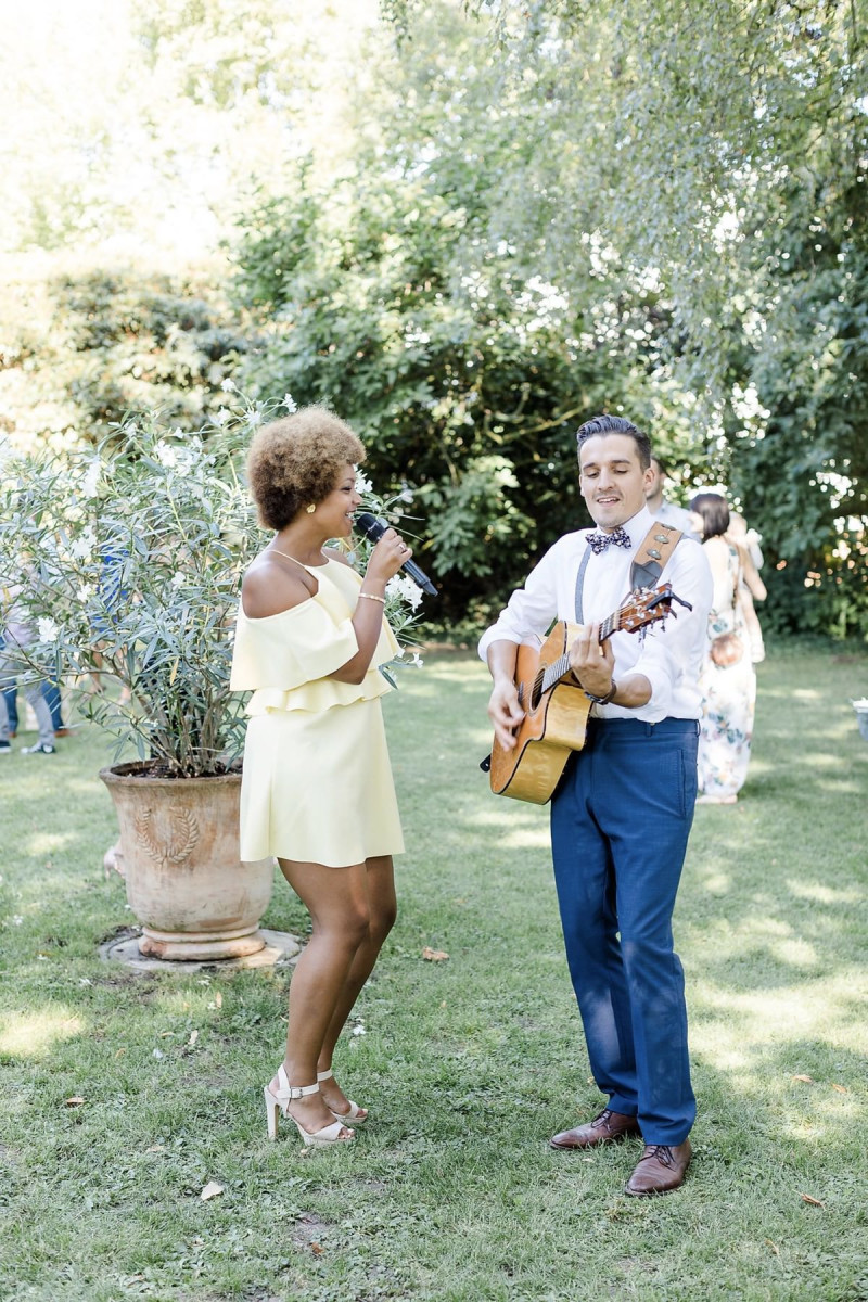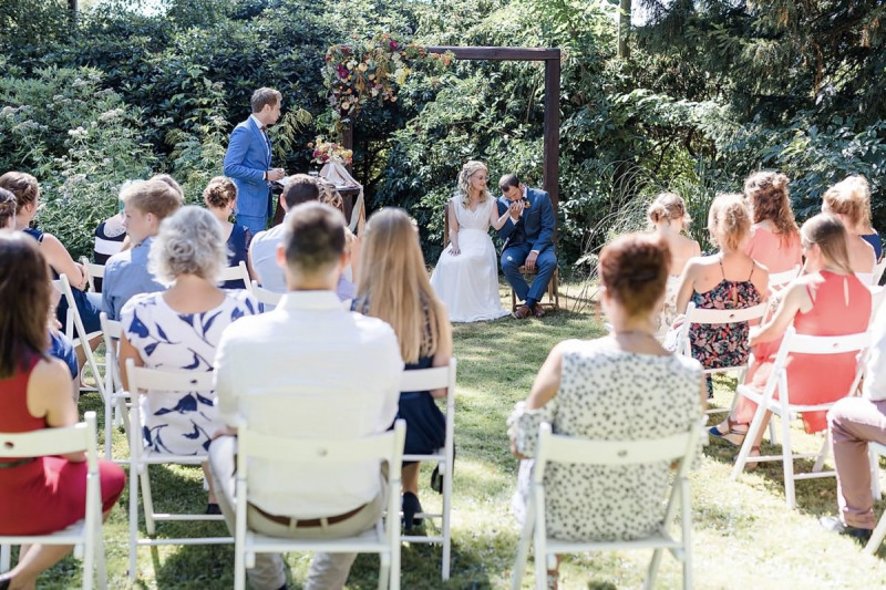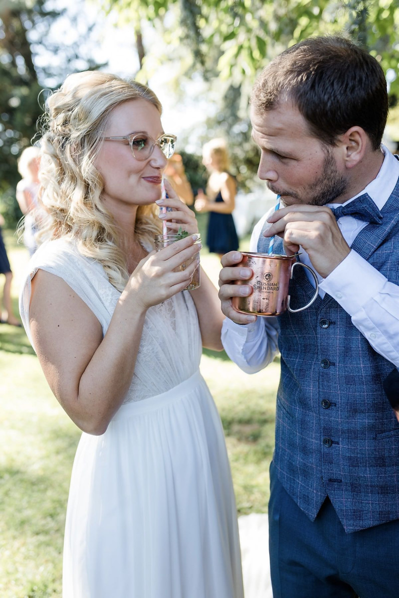 Aber nochmal von Anfang an. Nach dem getrennten Getting Ready trafen sich Adele & Joshua beim First Look nur zu zweit. Adele verzauberte ihren Bräutigam in einem Brautkleid von Brautraum und mit einem sommerlich zarten Hair & Makeup von Denise Langner. Joshua wartete ungeduldig aber stilsicher in einem Anzug von Maßschneiderei Wertmerauf seine Adele. Nach diesem besonderen Moment, der nur den beiden gehörte, ging es für sie zu einem kleinen Brautpaarshooting. Nun waren sie bereit für ihre freie Trauung. Gemeinsam liefen sie, begleitet vom Gesangsduo Soulmates, zwischen ihren Gästen hindurch nach vorn. Die freie Trauung wurde von Trauredner Julian Hügelmeyer gehalten, die durch das Ja-Wort und den Ringtausch, mit Ringen von Marrying, gekrönt wurde.Gemeinsam mit all ihren Gästen ging es für die Frischvermählten zur großen Gartenparty. Dort wartete eine lange Tafel, eine romantische Schaukel, eine umwerfende Hochzeitstorte von TortenMacher, eine Kaffeebar von Caffe Piccolo, eine Cocktailbar von Flaschenkind und eine Sektbar mit Fürst von Metternich. Und es geht weiter! Das Cateringvon Roll to Cook sorgte sicher für begeisterte Hochzeitsgäste, die dank der coolen Gartenspiele von Oui Chérie sicher nicht merkten, wenn sich das Brautpaar davonstahlen. Ich glaube, mehr Inspiration geht nicht! Ich wünsche euch ganz viel Freude mit diesem einmaligen Styled Shoot einer Gartenhochzeit!
