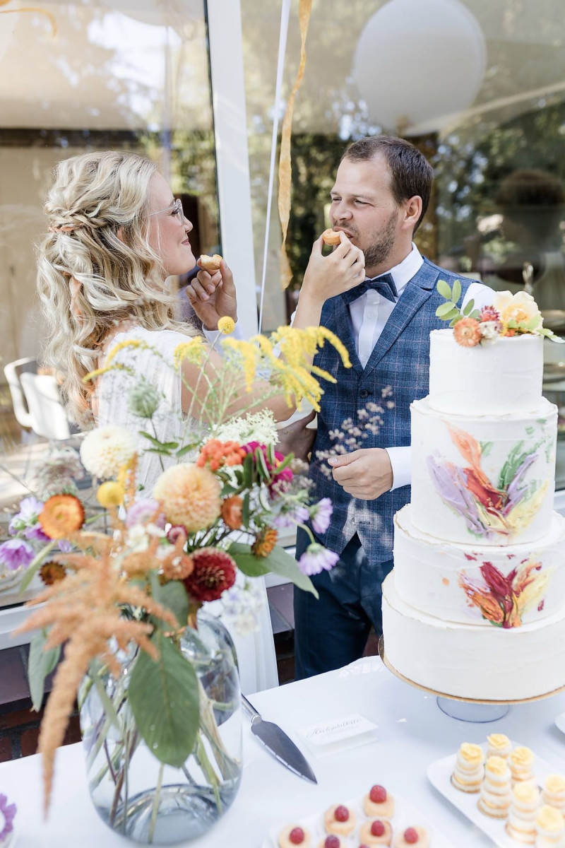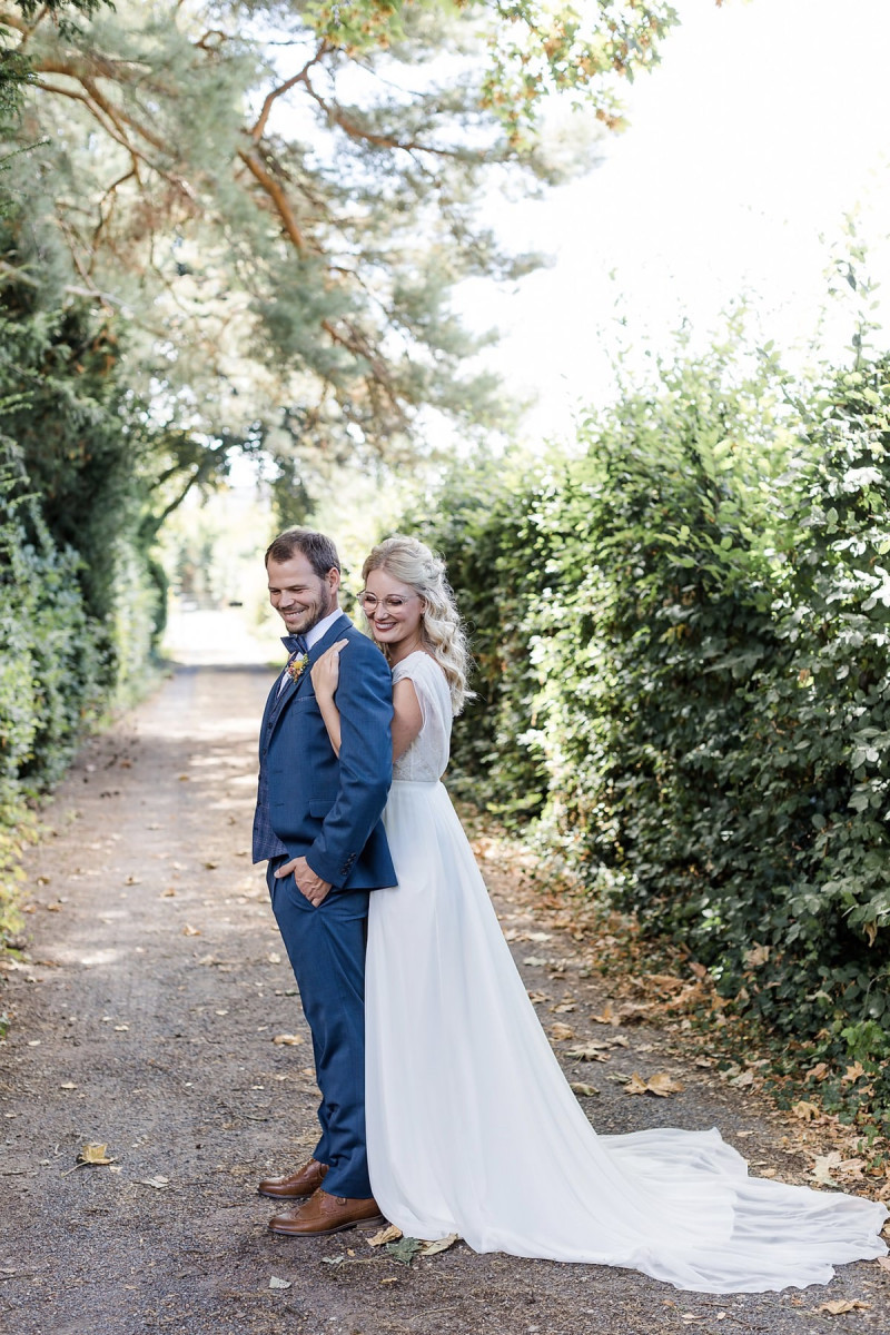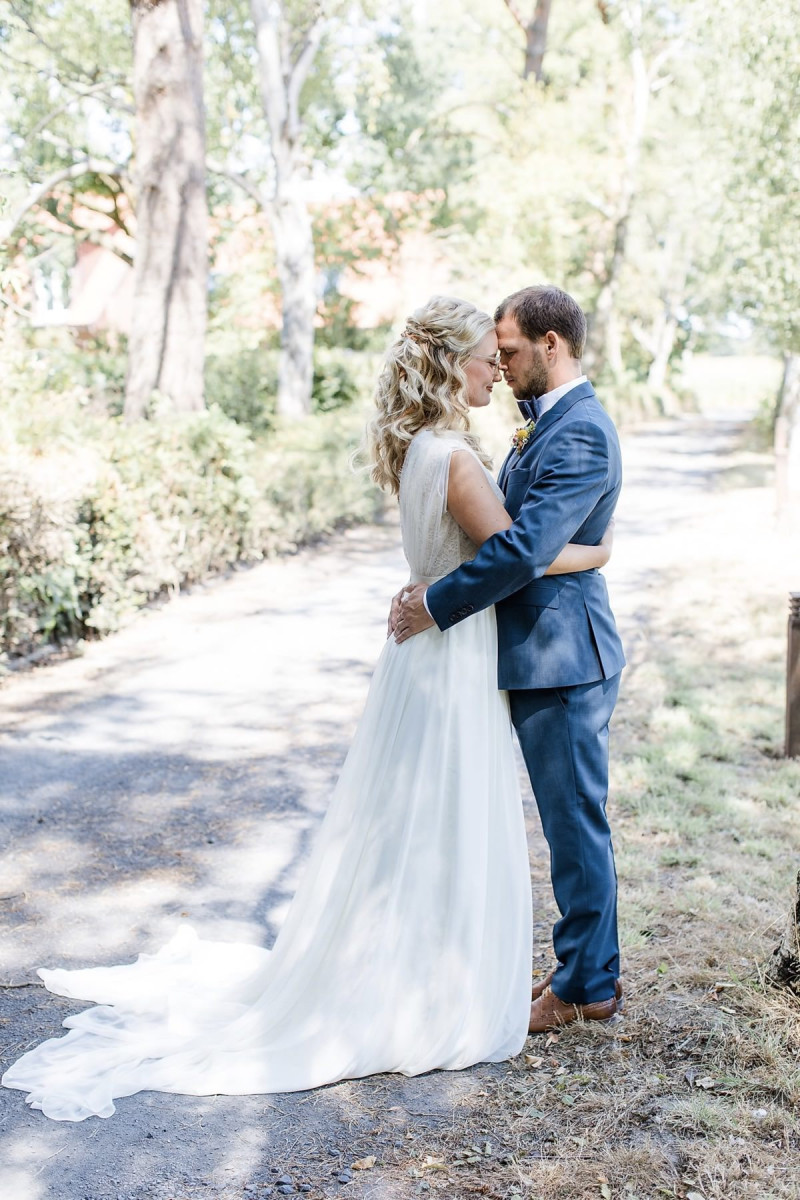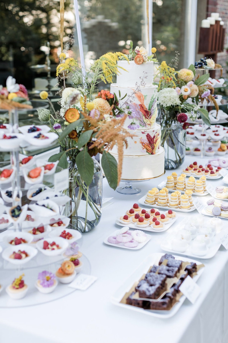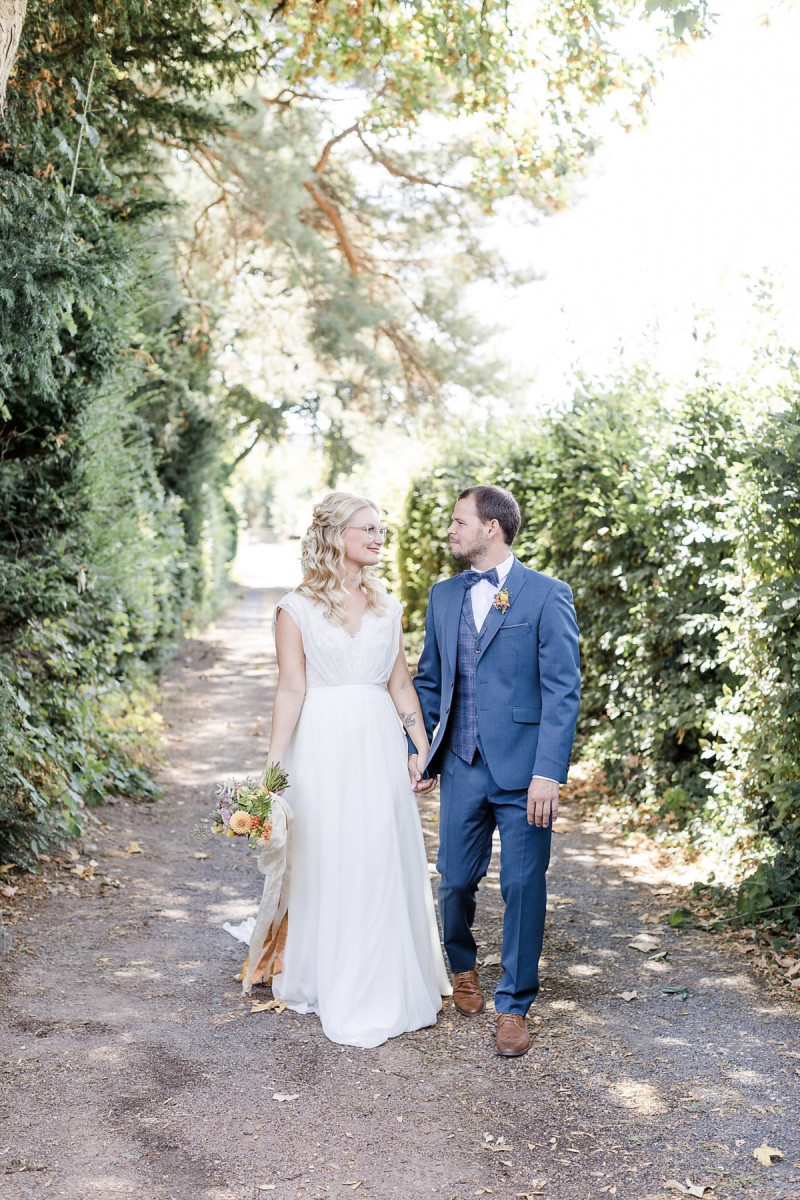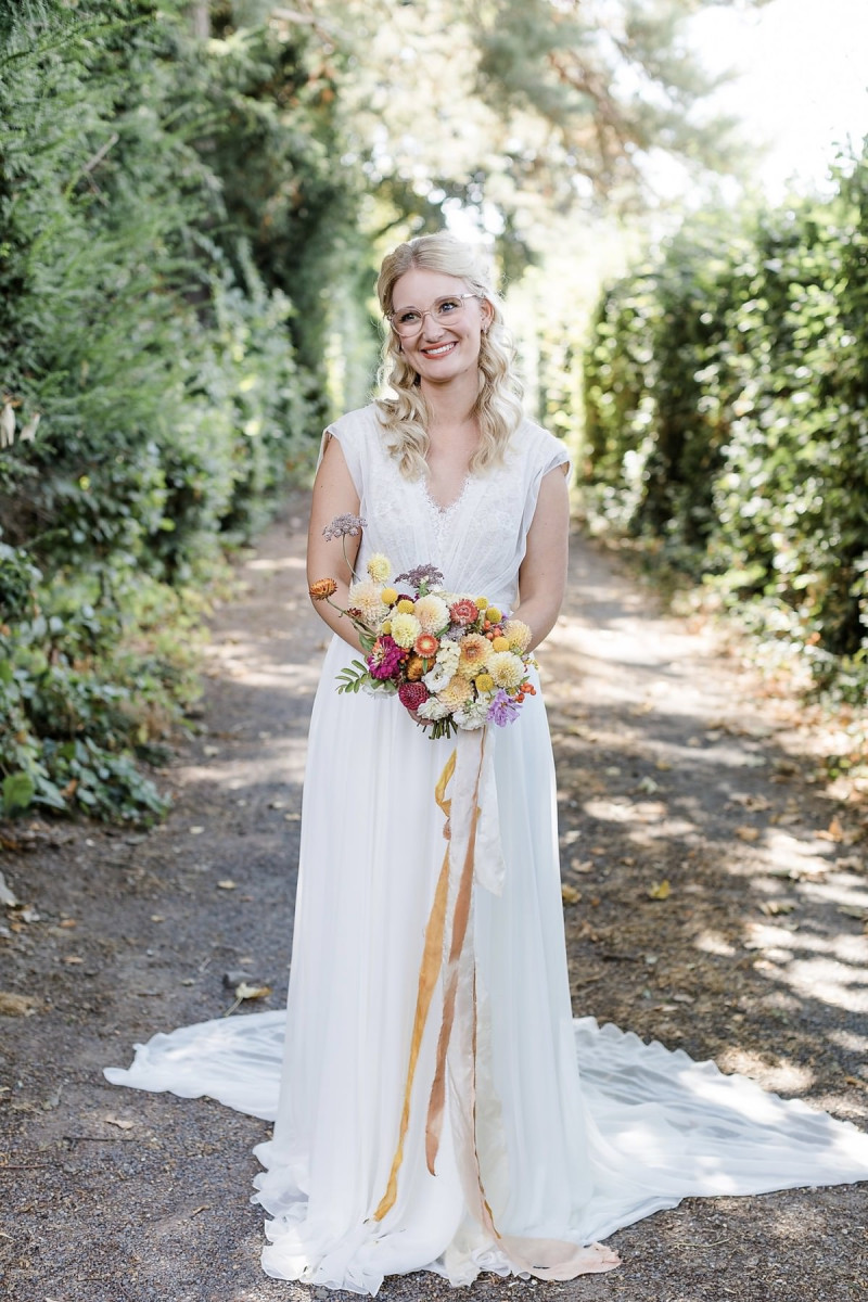 Aber nochmal von Anfang an. Nach dem getrennten Getting Ready trafen sich Adele & Joshua beim First Look nur zu zweit. Adele verzauberte ihren Bräutigam in einem Brautkleid von Brautraum und mit einem sommerlich zarten Hair & Makeup von Denise Langner. Joshua wartete ungeduldig aber stilsicher in einem Anzug von Maßschneiderei Wertmerauf seine Adele. Nach diesem besonderen Moment, der nur den beiden gehörte, ging es für sie zu einem kleinen Brautpaarshooting. Nun waren sie bereit für ihre freie Trauung. Gemeinsam liefen sie, begleitet vom Gesangsduo Soulmates, zwischen ihren Gästen hindurch nach vorn. Die freie Trauung wurde von Trauredner Julian Hügelmeyer gehalten, die durch das Ja-Wort und den Ringtausch, mit Ringen von Marrying, gekrönt wurde.Gemeinsam mit all ihren Gästen ging es für die Frischvermählten zur großen Gartenparty. Dort wartete eine lange Tafel, eine romantische Schaukel, eine umwerfende Hochzeitstorte von TortenMacher, eine Kaffeebar von Caffe Piccolo, eine Cocktailbar von Flaschenkind und eine Sektbar mit Fürst von Metternich. Und es geht weiter! Das Cateringvon Roll to Cook sorgte sicher für begeisterte Hochzeitsgäste, die dank der coolen Gartenspiele von Oui Chérie sicher nicht merkten, wenn sich das Brautpaar davonstahlen. Ich glaube, mehr Inspiration geht nicht! Ich wünsche euch ganz viel Freude mit diesem einmaligen Styled Shoot einer Gartenhochzeit!