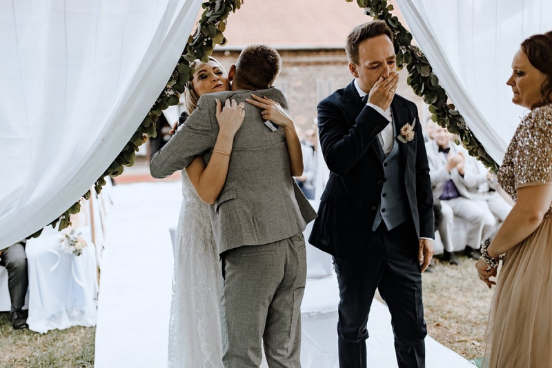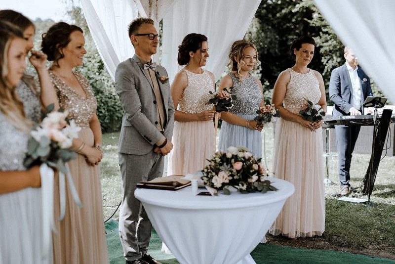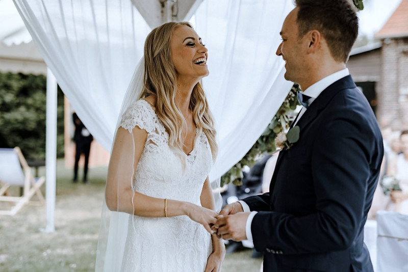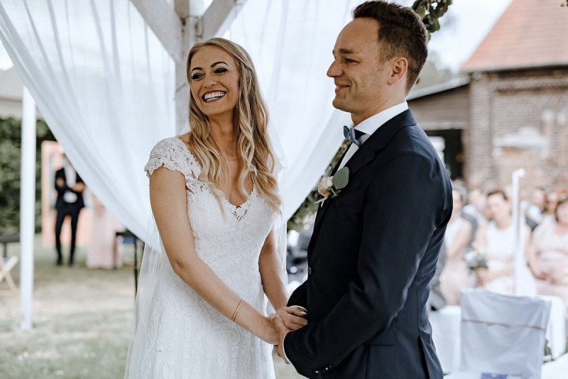 Am 26. Mai diesen Jahres gaben sich Nadine & Marco bei einer romantischen freien Trauung unter freiem Himmel das Ja-Wort! Im 12 Apostel in Essen fand diese wunderschöne Hochzeit statt. Mit dabei all ihre Liebsten und ganz viele Freudentränen! Die Geschwister der beiden zauberten ihnen eine Trauzeremonie, die so richtig ins Herz traf! Dank der musikalischen und gesanglichen Unterstützung der Band Foss Doll blieb wirklich kein Auge trocken! Beloved Photography hat diesen ganz besonderen Tag der beiden so wundervoll festgehalten! Vom Getting Ready samt emotionaler Liebesbriefe, bis hin zur großen Party, bei der das Brautpaar die Tanzfläche zum Beben gebracht hat! Das wunderschöne Brautkleid der hübschen Nadine ist von Cinderella Brautmoden und ihr atemberaubender Brautstrauß, so wie die gesamte Floristik, von Runo Blumen. Das Hair & Makeup zauberte die Braut selbst. Die Hochzeitstorte & die Sweets mit wundervollen goldenen Akzenten kreierte Christina Franke. Und jetzt wünsche ich euch ganz viel Freude mit dieser grandiosen Hochzeitsinspiration! Ich würde euch gerne meine Highlights mitteilen, doch bin ich schlicht weg sprachlos und unendlich verliebt!