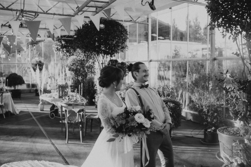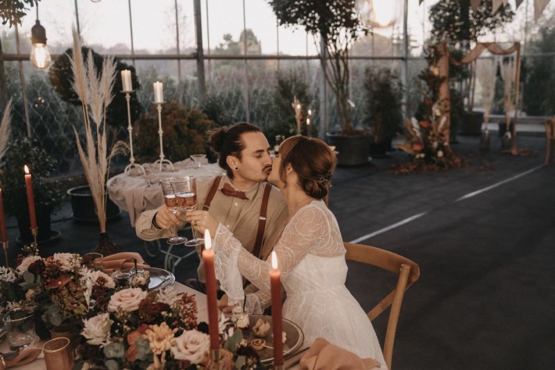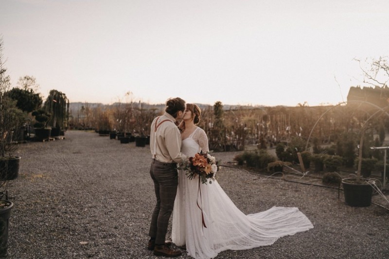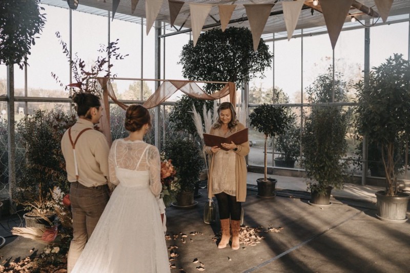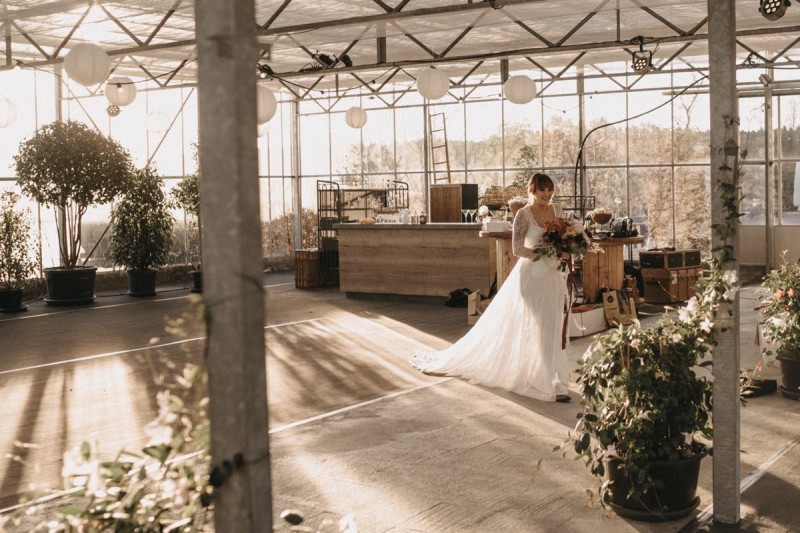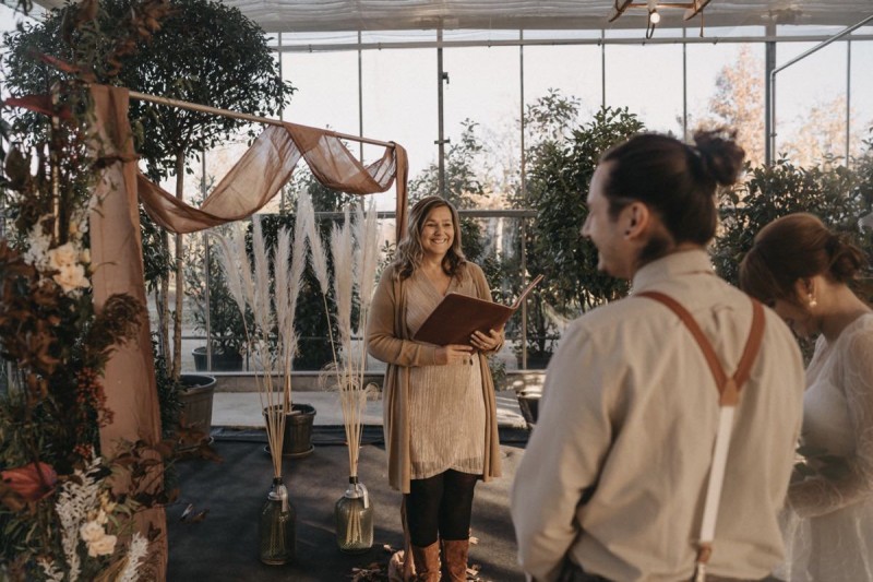 Die heutige Hochzeitsinspiration entführt uns in eine sehr besondere Hochzeitslocation. Im gläsernen Gewächshaus der Baumschule Wüthrich Pflanzen erwartet uns, bei tiefstehenden Sonnenschein, unter naturfarbenen Wimpeln und zwischen Bäumen, Büschen und Gräsern ,eine romantische freie Trauung im Bohostil.