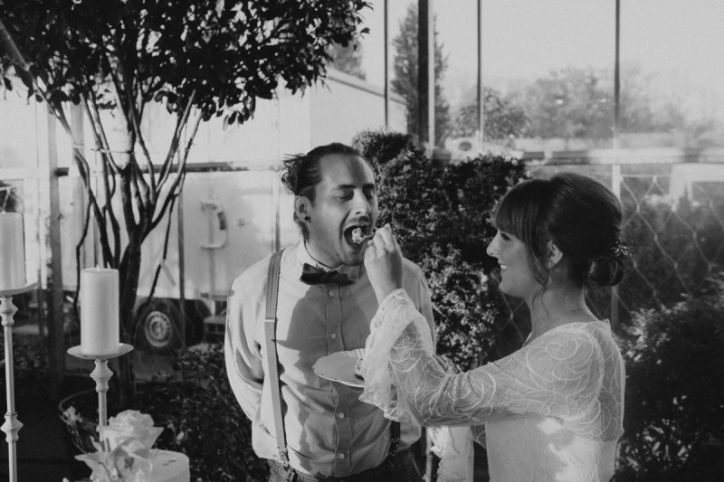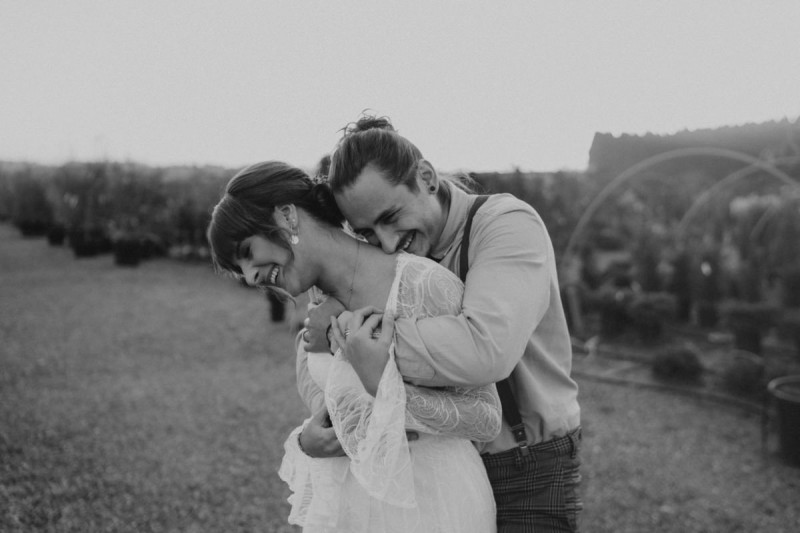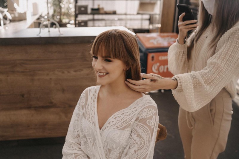 Während Simon in einem cool-entspannten Look in Beige & Braun, sowie Fliege und Hosenträgern von Adam Bows, gemeinsam mit Traurednerin Birgit Schönenberger, vor dem schönen Traubogen wartete, erhielt die hübsche Braut beim Getting Ready noch den letzten Schliff. Sie stieg aus ihrem wunderschönen Kimono im Bohostil, mit ihrem leichten Makeup und ihrem feinen Updo – beides kreiert von Hair & Makeup Artist Thanh Thanh Neziri – in ihr bezauberndes Brautkleid von Laura Dometzky. Mit elegantem Schmuck von Bling Jewelry, in ihren glitzernden Brautschuhen und mit ihrem opulenten Brautstrauß in den Händen, schritt sie zu ihrem Bräutigam. Mit der wärmenden Sonne im Rücken genossen sie die romantische freie Trauung mit Birgit Schönenberger, bei der sowohl gelacht als auch vor Freude geweint wurde.