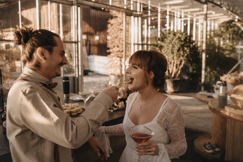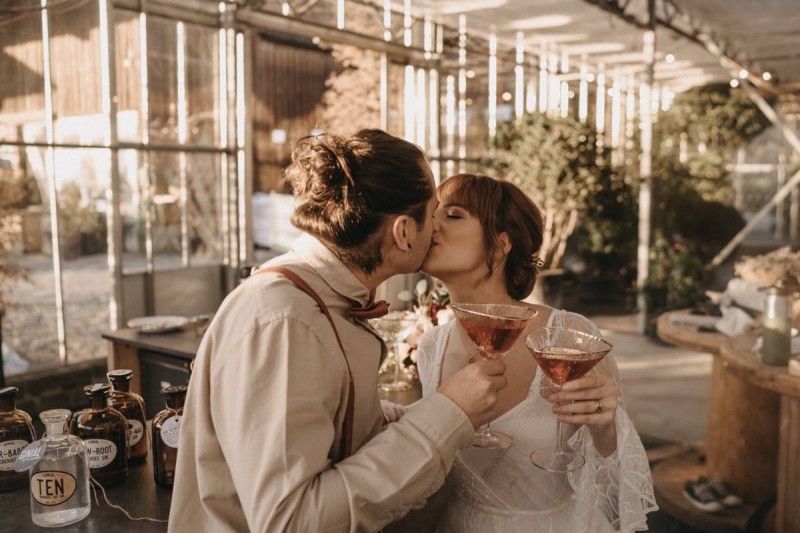 Angestoßen wurde auf das Ja-Wort mit einem leckeren Gin in wunderschönen Gläsern und mit Torte & Sweets! Anne & Jessy von Babobaker kreierten den beiden köstliche Sweets und eine wirklich wunderschöne Hochzeitstorte in Cremeweiß und Gold, sowie einem aufregenden Blumendekor. Bei romantischem Kerzenschein, den schönen Funken der Wunderkerzen von Pyrostar und herzhaften Köstlichkeiten vom Cateringservice fishgroup, genossen sie den Abend dieses sehr besonderen Tages. Und wir dürfen ihnen dabei nun exklusiv über die Schulter schauen! Ganz viel Freude euch mit dieser wundervollen Inspiration im Bohostil in dieser sehr besonderen Hochzeitslocation!