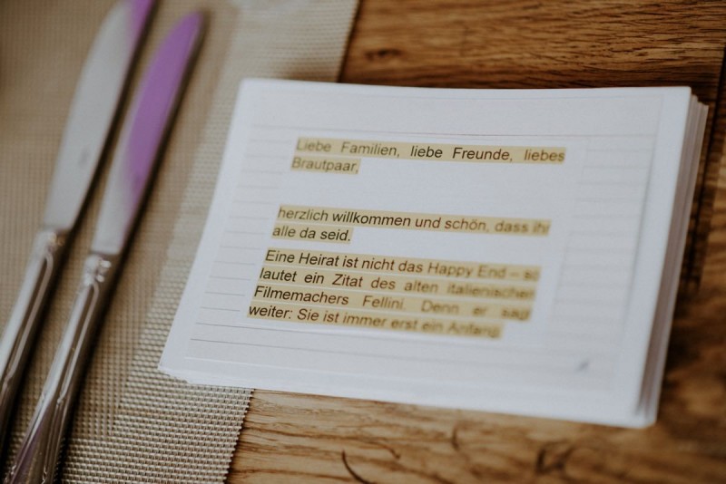 Unsere Paare berichten uns immer wieder, dass sie die Vorbereitung bei einer Trauung mit Freunden als schöne Zeit empfinden, in der man sich trifft, Ideen sammelt und gemeinsam plant – etwa den Zeremonie-Ablauf, die Songauswahl und Vieles mehr. Das Highlight stellt dabei das emotionale Traugespräch dar: Eure Freunde führen ein kleines Interview mit euch durch, in dem sie euch Fragen stellen. Eure Antworten und ihre eigenen Erinnerungen an euch dienen später als Basis für die Rede. Diese Gespräche sind besonders emotional und führen meist zu einem richtigen Hochgefühl während der Hochzeitsvorbereitungen. Sie führen ganz deutlich vor Augen, warum ihr euch für diesen einen Menschen an eurer Seite und diese Freunde entschieden habt, die mit euch als Paar durchs Leben gehen.