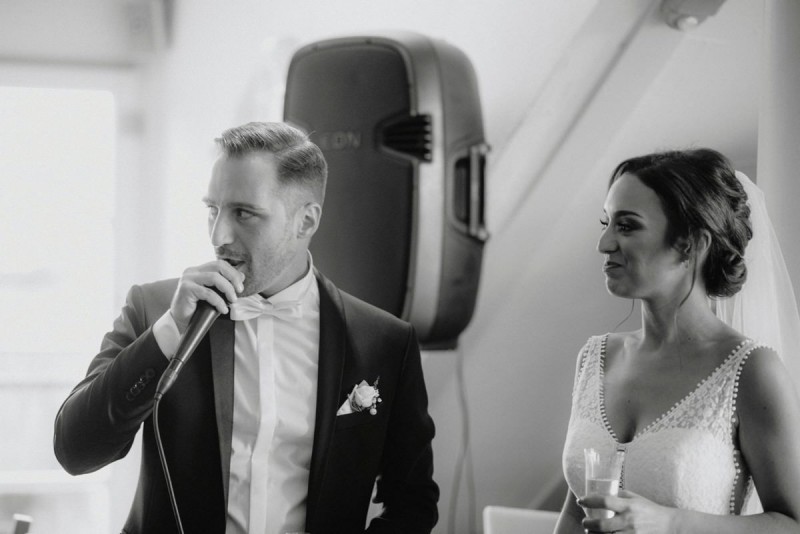 Stefan: „Die Idee hatte ich 2018. Meine Freunde Florian und Svenja hatten mich gefragt, ob ich ihr Trauzeuge sein möchte und ob ich sie im Rahmen einer freien Trauung sogar tauen würde. Die beiden sagten mir, dass sie es schön fänden, meine Sichtweise auf sie als Paar in einer Rede zu „erleben“. Sie fanden die Vorstellung einfach schöner, als einem fremden Redner vorher etwas über sich zu erzählen, das er oder sie dann einfach wiedergibt. Ich konnte das total gut nachvollziehen und hatte auch Ideen, was ich erzählen könnte, aber ich war natürlich auch überrumpelt, weil ich zu dem Zeitpunkt selbst NOCH NIE auf einer freien Trauung war. Ich hatte gar keinen Plan, wie so etwas abläuft, welche Formalitäten und welchen Ablauf man einhalten sollte. Ich habe den beiden zugesagt, musste mich aber erst einmal ein bisschen in die Thematik einarbeiten. Das habe ich zusammen mit einer Freundin gemacht, die als freie Rednerin arbeitete. Ich hatte Glück, dass ich so jemanden an meiner Seite hatte. Sie hat mir alles erklärt und ich habe schnell gemerkt: Es gibt gar kein Richtig oder Falsch! Svenja und Florian haben mir ganz klar signalisiert, dass sie mich einem anderen Redner vorziehen und dass sie Vertrauen in mich haben. Und am Ende habe ich mich tatsächlich sicher gefühlt und hatte dieses Vertrauen in mich auch selbst!