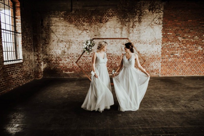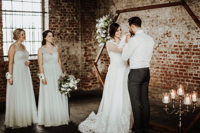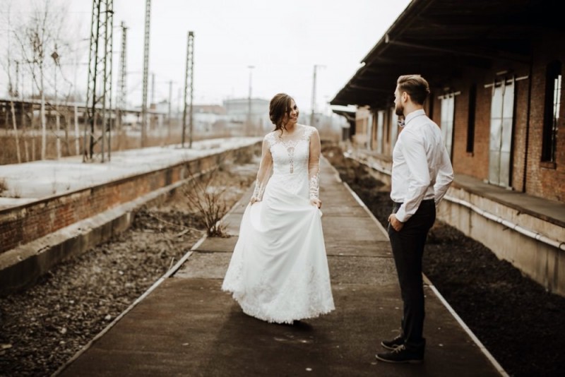 Dieses Industrial Spring Shooting wurde von Sarah Michallek & Svenja Schürheck festgehalten. Eine grandiose Szenerie, die durch zwei Linsen zu sehen, durch zwei verschiedene Stile geprägt ist. Und obwohl sich an der Szenerie nichts änderte, zeigen die Bilder, wie unterschiedlich sie festgehalten werden kann. Für diese besondere Inspiration, diesen einmaligen Blick, sind neben den beiden talentierten Fotografinnen, ganz wundervolle Menschen verantwortlich: Die Planung hat die liebe Paula Thiessen von Weddings and Design übernommen. Die Idee dazu, die Wahnsinns Blumen & die wunderschöne Dekoration ist von Melanie Halle Eventdesign. Umgesetzt wurde das ganze im Güterbahnhof in Herford. Dank des Hair & Makeup von Nelly Olfert, strahlten die hübsche Braut und ihre Bridesmaids in Kleidern von BeccaLoreen Beauty & Bride. Der zarte Schmuck ist von Refinded Bohemia. Abgerundet wurde dieses Shooting durch die Papeterie von Larissa Banmann, den Seidenbändern von Silk & Linenund den schicken Herrenaccesoires von Die Fliegenmacher. Und für den Sweet Table Traum, in Form von inspirierenden Tortenkreationen und Sweets, sorgte die liebe Alisa Firus von Zeit für Süßes. Ganz viel Freude euch!