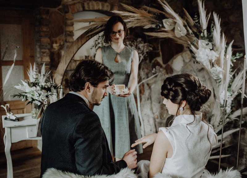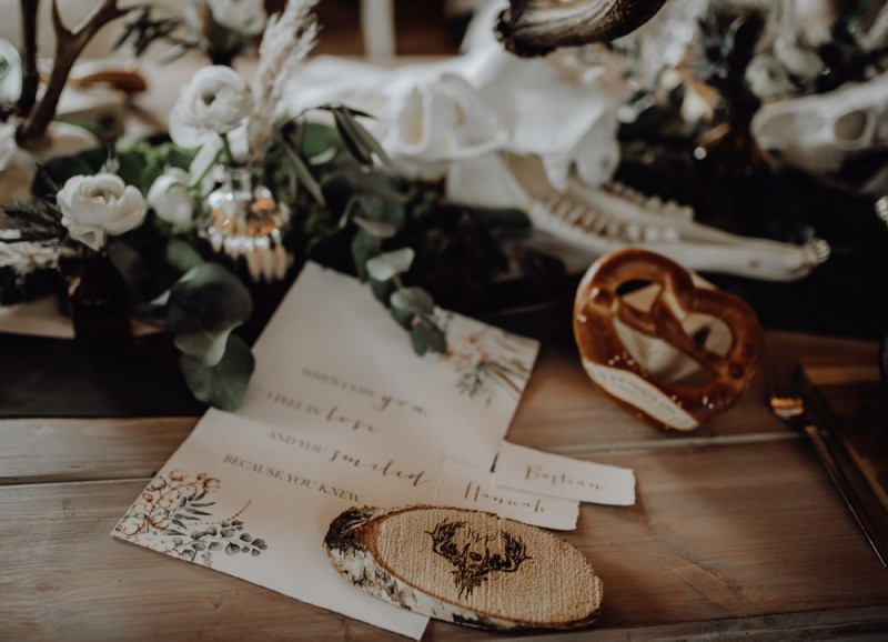Modern interpretiert. Ein Satz, der auf alte Schätze und liebgewonnene Traditionen hinweist, die in einem neuen Gewand erneut erstrahlen. Es gibt längst kein schwarz-weiß Denken mehr. Stile werden gekonnt kombiniert, gebrochen und die Grenzen verschwimmen immer mehr. Längst sind Hochzeiten, und die für sie kreierten Inspirationen, nicht mehr auf einen Blick zu kategorisieren. Und genau das macht es so wertvoll und kreativ. Bei dieser wunderschönen Inspiration hier, einer moderninterpretierten Trachtenhochzeit, ist genau das der Fall. Mit dem Gedanken an eine traditionelle Trachtenhochzeit und unendlich viel Kreativität und Fingerspitzengefühl, ist eine Inspiration entstanden, die sowohl zarte Boho- als auch Vintagezüge aufweist. Kombiniert zu bayerischen Urgesteinen und neuauflebenden Traditionen. Kreiert und Organisiert wurde diese Hochzeitsinspiration von Traurednerin Iris von VerTraute Worte und Hochzeitsplanerin Beata von 4 Your Wedding. Und natürlich haben die beiden es sich neben der Konzeptionalisierung & Organisation nicht nehmen lassen, ihre Leidenschaften miteinzubringen. Dazu gleich noch mehr. Fotografiert hat diese Inspiration, im rustikalen Weingut Weidenmühle, Hochzeitsfotografin Julia Balthasar. Videografisch unterstützt wurde sie von Die Filmemacher Henkel, weshalb euch unter den Bildern auch noch ein Video zu dieser Inspiration erwartet. Durch dieses führt euch die Stimme von Iris (VerTraute Worte), die für das süße Brautpaar dieses Shootings, Karo & Alex, eine romantische freie Trauung gehalten hat. In dieser gab es, neben dem traditionellen Ringtausch, mit Ringen von Verspoor Trauringe, ein besonderes Trauritual. Das gemeinsame Formen einer Brezel. Was es damit genau auf sich hat verrate ich an dieser Stelle aber noch nicht. Schaut euch gerne das Video unten im Artikel an.