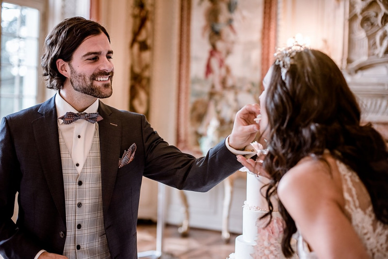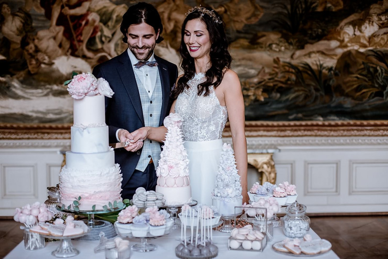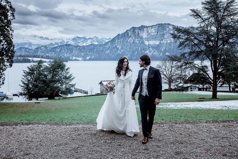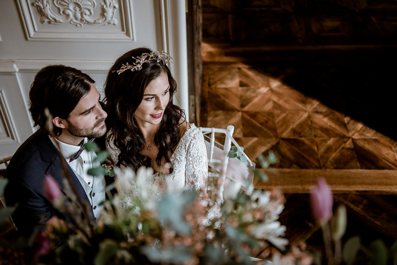 Bei dieser Inspiration einer pompösen Schlosshochzeit in der wunderschönen Schweizer Villa St. Charles Hall dürft ihr euch auf ganz viele tolle Highlights freuen! Dieses Styled Shoot lädt zum Träumen ein in einer Umgebung voller romantischer Elemente des Barock. Hochzeitsfotograf Cyrill Lipp begleitete dieses Shooting und hielt all die feinen Details und Inspirationen fotografisch für uns fest. Videografisch unterstützt wurde er von Capture The Moments. Organisiert wurde das Styled Shoot von fairydress, die auch die grandiosen Brautkleider für die hübsche Braut Roxy stellte. Bräutigam Luca & sie durften für diese Inspiration einen einmaligen Tag erleben. Kaum zu übersehen: Sie kann in ihrem Brautkleid aus grober Spitze, langen Ärmeln und opulenter Schleppe kaum ihr strahlen verbergen. Und auch ihr Kleid für die Hochzeitsfeier schmeichelt ihr. Viktoria Georgina stylte die liebe Roxy, während Concrete Jungle den außergewöhnlichen Schmuck aus Beton kreierte. Das gläserne Headpiece stellte Beretkah. Luca trägt ein Outfit, das viele besondere Details aufweist. Passend zum Betonschmuck von Roxy, trägt er Manschettenknöpfe im gleichen Design von Concrete Jungle. Sein Anzug von nisago hält sowohl am Ärmel als auch am äußeren Kragen gestickte Liebesbotschaften bereit. Die einmalige Kulisse, die Villa St. Charles Hall, brachte die Dekoration von Luxus Dekound die Floristik von Fiori di Aurelia zum strahlen. Auch den wunderschönen Brautstrauß kreierte Fiori di Aurelia. Durch die zarten Handletterings, gibt Blattpapier Studio noch mehr Eleganz hinzu.