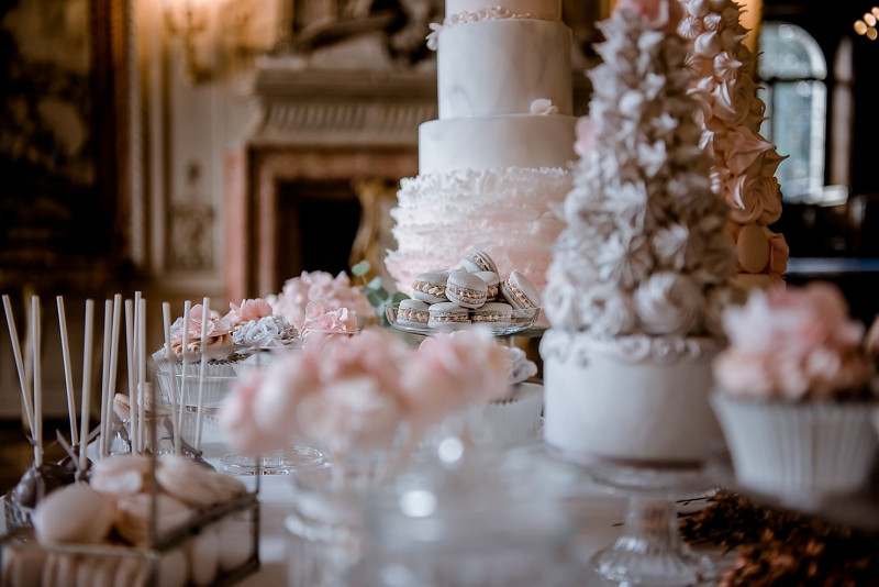 Ein Highlight von so vielen ist sicher die freie Trauung auf den wunderschönen Treppen der Villa. Sie wurde gehalten von MissionLove. Den besonderen Funfaktor bot The Photobus, der draußen vor der Villa für die Gäste und das Brautpaar bereitstand. Und um mich zum gefühlt hundertsten Mal zu outen: Mein persönliches Highlight ist der Sweet Table in Rosa- und Grautönen von Mimi’s Cupcakes. Bestehend aus drei besonderen Hochzeitstorten, unzähligen Cupakes, Macarons, Cakepops und Cookies, werden Träume wahr! Ganz viel Freude mit dieser tollen Hochzeitsinspiration!