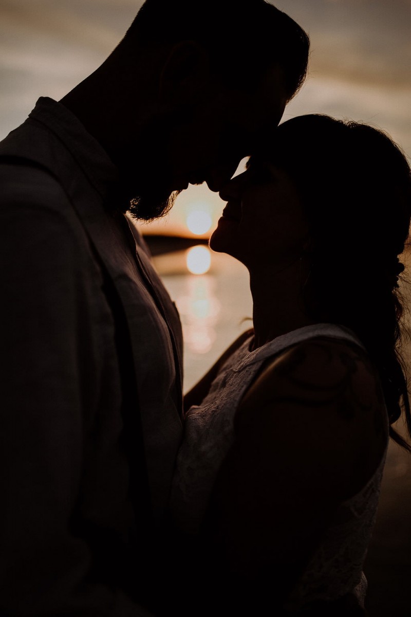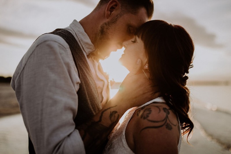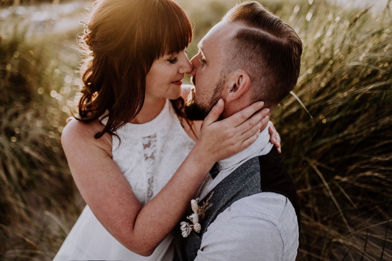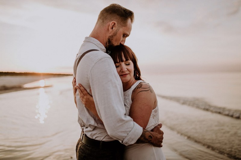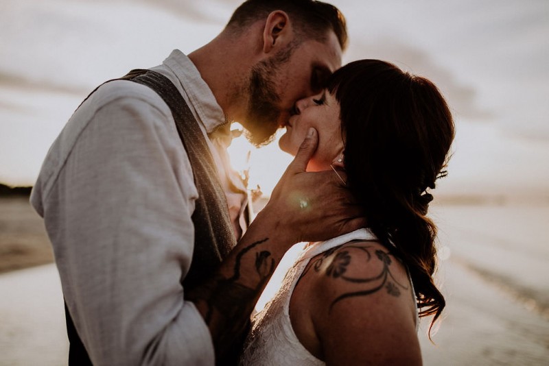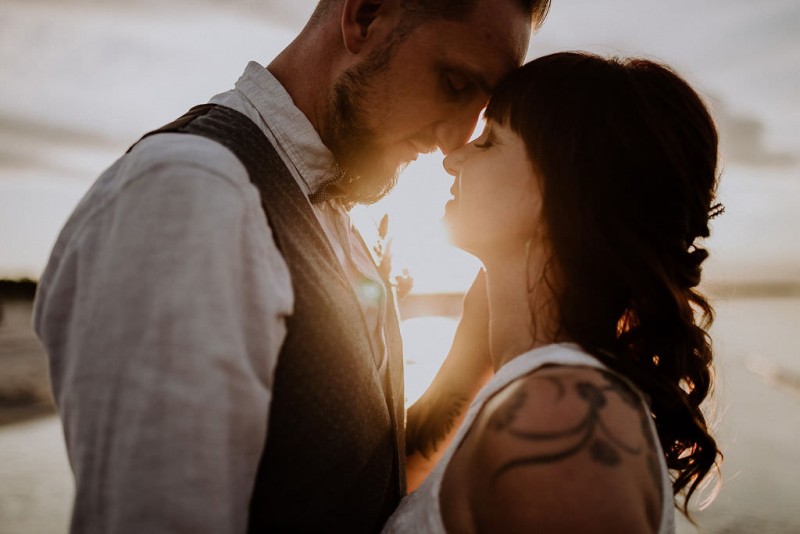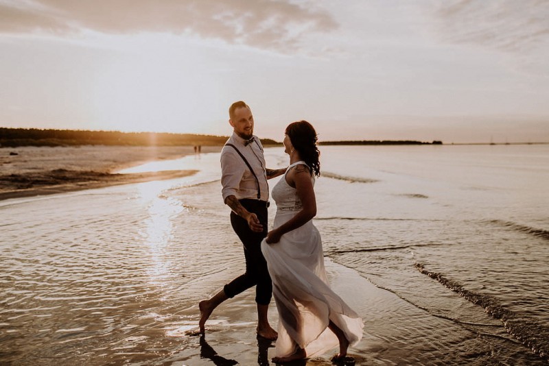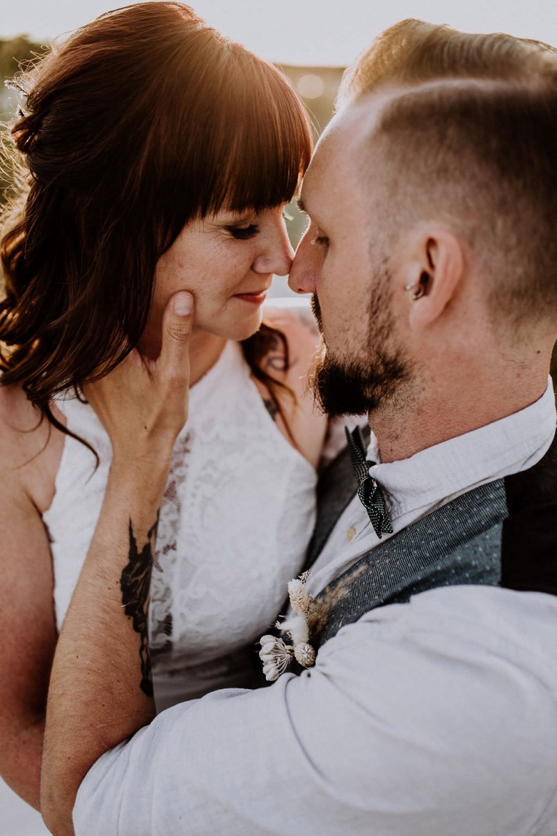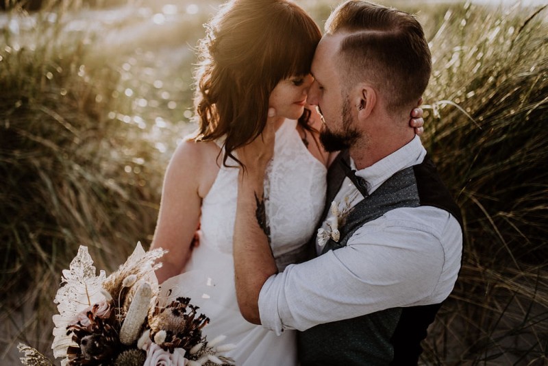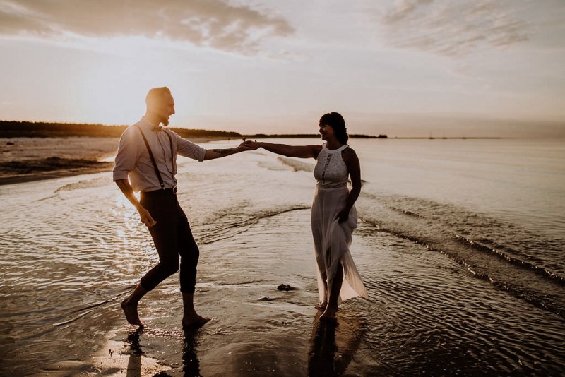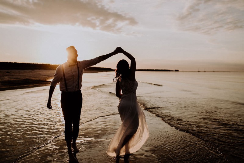 Und wieder geht es für uns Glückliche an den Strand. Für diese schöne Hochzeitsinspiration eines bohoinspirierten Elopements geht es an den Dünenstrand unserer Ostsee. Regenbogen Prerow ist eine Ferienanlage, die die liebe Hochzeitsplanerin Lisa von Time for Wedding für diese wundervolle Inspiration wählte. Lisa hat auch das Konzept dieser Inspiration entwickelt, geplant und umgesetzt, weshalb wir uns in all den schönen Strand- und Bohovibes suhlen dürfen. Während Hochzeitsfotografin Shelly von wild lights photography alles fotografisch für uns festgehalten hat, hat Hochzeitsvideograf Stephan von Spotlightcut ein Video für uns von diesem Tag gemacht. Dieses findet ihr ebenfalls in diesem Artikel, unter den wunderschönen Bildern. Doch kommen wir zur Inspiration selbst. Zwischen den, vom Wind bewegten, Sanddünen erwartet euch ein bezauberndes Table Setting im Stil eines romantischen Strandpicknicks. Kuschelige Kissen laden an die lange Tafel, die mit vielen Blumenarrangements aus naturbelassenen Trockenblumen und Rosen in zartem Rosé, dekoriert wurde. Große und kleine Keramikvasen, gemasertes Geschirr sowie kleine Teelichter geben der Tafel den wundervollen Bohovibe und einen leicht rauen Touch. Die feine Hochzeitspapeterie von Papeterie Berlin, platziert auf den Tellern neben den Leinenservietten, sorgt mit muschelinspirierten “Namensschildern“ und blauen Details für den harmonischen Feinschliff. Neben der Dekoration und Floristik dieses tollen Settings am Strand, kreierte Madelaine Eventfloristik auch noch eine Traulocation mit einem großen, blumenverzierten Traubogen. Auch für eine freie Trauung ein absoluter Hingucker, vor allem hier mit dem weitläufigen Blick aufs Meer! Sandra & Sven, das süße Brautpaar dieser Inspiration, durfte hier ihr intimes Elopement feiern. Gemeinsam mit ihrem süßen Vierbeiner genossen sie diese einmalige und romantische Zeit an diesem paradiesischen und liebevoll kreierten Bohostrand. Neben dem wundervoll natürlichen und dennoch eleganten Styling von Carolin Frixel und einem leichten Brautkleid für den Tanz durch den Sandstrand, könnt ihr bei Sandra gleich zwei bohoinspirierte Brautsträuße entdecken. Einen entwarf Madelaine Eventfloristik passend zum gesamten Setting, während sie den anderen etwas leichter, zarter und heller gestaltete. Als süßes Highlight erwartete die beiden noch eine wirklich bezaubernde Hochzeitstorte vom Tortenatelier Süße Flora. Franziska zauberte einen grandiosen Mix aus wilden Trockenblumen und der Schönheit des Meeres durch perfekt abgestimmte Blautöne. Eine wunderbar authentische und liebevolle Inspiration, die uns das Paradies direkt an den heimischen Strand bringt. Ganz viel Freude euch beim Hinwegträumen und Staunen!