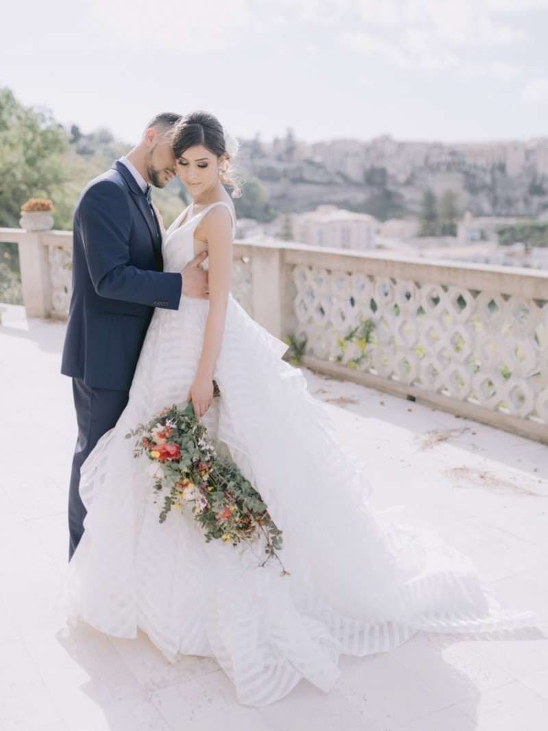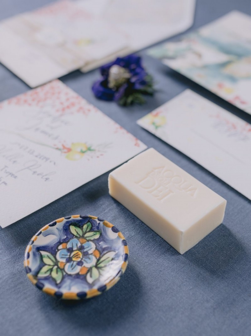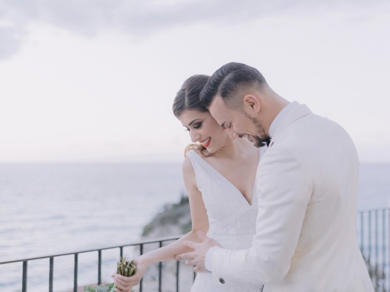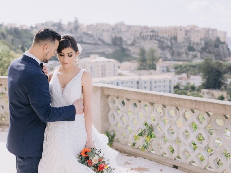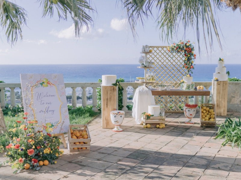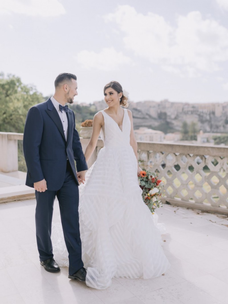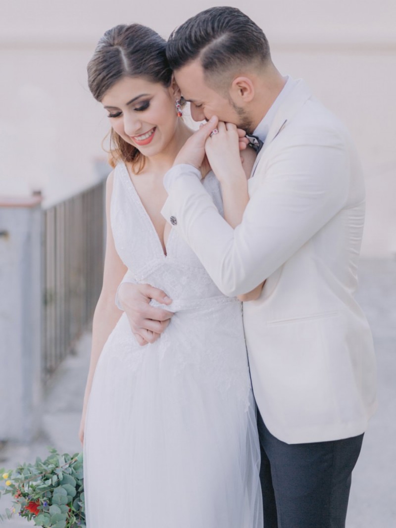 Ich darf euch heute an einen warmen, sonnenverwöhnten Ort entführen: Kalabrien. In dieser Inspiration einer Hochzeit in Italien, ist alles von dieser italienischen Region inspiriert. Bekannt für seine schroffen Berge, traditionellen Dörfer und abwechslungsreichen Küste, findet sich in dieser malerischen Kulisse eine moderne Interpretation dieser traditionsreichen Halbinsel. Elegant und luxuriös sollte es werden und den Charm einer typisch italienischen Hochzeit versprühen. Hochzeitsplanerin Rossella Arlia, unterstützt von Anastasia Event Designer, zeigt mit diesem Konzept ihrer geliebten Heimat eine Atmosphäre voller Leichtigkeit und Geselligkeit, die jeden sofort umschließt und in den Bann zieht. In der Villa Paola*, einer typisch italienischen Villa auf einem Hügel, mit Blick auf das Tyrrhenische Meer, erwartet uns diese einmalige Szenerie, die Karma Photo für uns fotografisch festgehalten hat. Schon die Hochzeitspapeterie, insziniert mit zartem Parfum und Seife von Acqua degli Dei, dieser Inspiration, kreiert von PoligoniLab, lässt erahnen mit wie viel Liebe zum Detail und zur Tradition diese Szenerie gefertigt wurde. Sowohl die Landschaft, als auch die, für diese südliche Region Italiens typischen, Geschmäcker und Gerüche wie Bergamotte, Zitrusfrüchte und Chilischoten, finden sich hier. In der Villa selbst empfängt uns auf der großen Terrasse mit traumhaftem Meer- und Bergblick, ein natürlich sowie antik gehaltenes Setting, dessen opulente Floristik wirkt, als hätte man eine ganze Wiese voller Wildblumen verwendet. Ranunkeln, Anemonen, Gerbera, englische Rosen, Nelken, Ruscus und Eukalyptus schlängeln sich sowohl über den Tisch, als auch die zauberhafte Holzkonstruktion. Diese Floristik, sowie auch die später folgenden Brautsträuße, wurde kreiert von Le Jardin, die so der Gesellschaft einen Abend unter einem Sternen- und Blumenhimmel schenkten. Natürlich sorgt auch das Table Setting selbst für schwärmende Gäste. Hier finden sich all die Farben und Symbole, die schon die Hochzeitspapeterie so liebevoll inszenierte. Ein harmonisches Konzept, das die Traditionen dieses Landes aus ganzem Herzen feiert. Inmitten dieser schönen Szenerie erwartet euch auch noch ein süßes Brautpaar, das perfekt zu diesen mediterranen Zügen passt. Sie durften diesen sonnigen Tag in dieser wunderschönen Villa gemeinsam genießen. Und noch mehr. Sie beide zeigen uns einen Look für den Tag und einen für die Nacht. Für den Hochzeitstag trug der Bräutigam einen klassischen Anzug in Blau mit passender Fliege. Die Braut verzaubert uns in einem ärmellosen Brautkleid mit tiefem V-Ausschnitt und einem Rock aus Volants. Für den Abend zeigt sich unser Bräutigam schick in einem weißen Jacket mit schwarzen Nähten und einer schwarz-silbernen Fliege. Sie trägt ein fließendes Chiffonkleid mit zarten Applikationen und einem geflochtenen Rücken. Ihr Hair & Makeup zu diesen Looks kreierten Marco Quintiero & Valeb Makeup. Ihr Brautschmuck ist von Scintille Montesanto und ist ebenso, wie ihre Brautschuhe von Mazzini Calzature, auf beide Looks abgestimmt. Wer sich jetzt fragt, ob ich nicht etwas vergessen hätte: Kein Sorge, selbstverständlich gibt es auch einen Sweet Table zu entdecken. Und was für einen! Mehrere, bezaubernd mediterran gestaltete Hochzeitstorten von Artisan Pastry Vianda, künstlerisch gestaltete Kekse, wie sie auch am Tisch zu finden sind, von Art Biscotti, sowie farblich passende Macarons von Il Bergamotto und leckeres Konfekt von Confetti Tortora lassen hier keine Wünsche offen! Und mir bleibt an dieser Stelle nur euch ganz viel Freude mit dieser bezaubernden Hochzeitsinspiration aus Kalabrien zu wünschen!