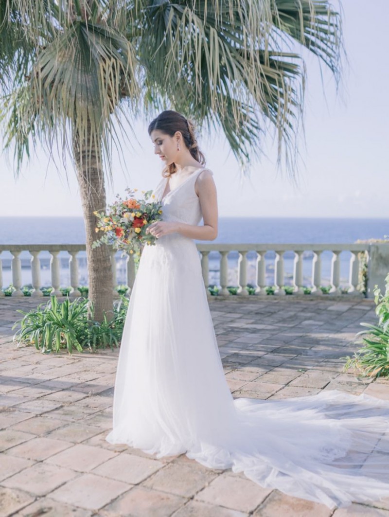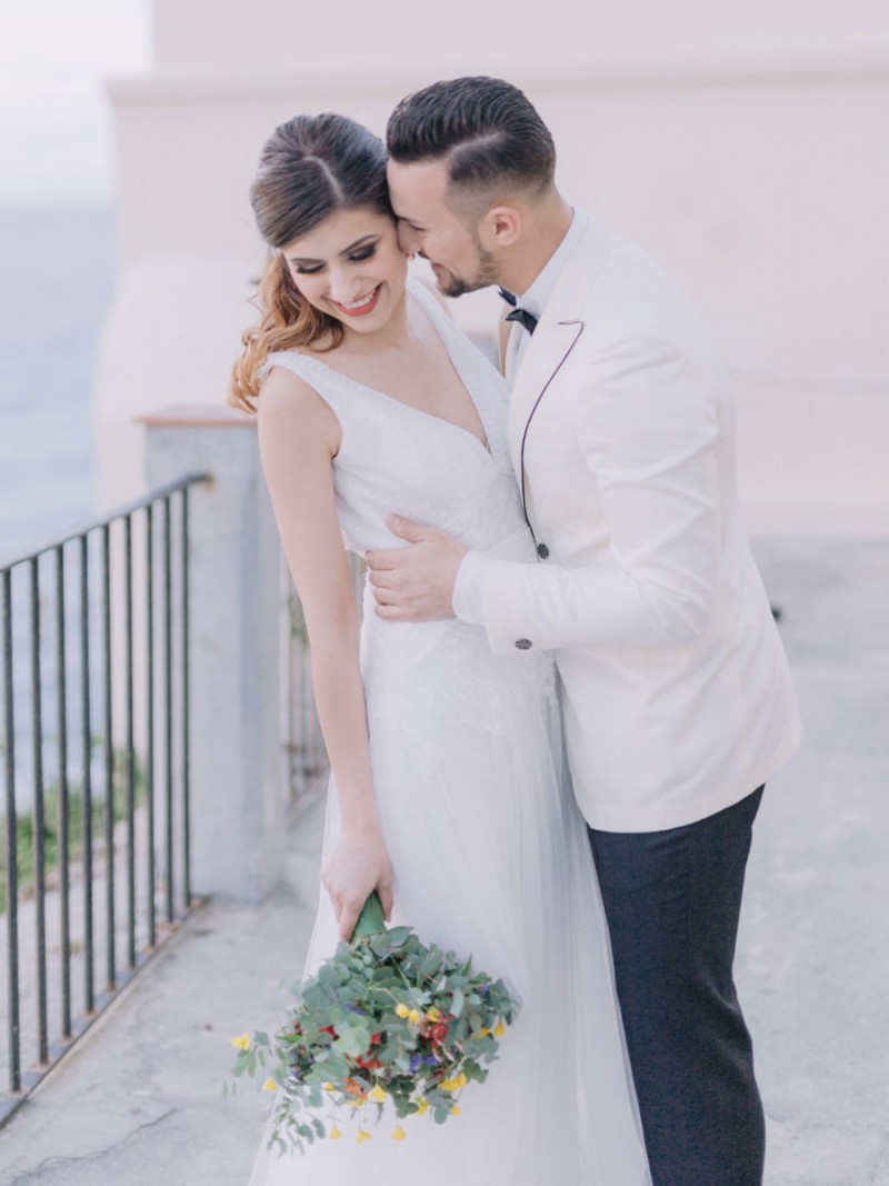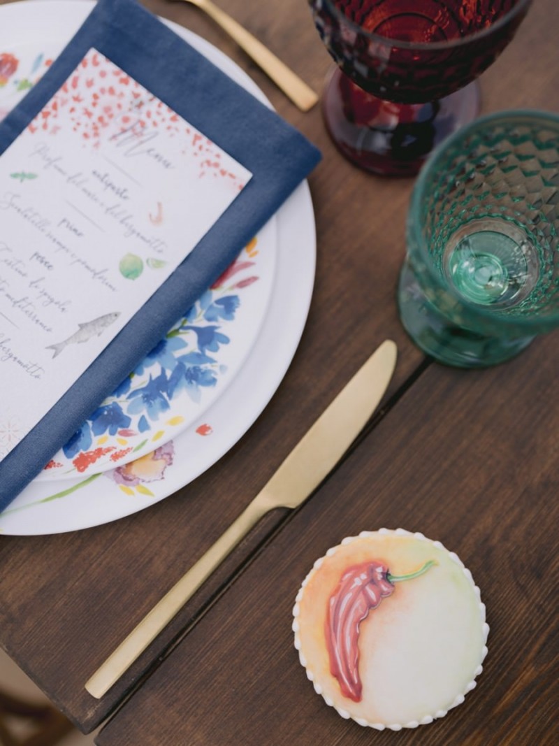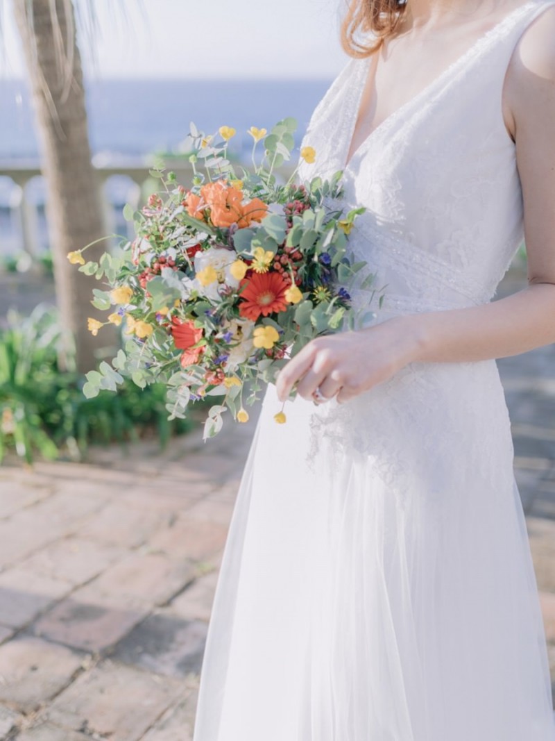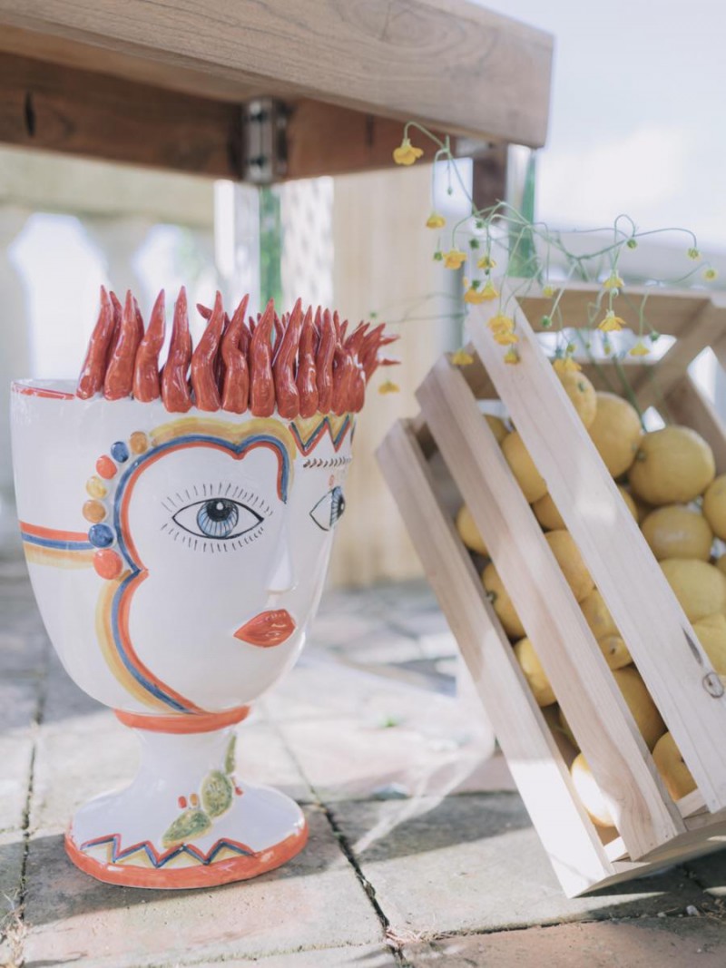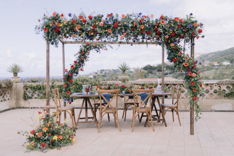 Ich darf euch heute an einen warmen, sonnenverwöhnten Ort entführen: Kalabrien. In dieser Inspiration einer Hochzeit in Italien, ist alles von dieser italienischen Region inspiriert. Bekannt für seine schroffen Berge, traditionellen Dörfer und abwechslungsreichen Küste, findet sich in dieser malerischen Kulisse eine moderne Interpretation dieser traditionsreichen Halbinsel. Elegant und luxuriös sollte es werden und den Charm einer typisch italienischen Hochzeit versprühen. Hochzeitsplanerin Rossella Arlia, unterstützt von Anastasia Event Designer, zeigt mit diesem Konzept ihrer geliebten Heimat eine Atmosphäre voller Leichtigkeit und Geselligkeit, die jeden sofort umschließt und in den Bann zieht. In der Villa Paola*, einer typisch italienischen Villa auf einem Hügel, mit Blick auf das Tyrrhenische Meer, erwartet uns diese einmalige Szenerie, die Karma Photo für uns fotografisch festgehalten hat. Schon die Hochzeitspapeterie, insziniert mit zartem Parfum und Seife von Acqua degli Dei, dieser Inspiration, kreiert von PoligoniLab, lässt erahnen mit wie viel Liebe zum Detail und zur Tradition diese Szenerie gefertigt wurde. Sowohl die Landschaft, als auch die, für diese südliche Region Italiens typischen, Geschmäcker und Gerüche wie Bergamotte, Zitrusfrüchte und Chilischoten, finden sich hier. In der Villa selbst empfängt uns auf der großen Terrasse mit traumhaftem Meer- und Bergblick, ein natürlich sowie antik gehaltenes Setting, dessen opulente Floristik wirkt, als hätte man eine ganze Wiese voller Wildblumen verwendet. Ranunkeln, Anemonen, Gerbera, englische Rosen, Nelken, Ruscus und Eukalyptus schlängeln sich sowohl über den Tisch, als auch die zauberhafte Holzkonstruktion. Diese Floristik, sowie auch die später folgenden Brautsträuße, wurde kreiert von Le Jardin, die so der Gesellschaft einen Abend unter einem Sternen- und Blumenhimmel schenkten. Natürlich sorgt auch das Table Setting selbst für schwärmende Gäste. Hier finden sich all die Farben und Symbole, die schon die Hochzeitspapeterie so liebevoll inszenierte. Ein harmonisches Konzept, das die Traditionen dieses Landes aus ganzem Herzen feiert. Inmitten dieser schönen Szenerie erwartet euch auch noch ein süßes Brautpaar, das perfekt zu diesen mediterranen Zügen passt. Sie durften diesen sonnigen Tag in dieser wunderschönen Villa gemeinsam genießen. Und noch mehr. Sie beide zeigen uns einen Look für den Tag und einen für die Nacht. Für den Hochzeitstag trug der Bräutigam einen klassischen Anzug in Blau mit passender Fliege. Die Braut verzaubert uns in einem ärmellosen Brautkleid mit tiefem V-Ausschnitt und einem Rock aus Volants. Für den Abend zeigt sich unser Bräutigam schick in einem weißen Jacket mit schwarzen Nähten und einer schwarz-silbernen Fliege. Sie trägt ein fließendes Chiffonkleid mit zarten Applikationen und einem geflochtenen Rücken. Ihr Hair & Makeup zu diesen Looks kreierten Marco Quintiero & Valeb Makeup. Ihr Brautschmuck ist von Scintille Montesanto und ist ebenso, wie ihre Brautschuhe von Mazzini Calzature, auf beide Looks abgestimmt. Wer sich jetzt fragt, ob ich nicht etwas vergessen hätte: Kein Sorge, selbstverständlich gibt es auch einen Sweet Table zu entdecken. Und was für einen! Mehrere, bezaubernd mediterran gestaltete Hochzeitstorten von Artisan Pastry Vianda, künstlerisch gestaltete Kekse, wie sie auch am Tisch zu finden sind, von Art Biscotti, sowie farblich passende Macarons von Il Bergamotto und leckeres Konfekt von Confetti Tortora lassen hier keine Wünsche offen! Und mir bleibt an dieser Stelle nur euch ganz viel Freude mit dieser bezaubernden Hochzeitsinspiration aus Kalabrien zu wünschen!