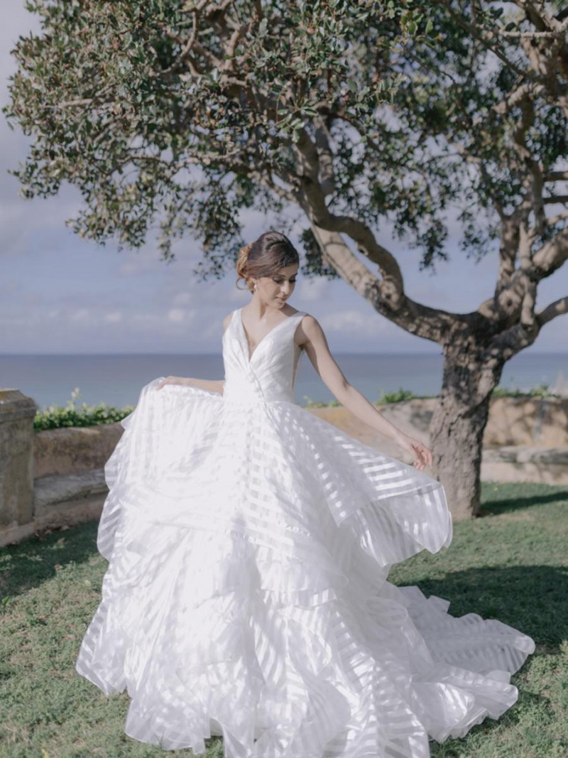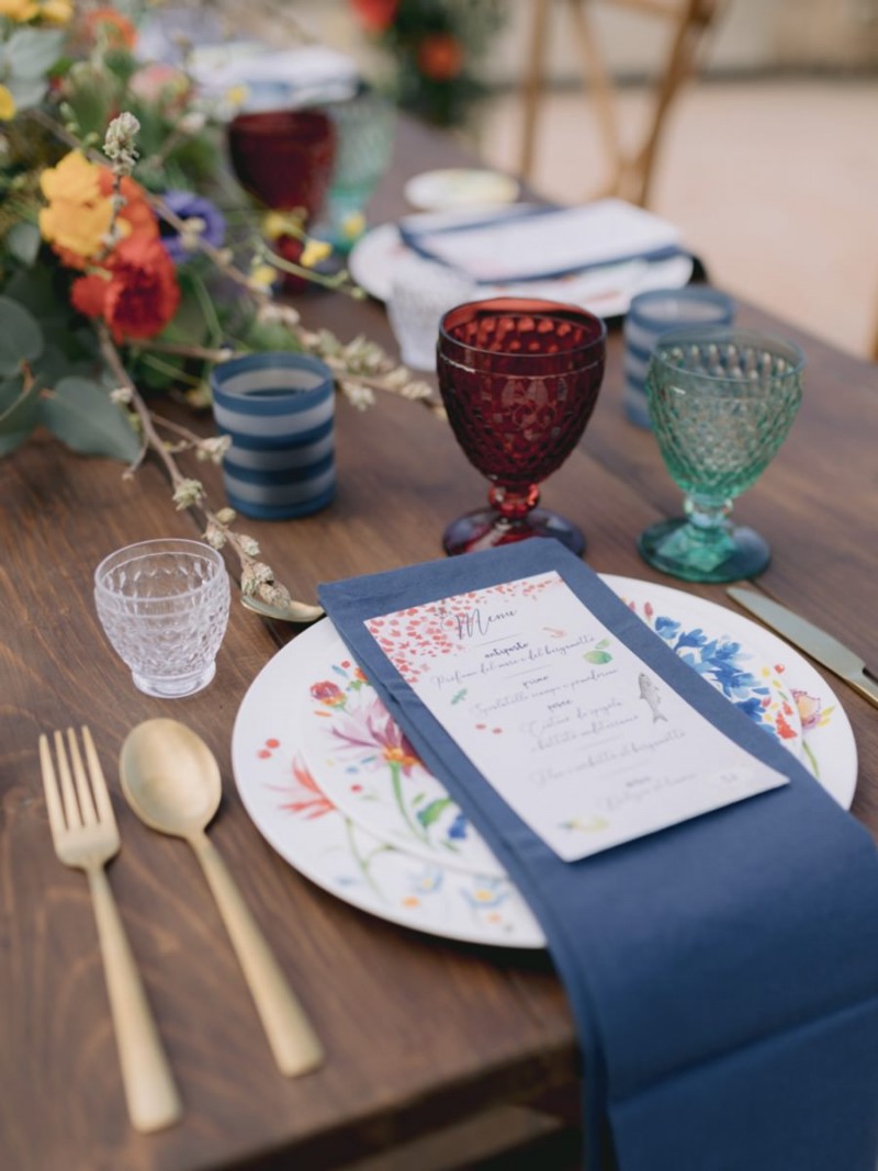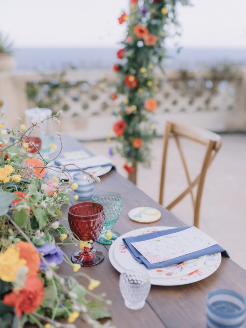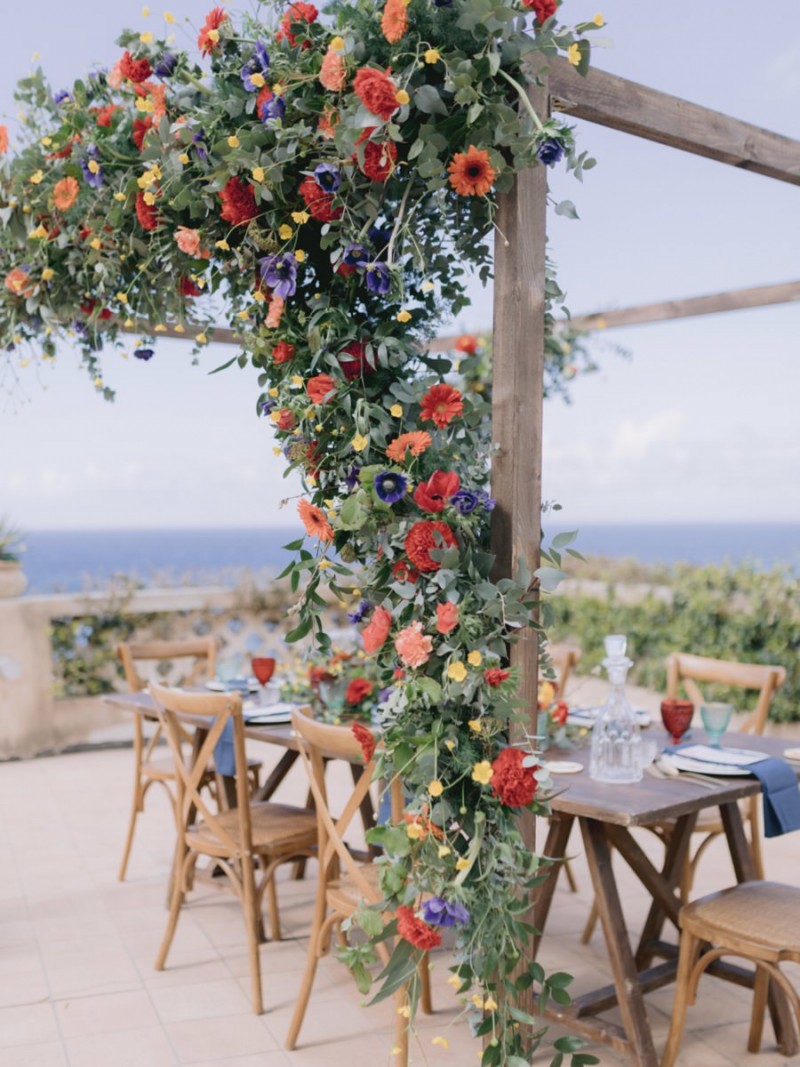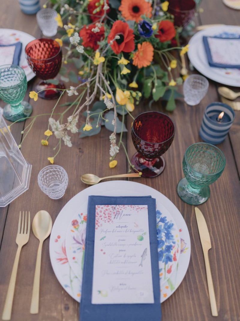 Ich darf euch heute an einen warmen, sonnenverwöhnten Ort entführen: Kalabrien. In dieser Inspiration einer Hochzeit in Italien, ist alles von dieser italienischen Region inspiriert. Bekannt für seine schroffen Berge, traditionellen Dörfer und abwechslungsreichen Küste, findet sich in dieser malerischen Kulisse eine moderne Interpretation dieser traditionsreichen Halbinsel. Elegant und luxuriös sollte es werden und den Charm einer typisch italienischen Hochzeit versprühen. Hochzeitsplanerin Rossella Arlia, unterstützt von Anastasia Event Designer, zeigt mit diesem Konzept ihrer geliebten Heimat eine Atmosphäre voller Leichtigkeit und Geselligkeit, die jeden sofort umschließt und in den Bann zieht. In der Villa Paola*, einer typisch italienischen Villa auf einem Hügel, mit Blick auf das Tyrrhenische Meer, erwartet uns diese einmalige Szenerie, die Karma Photo für uns fotografisch festgehalten hat. Schon die Hochzeitspapeterie, insziniert mit zartem Parfum und Seife von Acqua degli Dei, dieser Inspiration, kreiert von PoligoniLab, lässt erahnen mit wie viel Liebe zum Detail und zur Tradition diese Szenerie gefertigt wurde. Sowohl die Landschaft, als auch die, für diese südliche Region Italiens typischen, Geschmäcker und Gerüche wie Bergamotte, Zitrusfrüchte und Chilischoten, finden sich hier. In der Villa selbst empfängt uns auf der großen Terrasse mit traumhaftem Meer- und Bergblick, ein natürlich sowie antik gehaltenes Setting, dessen opulente Floristik wirkt, als hätte man eine ganze Wiese voller Wildblumen verwendet. Ranunkeln, Anemonen, Gerbera, englische Rosen, Nelken, Ruscus und Eukalyptus schlängeln sich sowohl über den Tisch, als auch die zauberhafte Holzkonstruktion. Diese Floristik, sowie auch die später folgenden Brautsträuße, wurde kreiert von Le Jardin, die so der Gesellschaft einen Abend unter einem Sternen- und Blumenhimmel schenkten. Natürlich sorgt auch das Table Setting selbst für schwärmende Gäste. Hier finden sich all die Farben und Symbole, die schon die Hochzeitspapeterie so liebevoll inszenierte. Ein harmonisches Konzept, das die Traditionen dieses Landes aus ganzem Herzen feiert. Inmitten dieser schönen Szenerie erwartet euch auch noch ein süßes Brautpaar, das perfekt zu diesen mediterranen Zügen passt. Sie durften diesen sonnigen Tag in dieser wunderschönen Villa gemeinsam genießen. Und noch mehr. Sie beide zeigen uns einen Look für den Tag und einen für die Nacht. Für den Hochzeitstag trug der Bräutigam einen klassischen Anzug in Blau mit passender Fliege. Die Braut verzaubert uns in einem ärmellosen Brautkleid mit tiefem V-Ausschnitt und einem Rock aus Volants. Für den Abend zeigt sich unser Bräutigam schick in einem weißen Jacket mit schwarzen Nähten und einer schwarz-silbernen Fliege. Sie trägt ein fließendes Chiffonkleid mit zarten Applikationen und einem geflochtenen Rücken. Ihr Hair & Makeup zu diesen Looks kreierten Marco Quintiero & Valeb Makeup. Ihr Brautschmuck ist von Scintille Montesanto und ist ebenso, wie ihre Brautschuhe von Mazzini Calzature, auf beide Looks abgestimmt. Wer sich jetzt fragt, ob ich nicht etwas vergessen hätte: Kein Sorge, selbstverständlich gibt es auch einen Sweet Table zu entdecken. Und was für einen! Mehrere, bezaubernd mediterran gestaltete Hochzeitstorten von Artisan Pastry Vianda, künstlerisch gestaltete Kekse, wie sie auch am Tisch zu finden sind, von Art Biscotti, sowie farblich passende Macarons von Il Bergamotto und leckeres Konfekt von Confetti Tortora lassen hier keine Wünsche offen! Und mir bleibt an dieser Stelle nur euch ganz viel Freude mit dieser bezaubernden Hochzeitsinspiration aus Kalabrien zu wünschen!