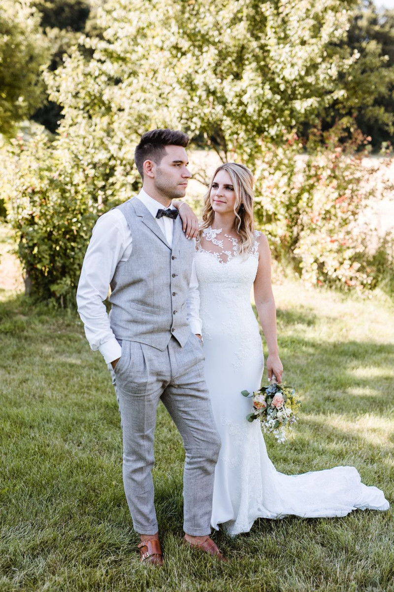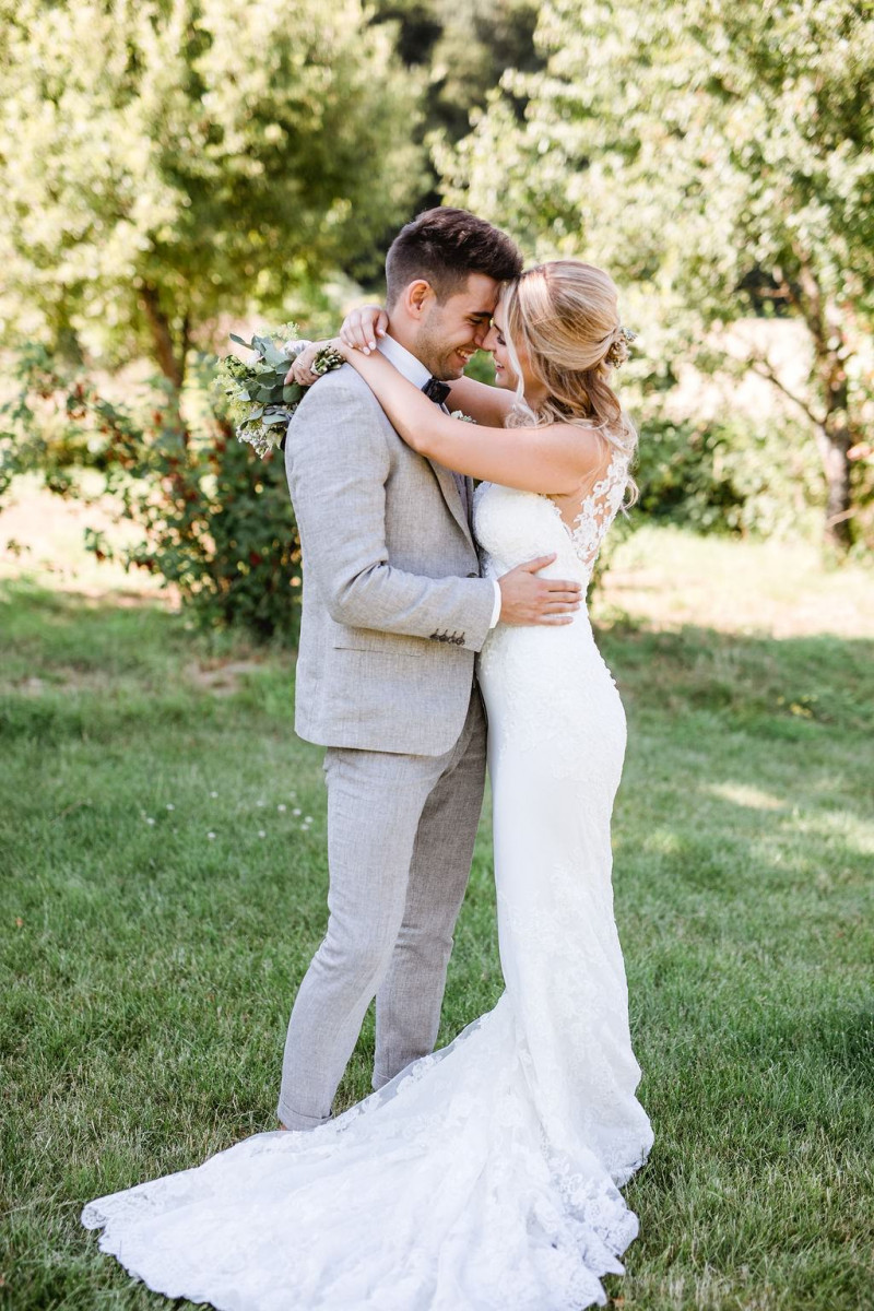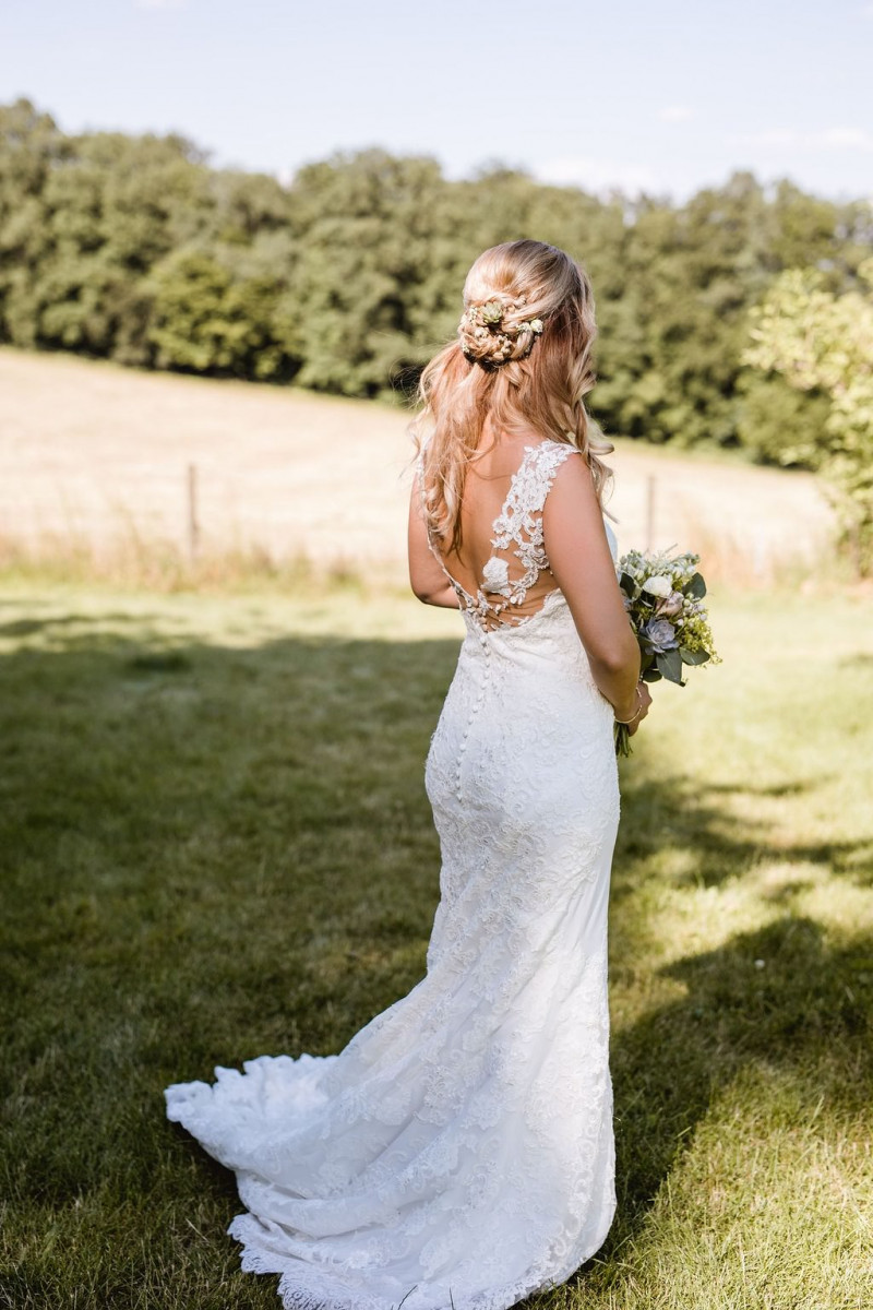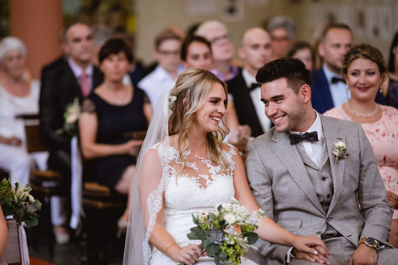 Am 30. Juni 2018 gaben sich Lena & Marcel bei einer romantischen kirchlichen Trauung, in Saarbrücken, das Ja-Wort. Bei dieser wunderschöner Sommerhochzeit, von Hochzeitsfotografen Annika und Gabriel Fotografie festgehalten, gibt es wirklich einiges zu bestaunen! Los ging es mit einem großen Wunsch der Braut, der ihr an diesem Tag erfüllt wurde! Gemeinsam mit ihrem Vater fuhr sie in ihrem absoluten Traumauto, einem mega coolen VW Bulli, zur Kirche. Dort führte er sie durch all die gefüllten Ränge hindurch, in einem Traumkleid von Pronovias via Silberherz, einem zauberhaften Brautstyling (Haare gestylt von Abschnittsgefährten Saarbrücken und passendem Makeup von Douglas) und Brautschuhen von Rainbow Club, zu ihrem aufgeregten Bräutigam. Und natürlich kamen Marcel die Tränen beim Anblick seiner Braut! Aber auch er konnte sich sehen lassen! In einem Anzug von Digelund Schuhen von Melvin&Hamilton, erwartete er seine Braut am Altar. Nach der emotionalen Trauung ging es für die beiden und ihre Hochzeitsgesellschaft zum Hofgut Menschenhaus. Dort warteten helle Farbtöne wie Weiß und Blush, Sukkulenten, goldene Details und eine zarte Variation der Pantone Farbe 2019 – Living Coral. Die Dekoration vor Ort übernahm die Location, während sich die Gärtnerei Birkenmeier um die Floristik in der Kirche, auf dem Brautauto und dem Braustrauß kümmerte. Die Eheringe der beide kreierte Kornelia Landau. So gerne ich mich gerade in warmen und kuscheligen Inspirationen für bezaubernde Winterhochzeiten suhle, so sehr wünsche ich mir doch die Sonne herbei! Und genau aus diesem Grund mixe ich die Inspiration auf diesem Hochzeitsblog! Also genießt diese tolle Sommerhochzeit, bevor es wieder kalt wird! Ganz viel Freude euch!