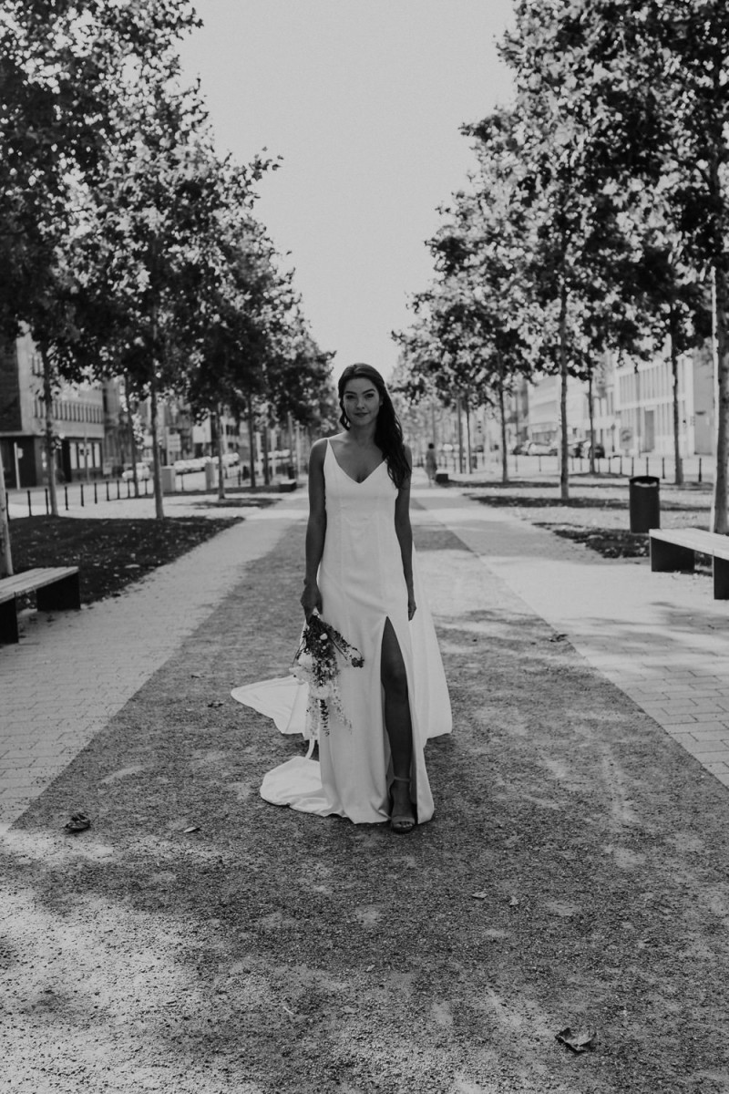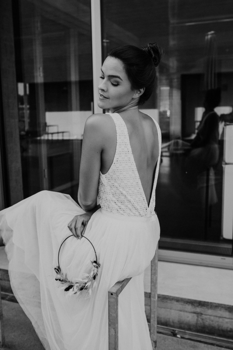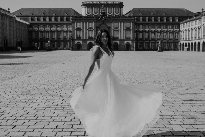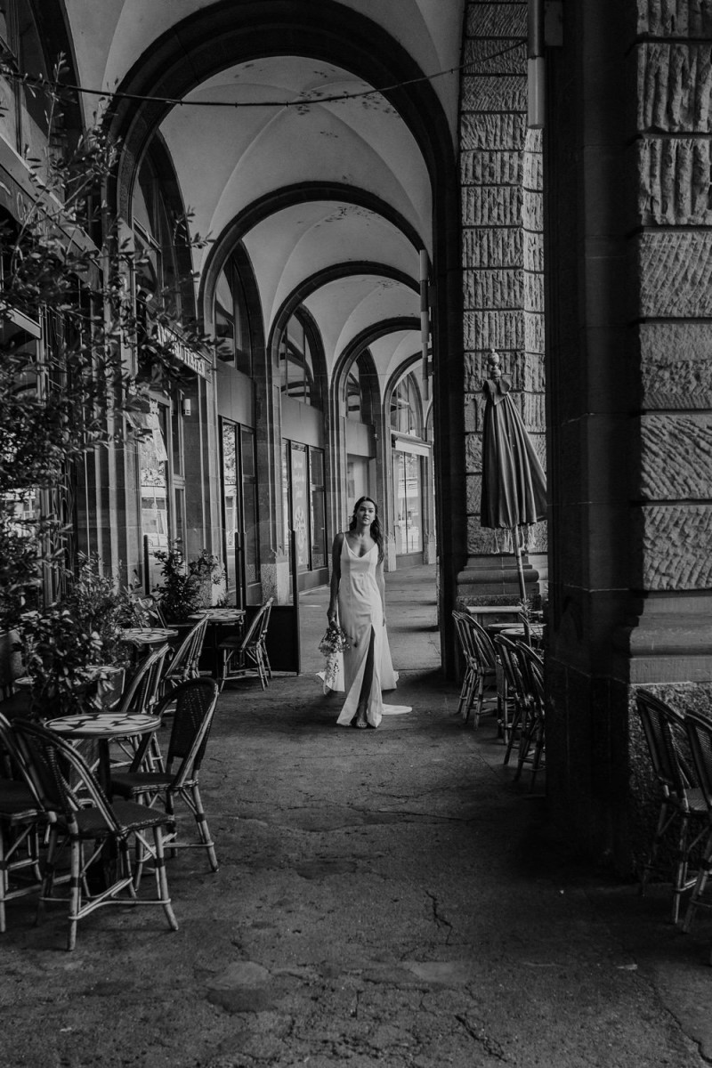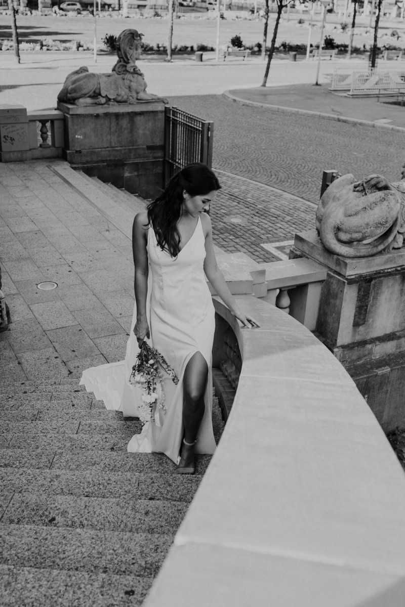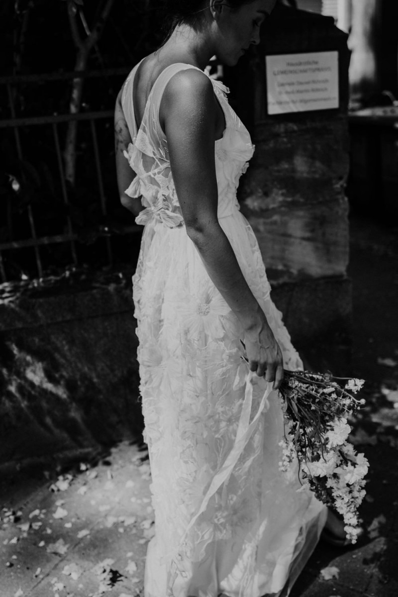 Diese Hochzeitsinspiration ist etwas sehr besonderes. Sie ist die erste Inspiration auf dem Blog, die ausschließlich schwarz-weiß Fotografien enthält. Wie grandios euch dieses Special dennoch für eure Hochzeit inspirieren kann, seht ihr in diesem wundervollen Bridal Editorial im modernen Stil. Fotografiert von Hochzeitsfotografin ThuTrinh Photography , die von Cornelia Kindsvater fotografisch unterstützt wurde, erwarten euch gleich mehrere bezaubernde Brautlooks und Brautkleider. In den modernen Designs von Sandra Nymphius schlendert unsere coole Braut selbstbewusst und unaufhaltsam durch die Straßen von Mannheim. Sie ist vollkommen im Moment und voller Lebensfreude. Ob als tänzelnde Ballerina oder auf dem Skateboard mit ihren Chucks. Dabei trägt sie lange als auch kurze Brautkleider, sehr klare und gerade, als auch verspielte und blumige Designs von Sandra Nymphius. Immer mit dem Anspruch, der modernen Braut eine authentische und selbstsichere Stimme zu verleihen. Dank Hair & Makeup Artist Melanie Beauty gibt es dazu mehrere tolle Brautfrisuren. Und dank der lieben Vanessa von Blütenzauber fehlt auch die Inspiration für wundervolle Brautsträuße nicht. Dass gerade das Spiel von Licht und Schatten, die Inszenierung kleinster Details und die berührenden schwarz-weiß Fotografien dieser Inspiration so viel Leidenschaft und Inspirationsgehalt schenken, könnt ihr jetzt selbst entdecken. Ganz viel Freude euch mit diesem modernen, ausdrucksstarken und gefühlvollen Bridal Editorial!