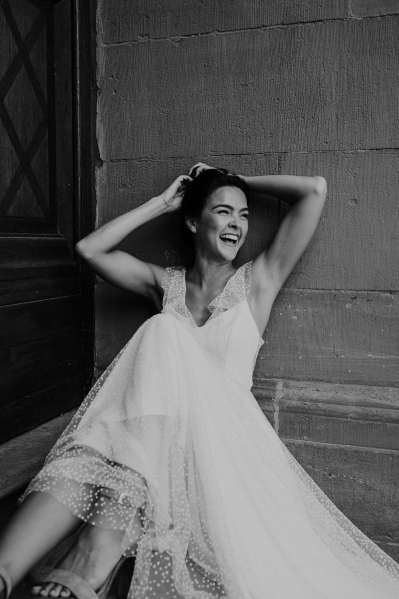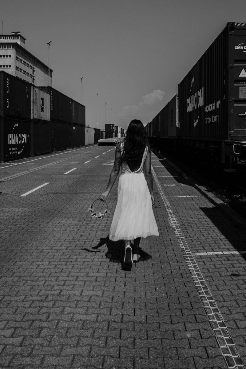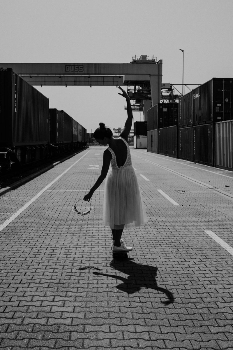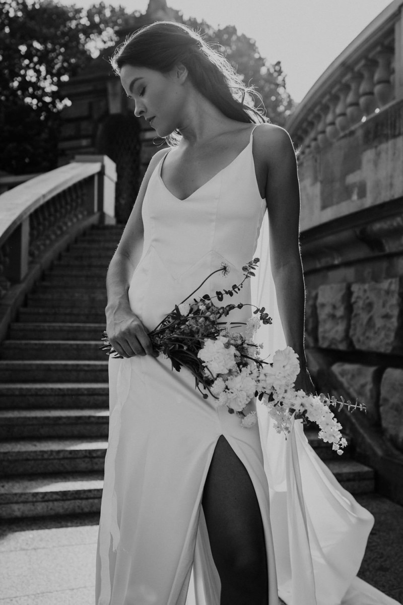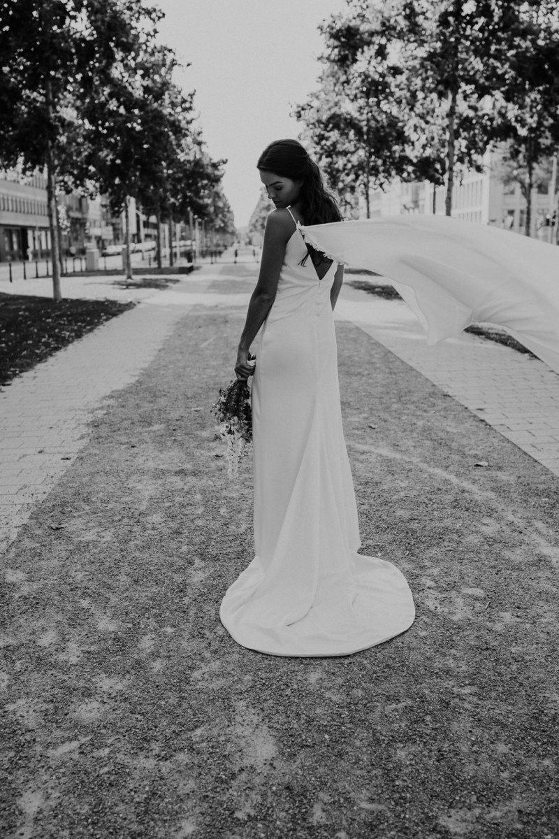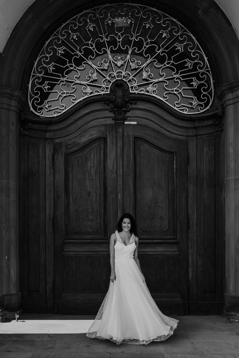 Diese Hochzeitsinspiration ist etwas sehr besonderes. Sie ist die erste Inspiration auf dem Blog, die ausschließlich schwarz-weiß Fotografien enthält. Wie grandios euch dieses Special dennoch für eure Hochzeit inspirieren kann, seht ihr in diesem wundervollen Bridal Editorial im modernen Stil. Fotografiert von Hochzeitsfotografin ThuTrinh Photography , die von Cornelia Kindsvater fotografisch unterstützt wurde, erwarten euch gleich mehrere bezaubernde Brautlooks und Brautkleider. In den modernen Designs von Sandra Nymphius schlendert unsere coole Braut selbstbewusst und unaufhaltsam durch die Straßen von Mannheim. Sie ist vollkommen im Moment und voller Lebensfreude. Ob als tänzelnde Ballerina oder auf dem Skateboard mit ihren Chucks. Dabei trägt sie lange als auch kurze Brautkleider, sehr klare und gerade, als auch verspielte und blumige Designs von Sandra Nymphius. Immer mit dem Anspruch, der modernen Braut eine authentische und selbstsichere Stimme zu verleihen. Dank Hair & Makeup Artist Melanie Beauty gibt es dazu mehrere tolle Brautfrisuren. Und dank der lieben Vanessa von Blütenzauber fehlt auch die Inspiration für wundervolle Brautsträuße nicht. Dass gerade das Spiel von Licht und Schatten, die Inszenierung kleinster Details und die berührenden schwarz-weiß Fotografien dieser Inspiration so viel Leidenschaft und Inspirationsgehalt schenken, könnt ihr jetzt selbst entdecken. Ganz viel Freude euch mit diesem modernen, ausdrucksstarken und gefühlvollen Bridal Editorial!