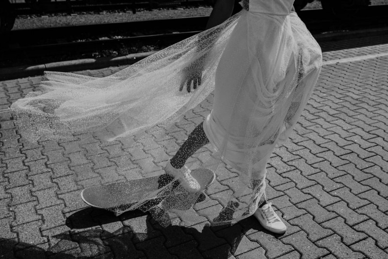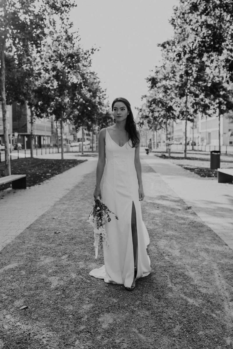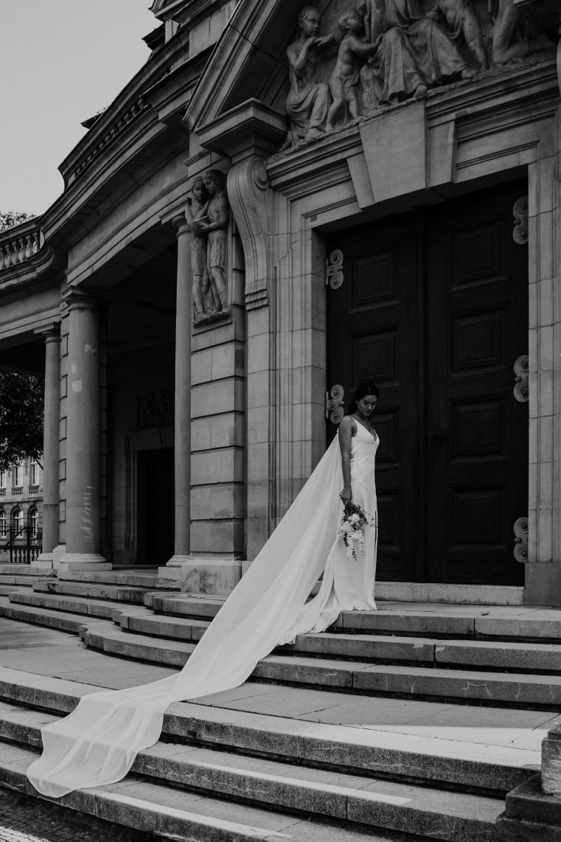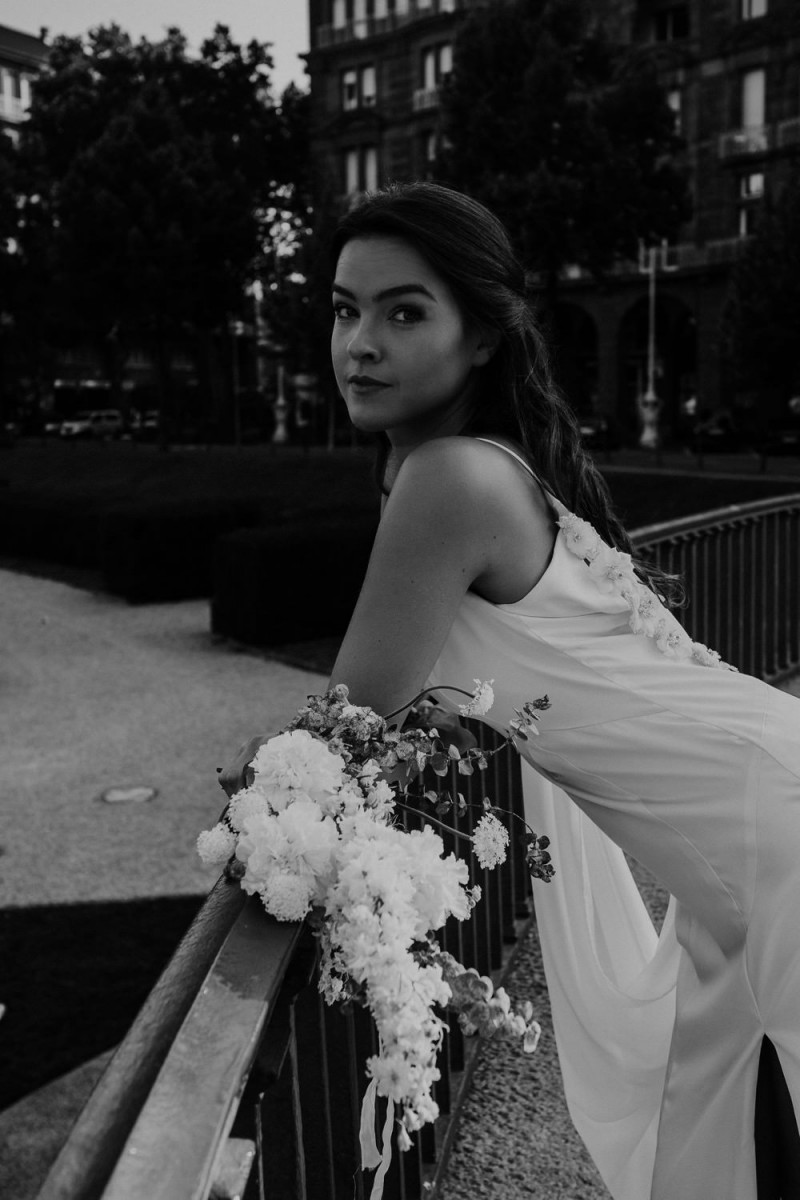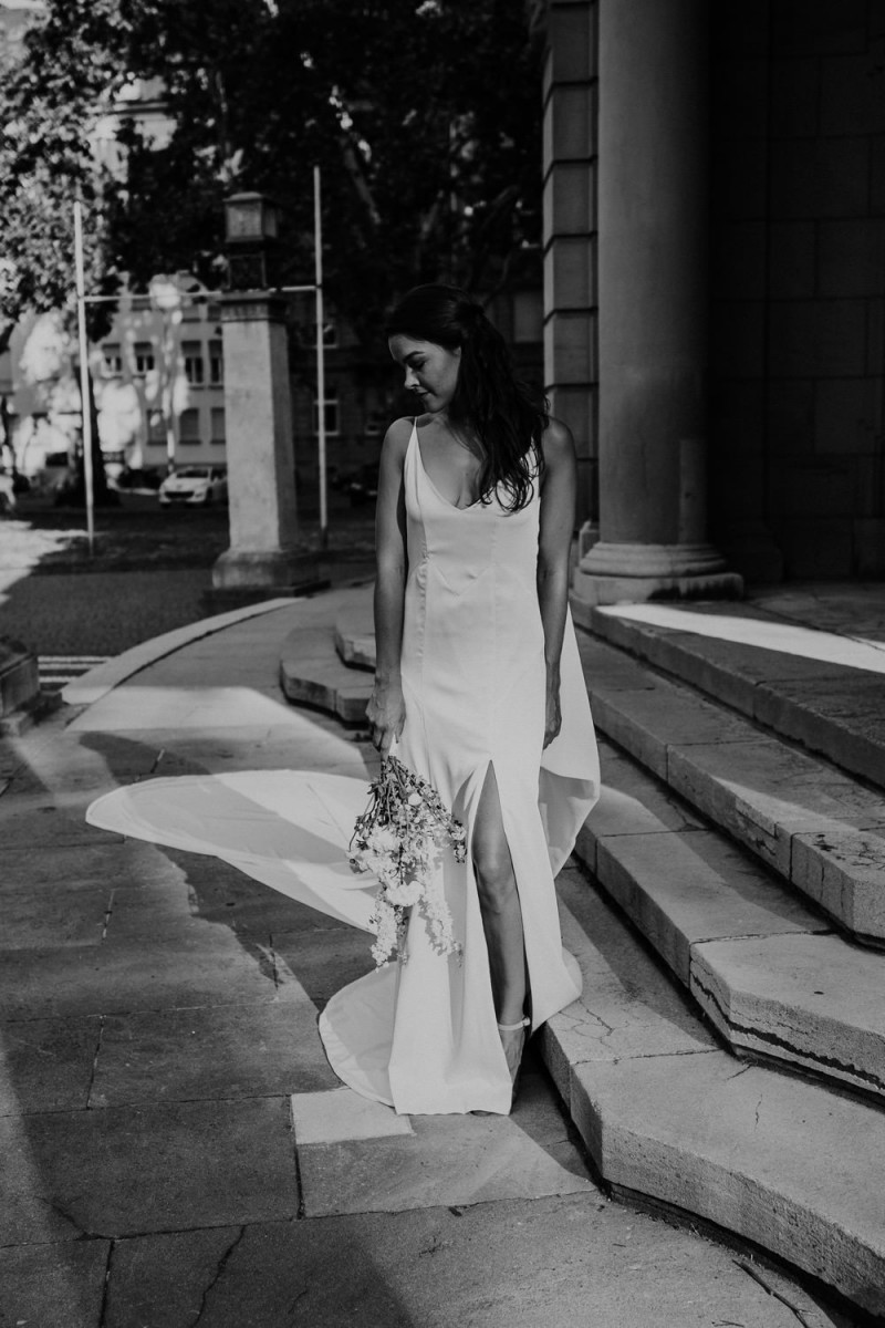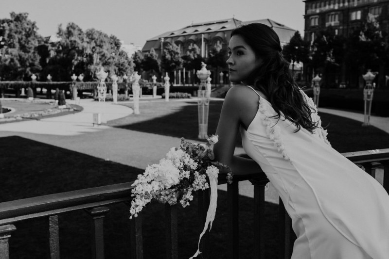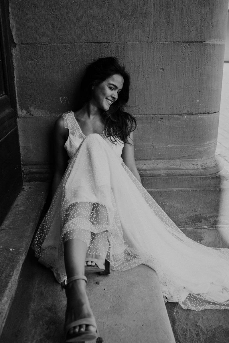 Diese Hochzeitsinspiration ist etwas sehr besonderes. Sie ist die erste Inspiration auf dem Blog, die ausschließlich schwarz-weiß Fotografien enthält. Wie grandios euch dieses Special dennoch für eure Hochzeit inspirieren kann, seht ihr in diesem wundervollen Bridal Editorial im modernen Stil. Fotografiert von Hochzeitsfotografin ThuTrinh Photography , die von Cornelia Kindsvater fotografisch unterstützt wurde, erwarten euch gleich mehrere bezaubernde Brautlooks und Brautkleider. In den modernen Designs von Sandra Nymphius schlendert unsere coole Braut selbstbewusst und unaufhaltsam durch die Straßen von Mannheim. Sie ist vollkommen im Moment und voller Lebensfreude. Ob als tänzelnde Ballerina oder auf dem Skateboard mit ihren Chucks. Dabei trägt sie lange als auch kurze Brautkleider, sehr klare und gerade, als auch verspielte und blumige Designs von Sandra Nymphius. Immer mit dem Anspruch, der modernen Braut eine authentische und selbstsichere Stimme zu verleihen. Dank Hair & Makeup Artist Melanie Beauty gibt es dazu mehrere tolle Brautfrisuren. Und dank der lieben Vanessa von Blütenzauber fehlt auch die Inspiration für wundervolle Brautsträuße nicht. Dass gerade das Spiel von Licht und Schatten, die Inszenierung kleinster Details und die berührenden schwarz-weiß Fotografien dieser Inspiration so viel Leidenschaft und Inspirationsgehalt schenken, könnt ihr jetzt selbst entdecken. Ganz viel Freude euch mit diesem modernen, ausdrucksstarken und gefühlvollen Bridal Editorial!