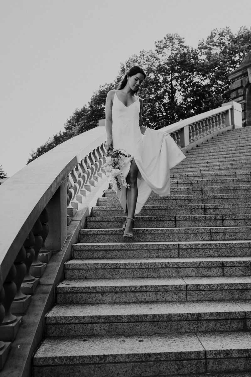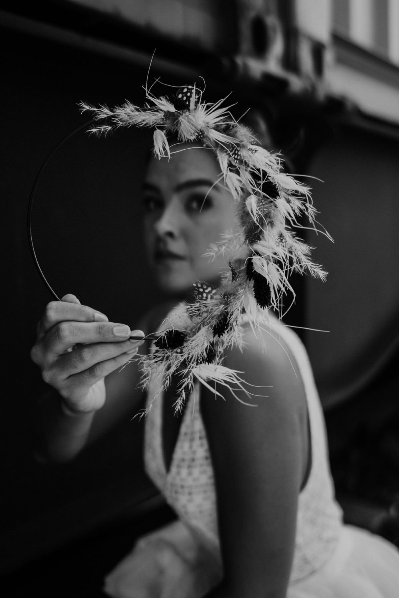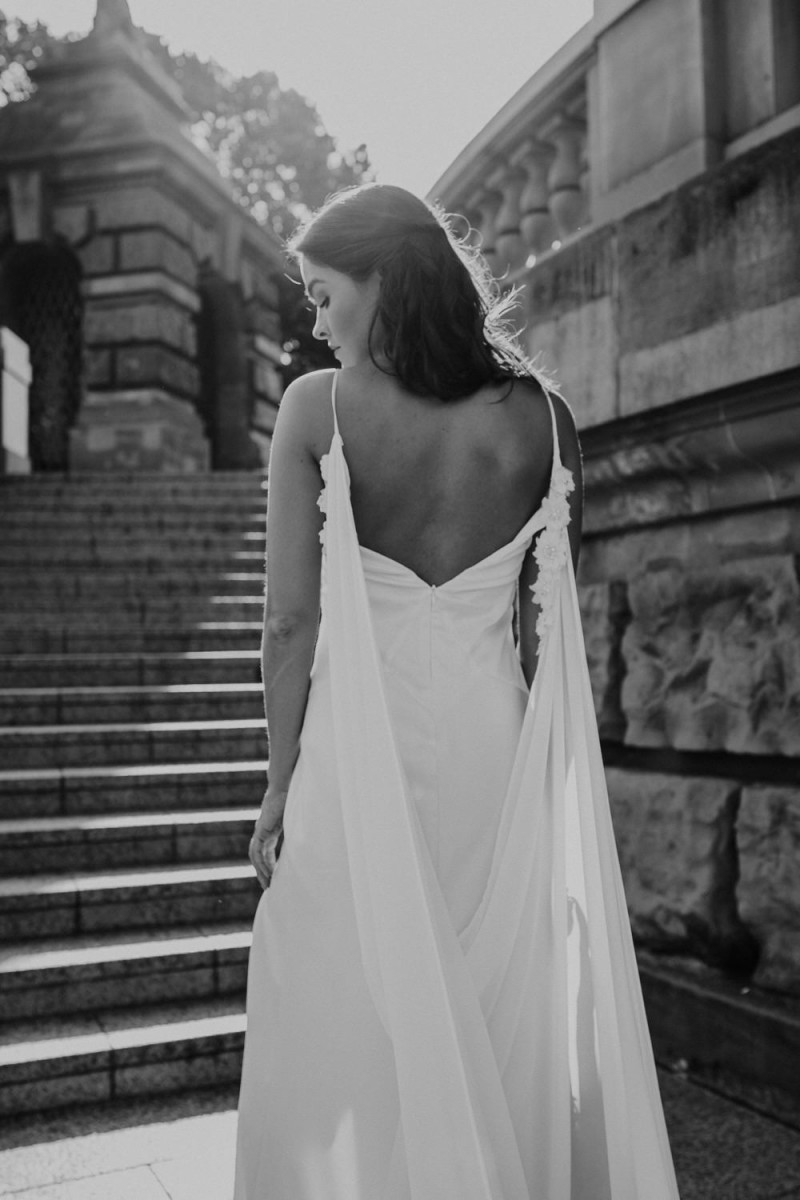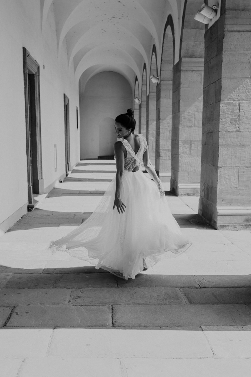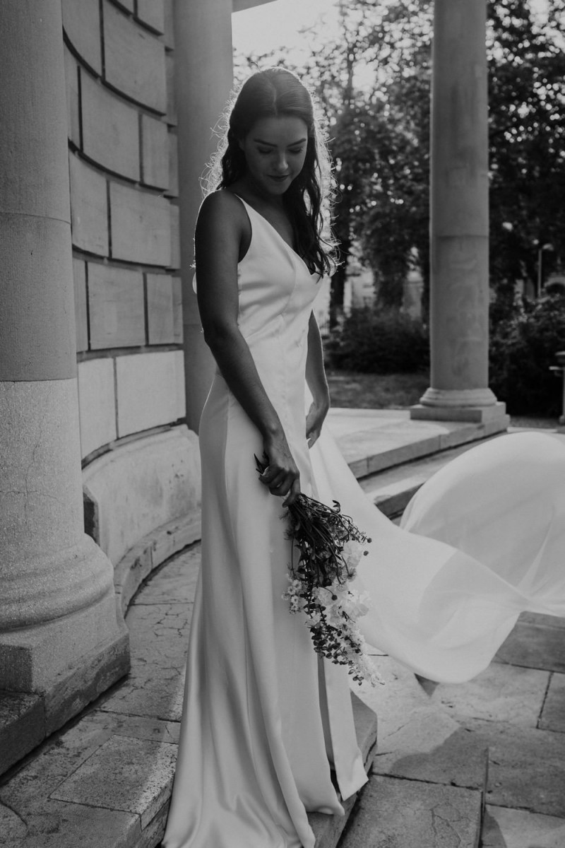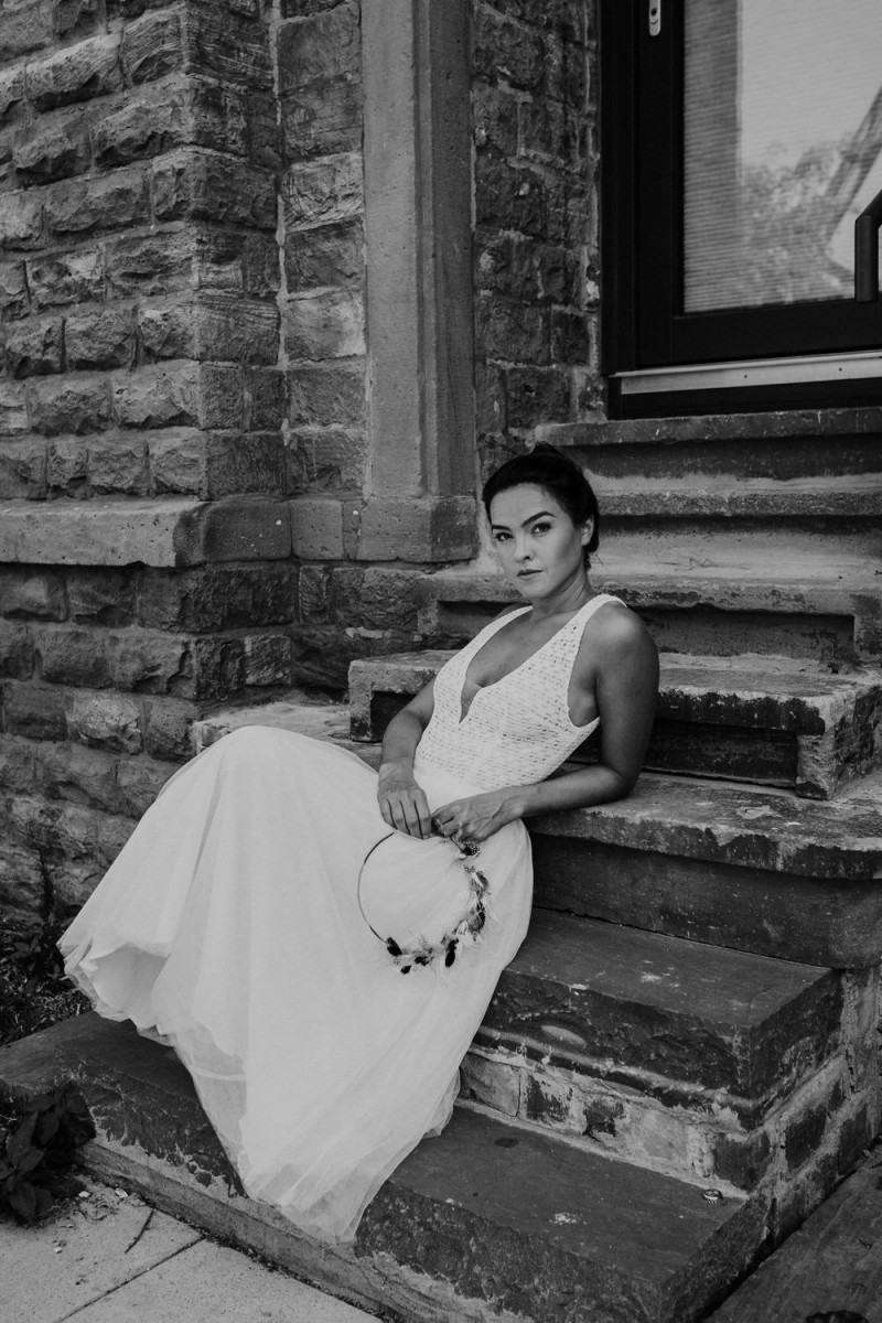 Diese Hochzeitsinspiration ist etwas sehr besonderes. Sie ist die erste Inspiration auf dem Blog, die ausschließlich schwarz-weiß Fotografien enthält. Wie grandios euch dieses Special dennoch für eure Hochzeit inspirieren kann, seht ihr in diesem wundervollen Bridal Editorial im modernen Stil. Fotografiert von Hochzeitsfotografin ThuTrinh Photography , die von Cornelia Kindsvater fotografisch unterstützt wurde, erwarten euch gleich mehrere bezaubernde Brautlooks und Brautkleider. In den modernen Designs von Sandra Nymphius schlendert unsere coole Braut selbstbewusst und unaufhaltsam durch die Straßen von Mannheim. Sie ist vollkommen im Moment und voller Lebensfreude. Ob als tänzelnde Ballerina oder auf dem Skateboard mit ihren Chucks. Dabei trägt sie lange als auch kurze Brautkleider, sehr klare und gerade, als auch verspielte und blumige Designs von Sandra Nymphius. Immer mit dem Anspruch, der modernen Braut eine authentische und selbstsichere Stimme zu verleihen. Dank Hair & Makeup Artist Melanie Beauty gibt es dazu mehrere tolle Brautfrisuren. Und dank der lieben Vanessa von Blütenzauber fehlt auch die Inspiration für wundervolle Brautsträuße nicht. Dass gerade das Spiel von Licht und Schatten, die Inszenierung kleinster Details und die berührenden schwarz-weiß Fotografien dieser Inspiration so viel Leidenschaft und Inspirationsgehalt schenken, könnt ihr jetzt selbst entdecken. Ganz viel Freude euch mit diesem modernen, ausdrucksstarken und gefühlvollen Bridal Editorial!
