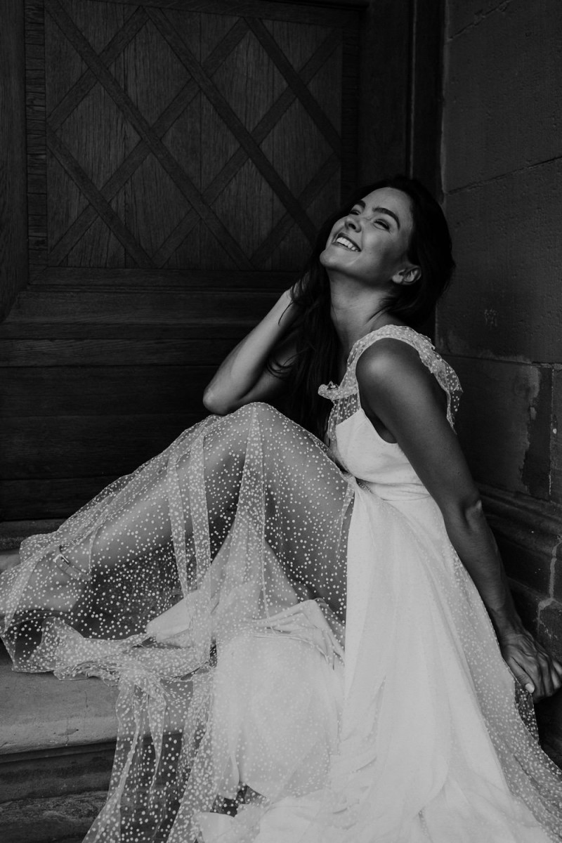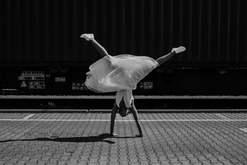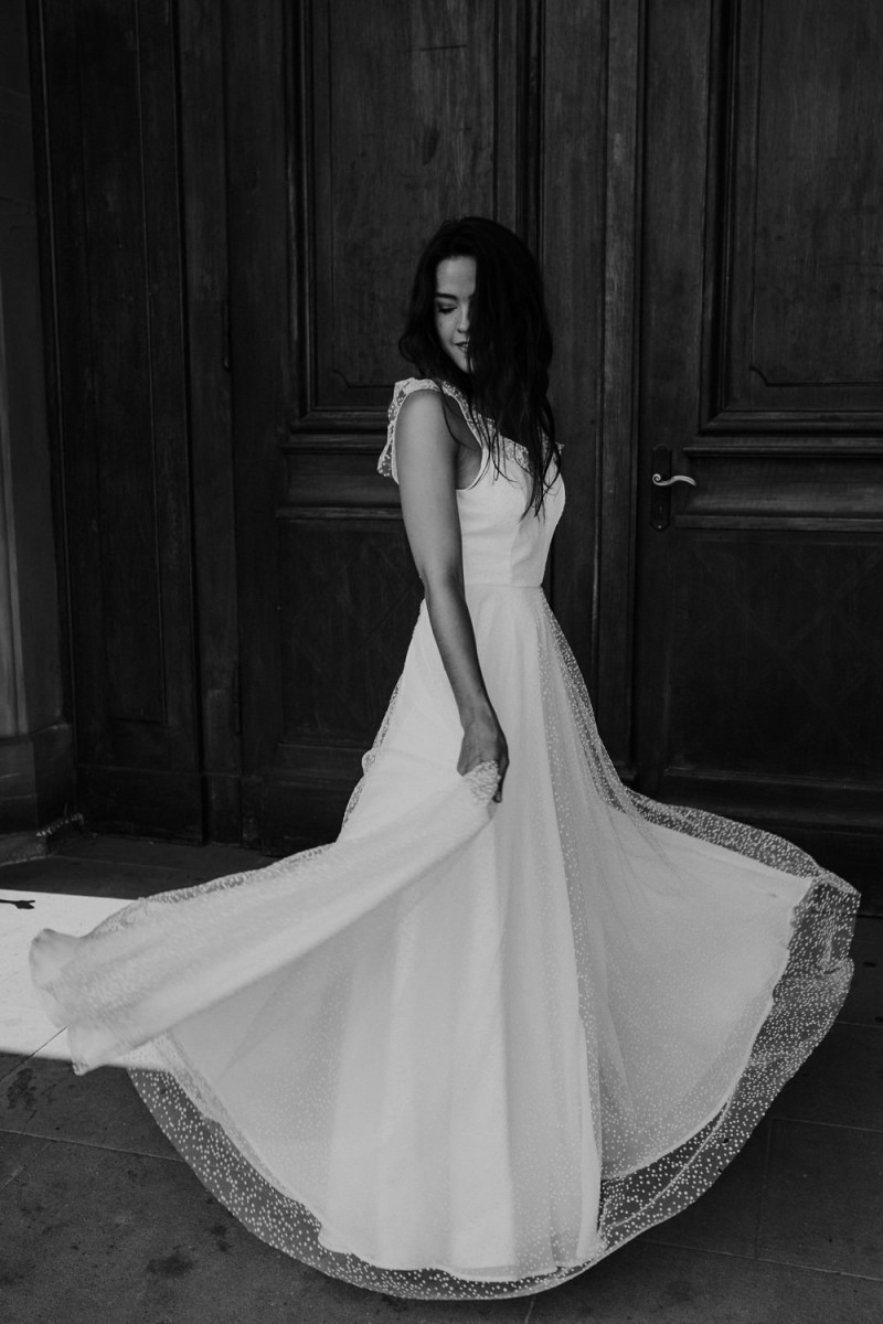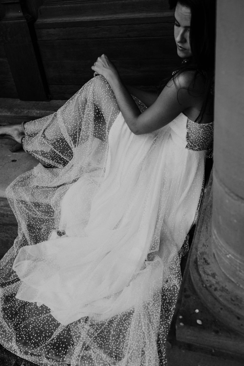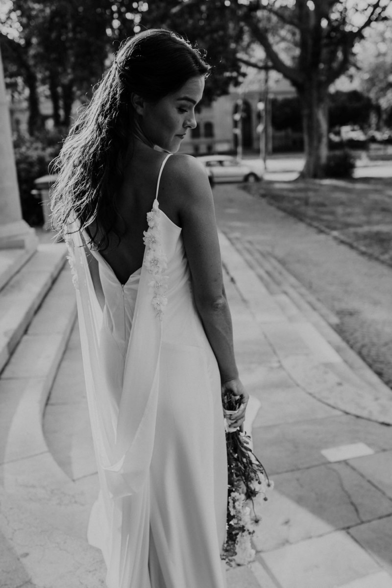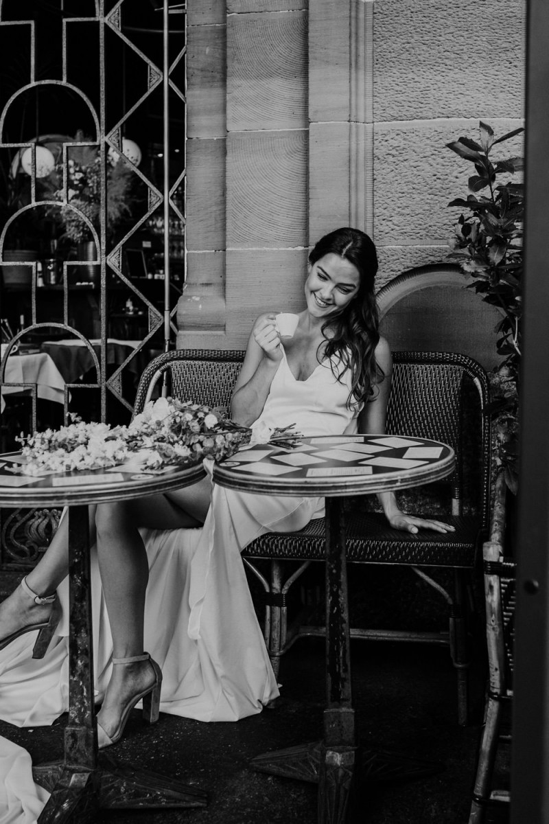 Diese Hochzeitsinspiration ist etwas sehr besonderes. Sie ist die erste Inspiration auf dem Blog, die ausschließlich schwarz-weiß Fotografien enthält. Wie grandios euch dieses Special dennoch für eure Hochzeit inspirieren kann, seht ihr in diesem wundervollen Bridal Editorial im modernen Stil. Fotografiert von Hochzeitsfotografin ThuTrinh Photography , die von Cornelia Kindsvater fotografisch unterstützt wurde, erwarten euch gleich mehrere bezaubernde Brautlooks und Brautkleider. In den modernen Designs von Sandra Nymphius schlendert unsere coole Braut selbstbewusst und unaufhaltsam durch die Straßen von Mannheim. Sie ist vollkommen im Moment und voller Lebensfreude. Ob als tänzelnde Ballerina oder auf dem Skateboard mit ihren Chucks. Dabei trägt sie lange als auch kurze Brautkleider, sehr klare und gerade, als auch verspielte und blumige Designs von Sandra Nymphius. Immer mit dem Anspruch, der modernen Braut eine authentische und selbstsichere Stimme zu verleihen. Dank Hair & Makeup Artist Melanie Beauty gibt es dazu mehrere tolle Brautfrisuren. Und dank der lieben Vanessa von Blütenzauber fehlt auch die Inspiration für wundervolle Brautsträuße nicht. Dass gerade das Spiel von Licht und Schatten, die Inszenierung kleinster Details und die berührenden schwarz-weiß Fotografien dieser Inspiration so viel Leidenschaft und Inspirationsgehalt schenken, könnt ihr jetzt selbst entdecken. Ganz viel Freude euch mit diesem modernen, ausdrucksstarken und gefühlvollen Bridal Editorial!